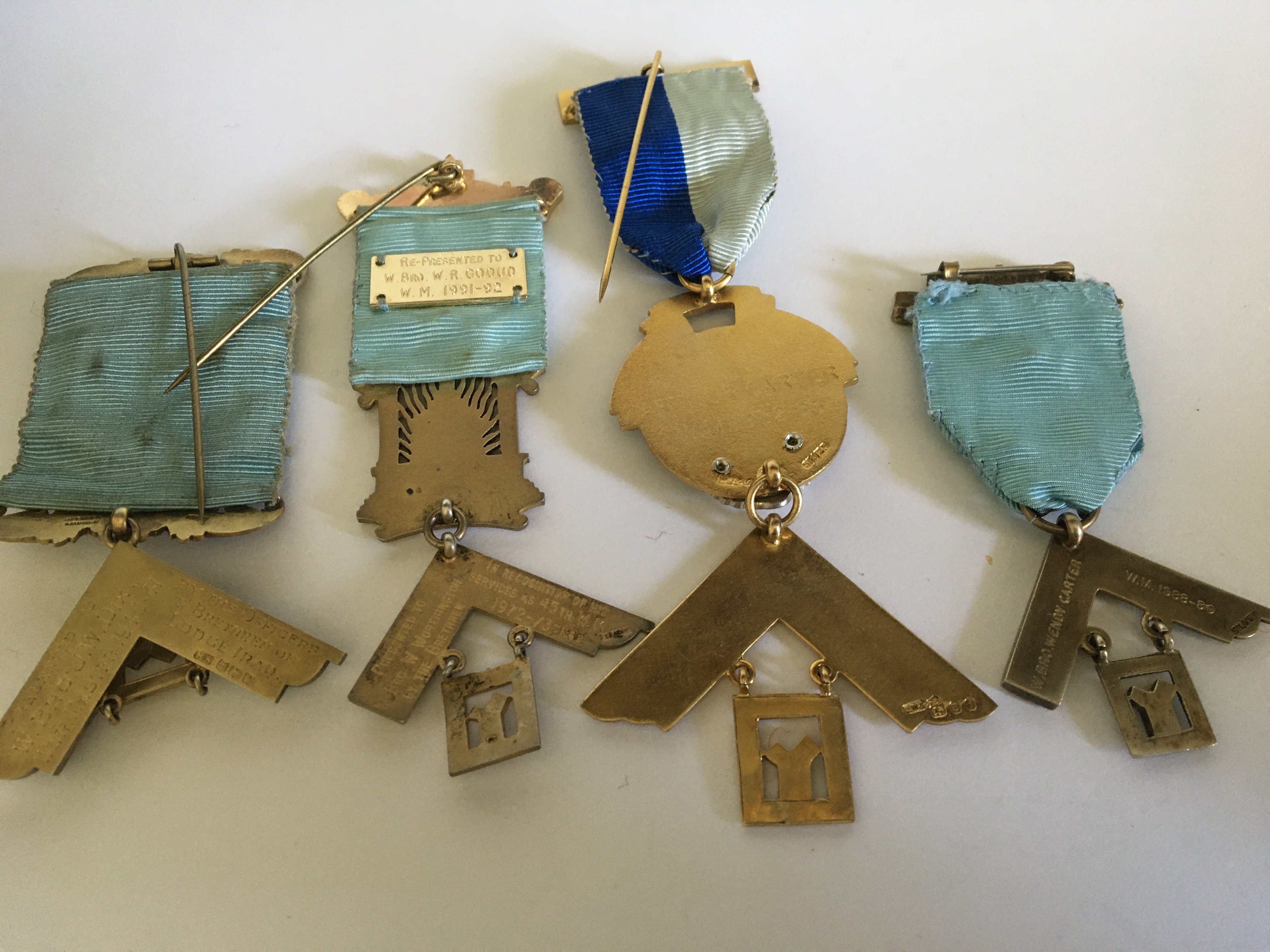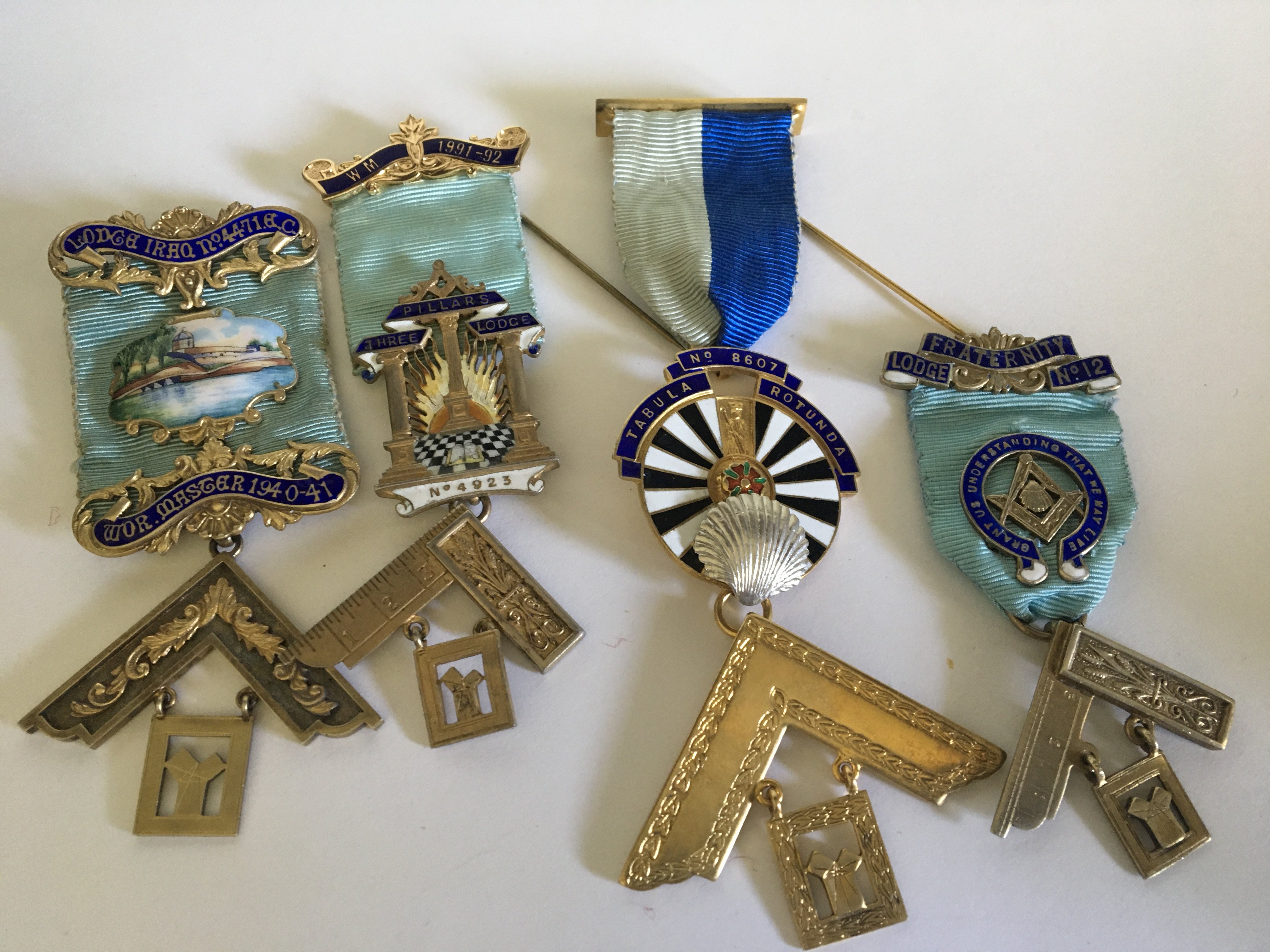 Four silver gilt Masonic Jewels with detailed enamel decoration 1940,Iraq lodge Pillars three lodge Tabula Rotunda and Fraternity lodge (4)