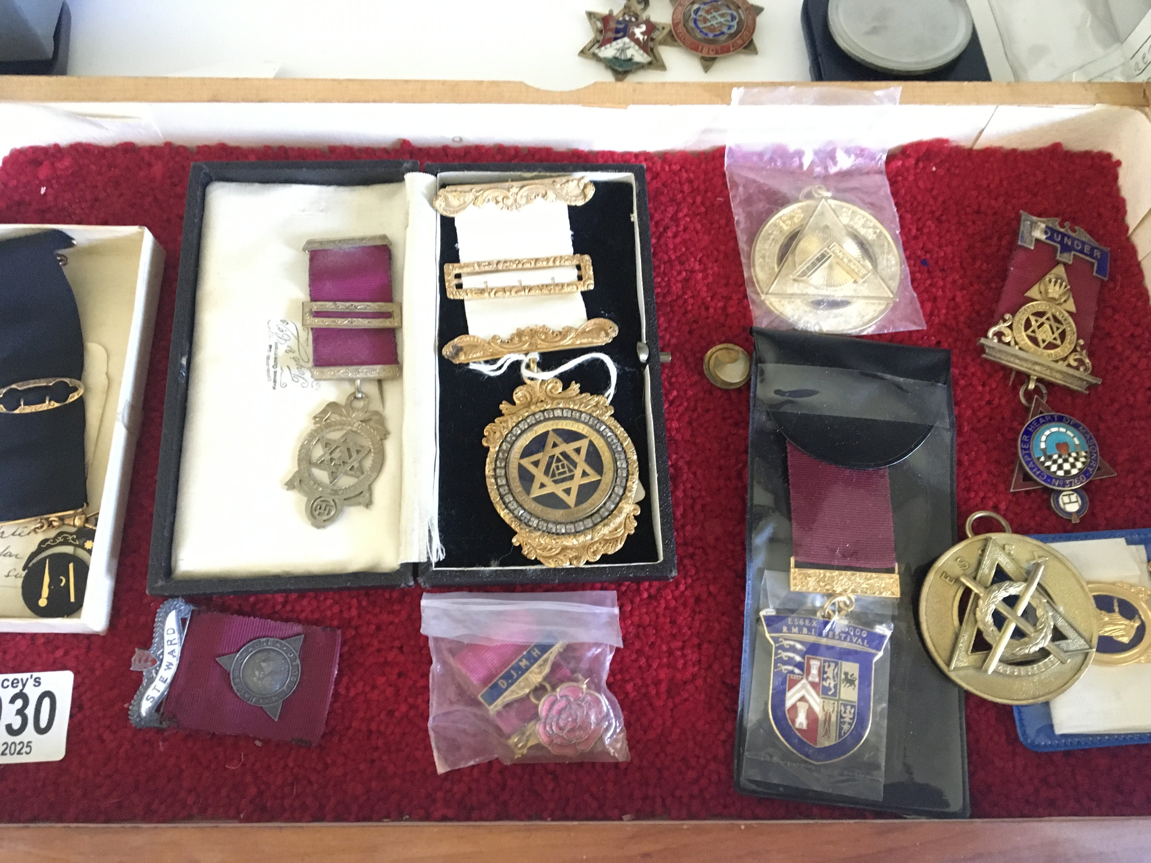 A large elaborate Masonic jewel the centre with the Star of David an Egyptian Masonic jewel and others.