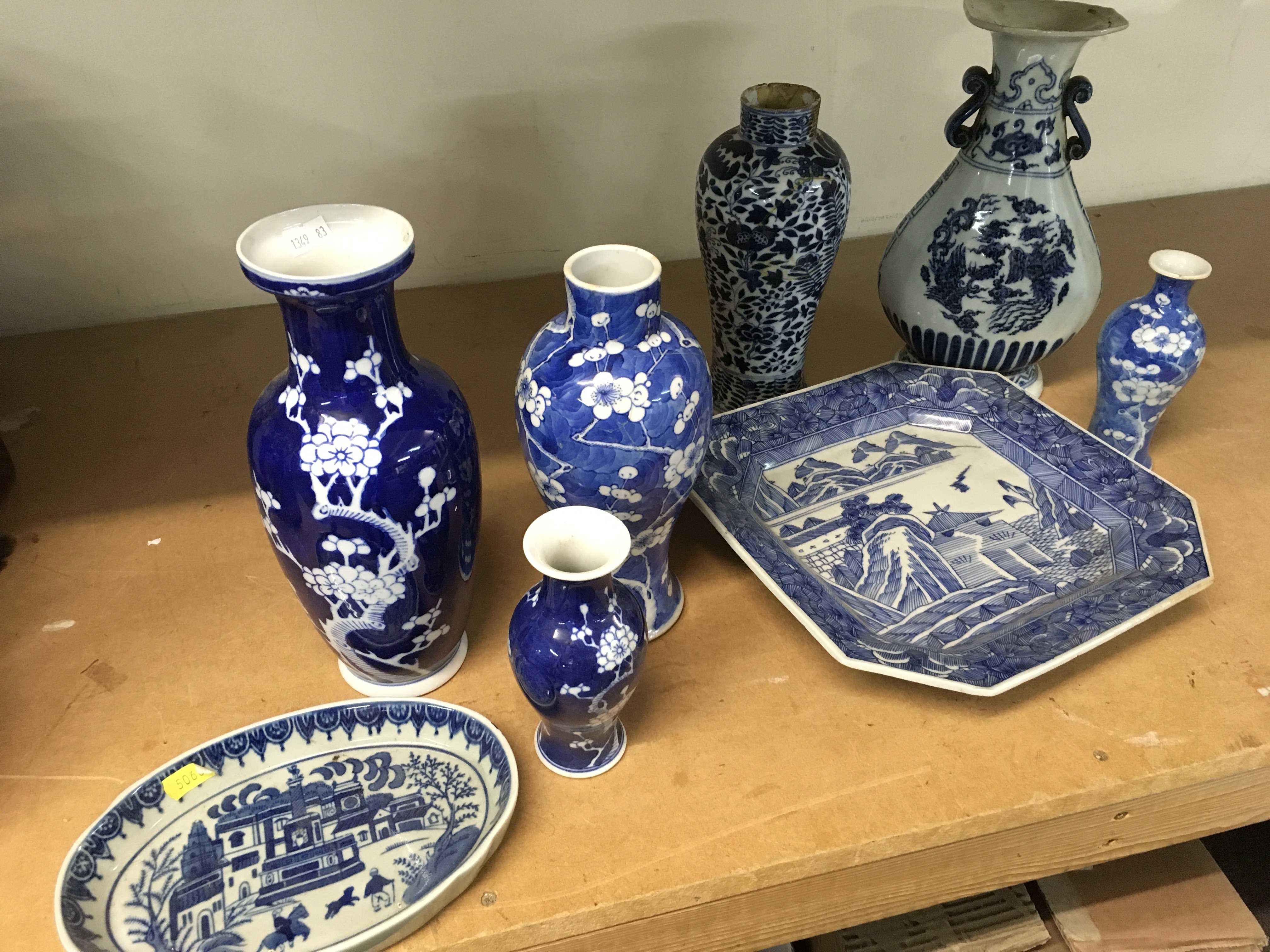 Chinese blue and white ceramics including dishes, vases etc. This lot cannot be posted
