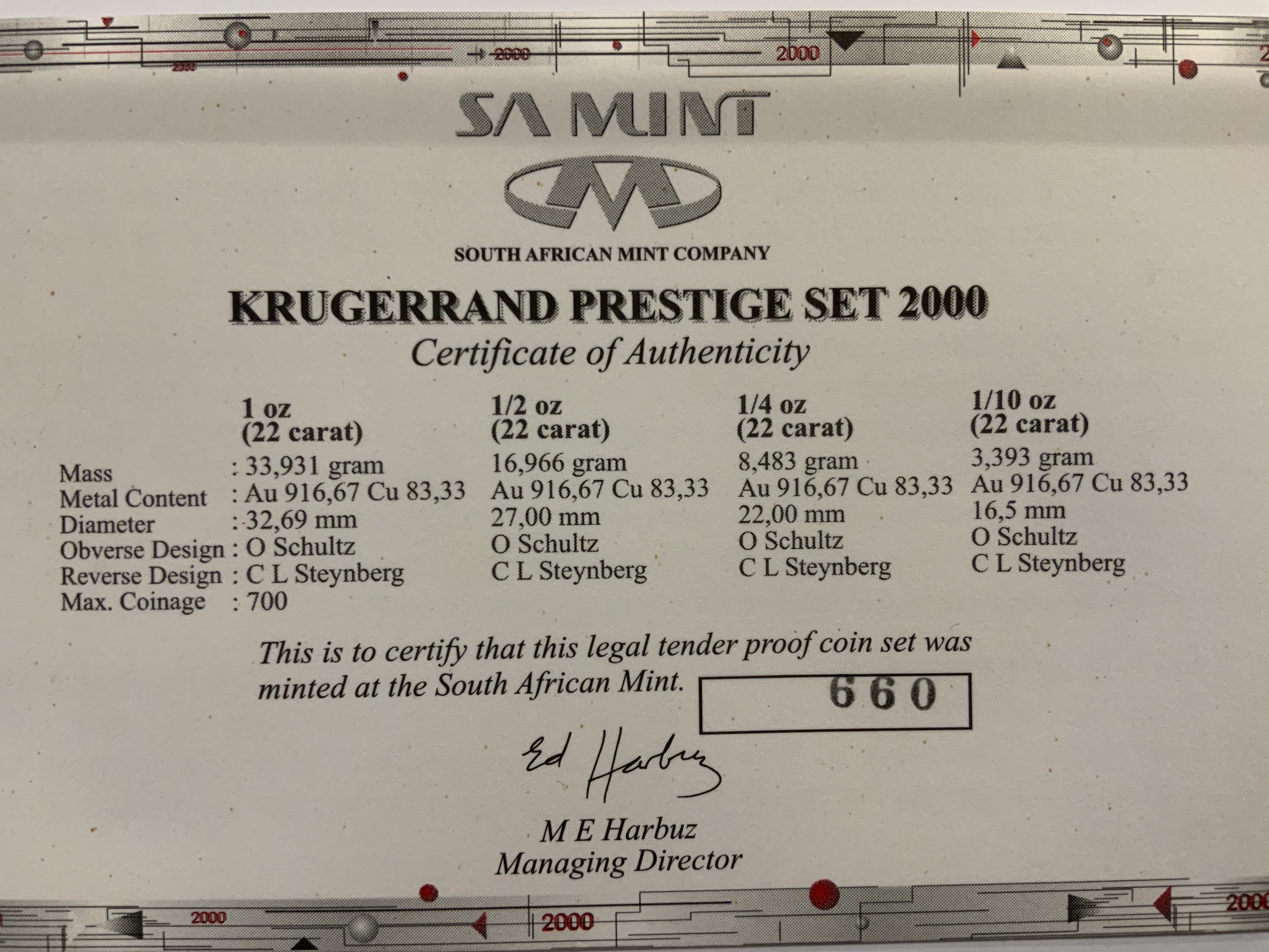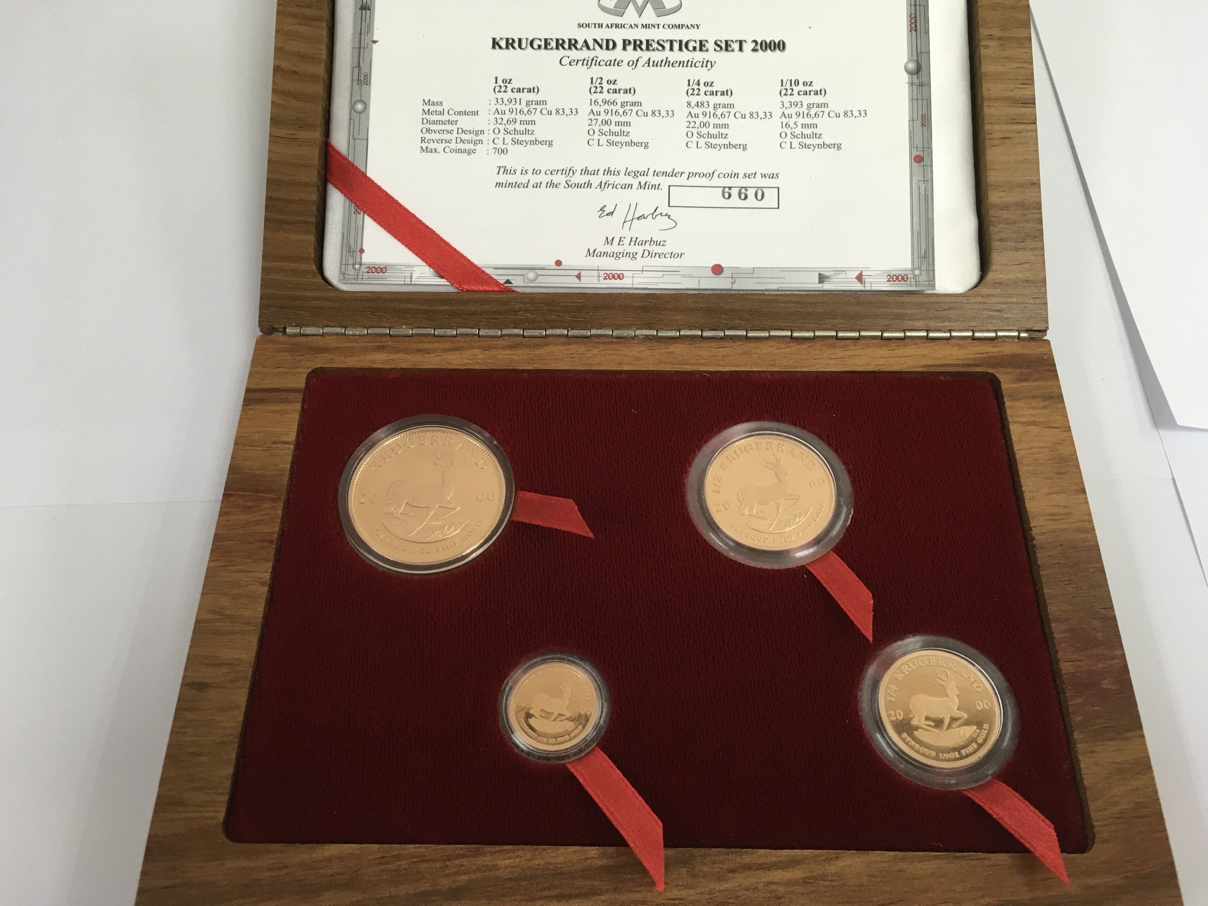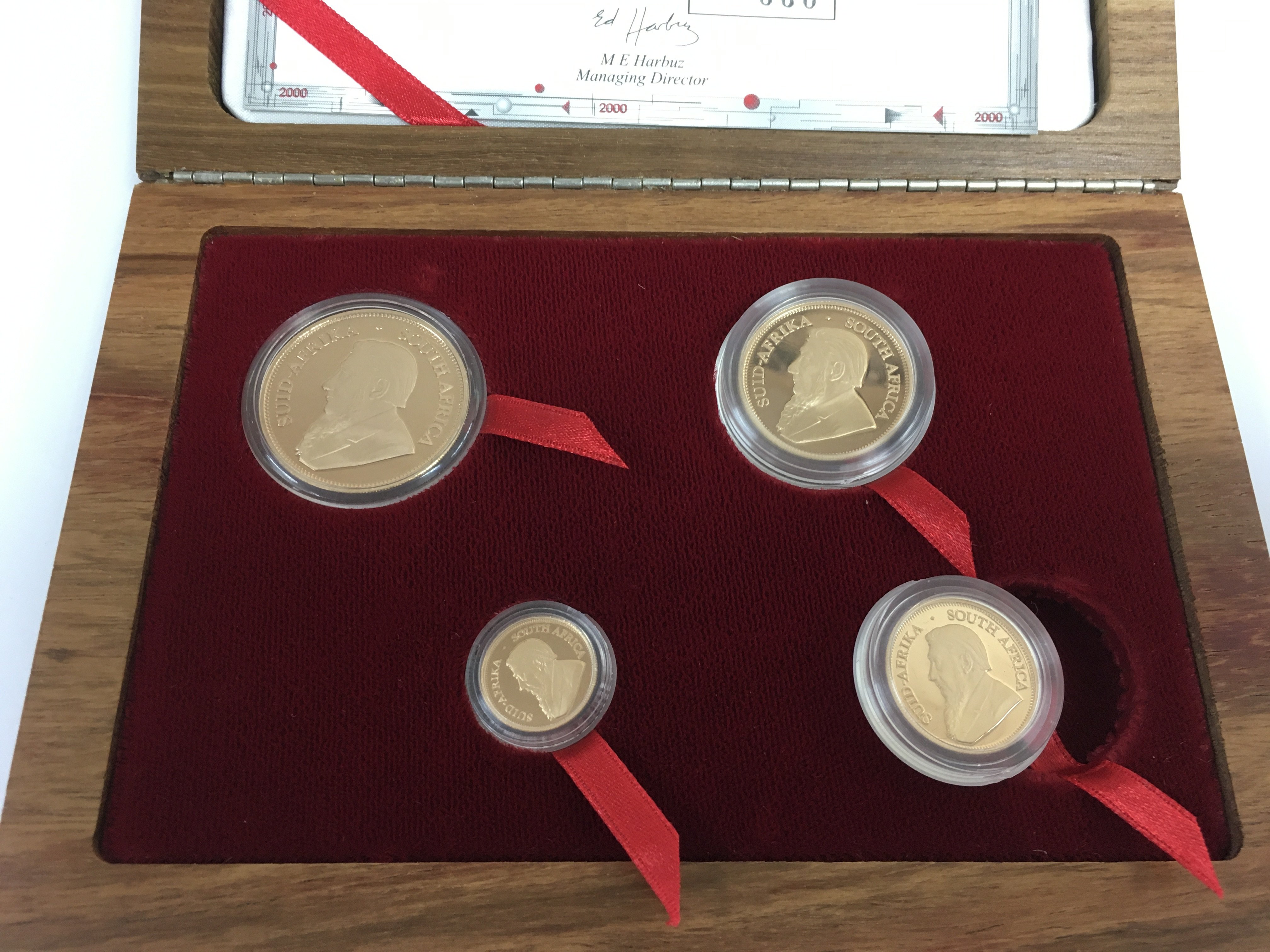 A 2000 Krugerrand Prestige set from the South African mint company in wooden case. Limited edition number 660.