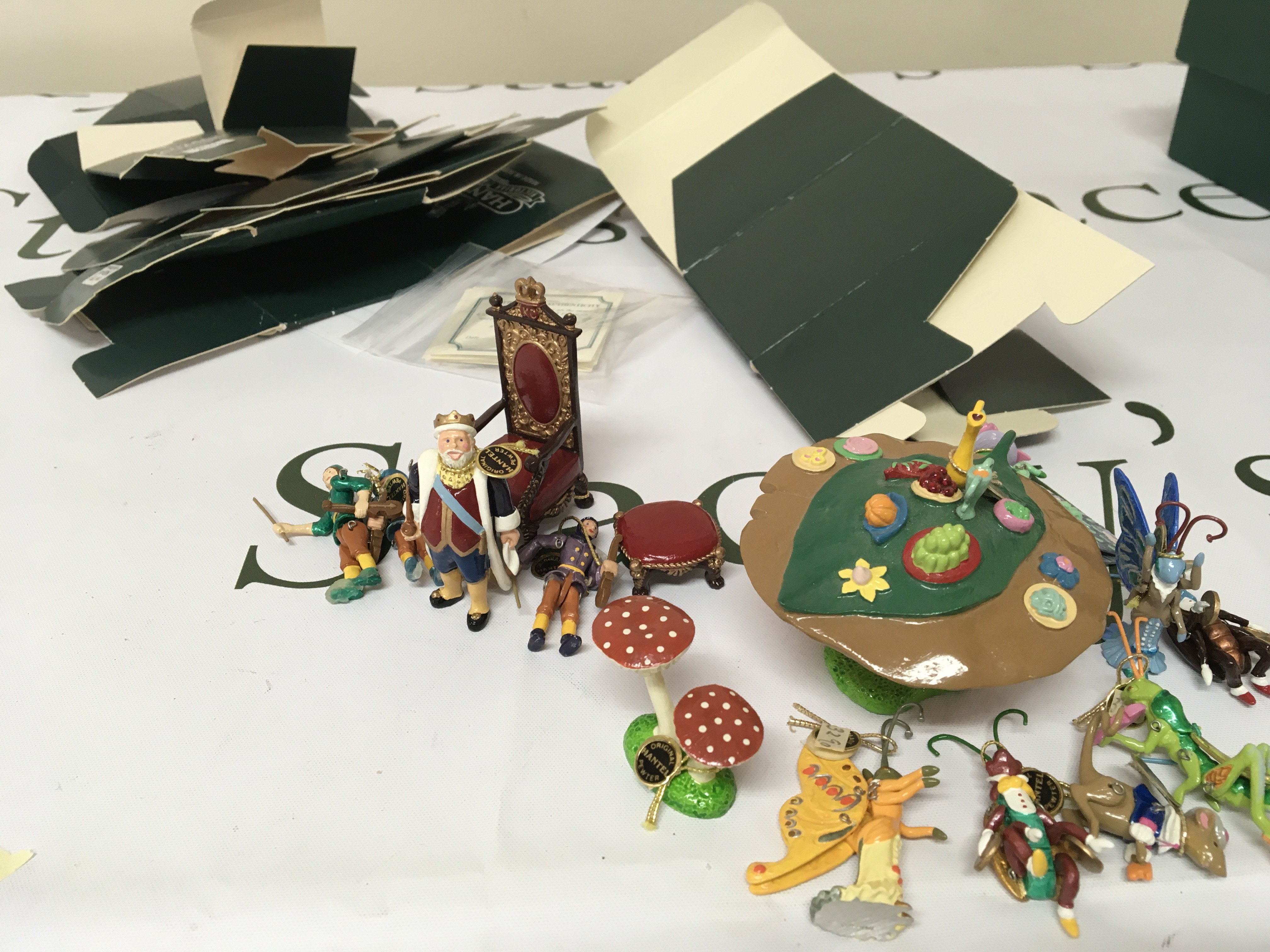 A collection of Hantel figures The ugly bug ball Old King Cole and others with some folded boxes and certificates.