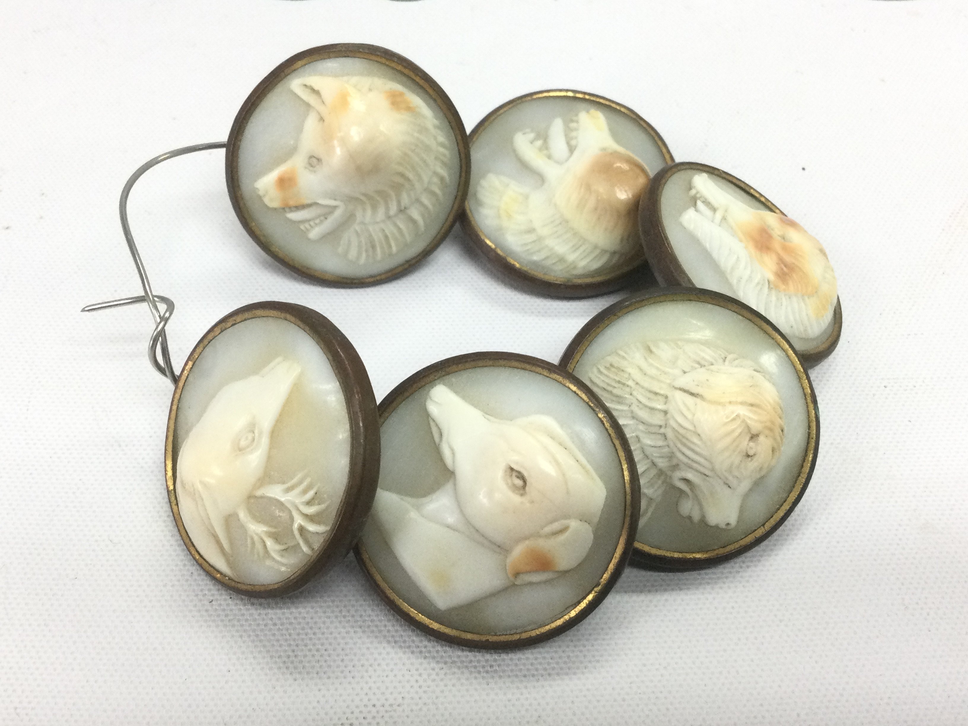 A set of 6 Grand Tour cameo brooches/buttons. Shipping category A.