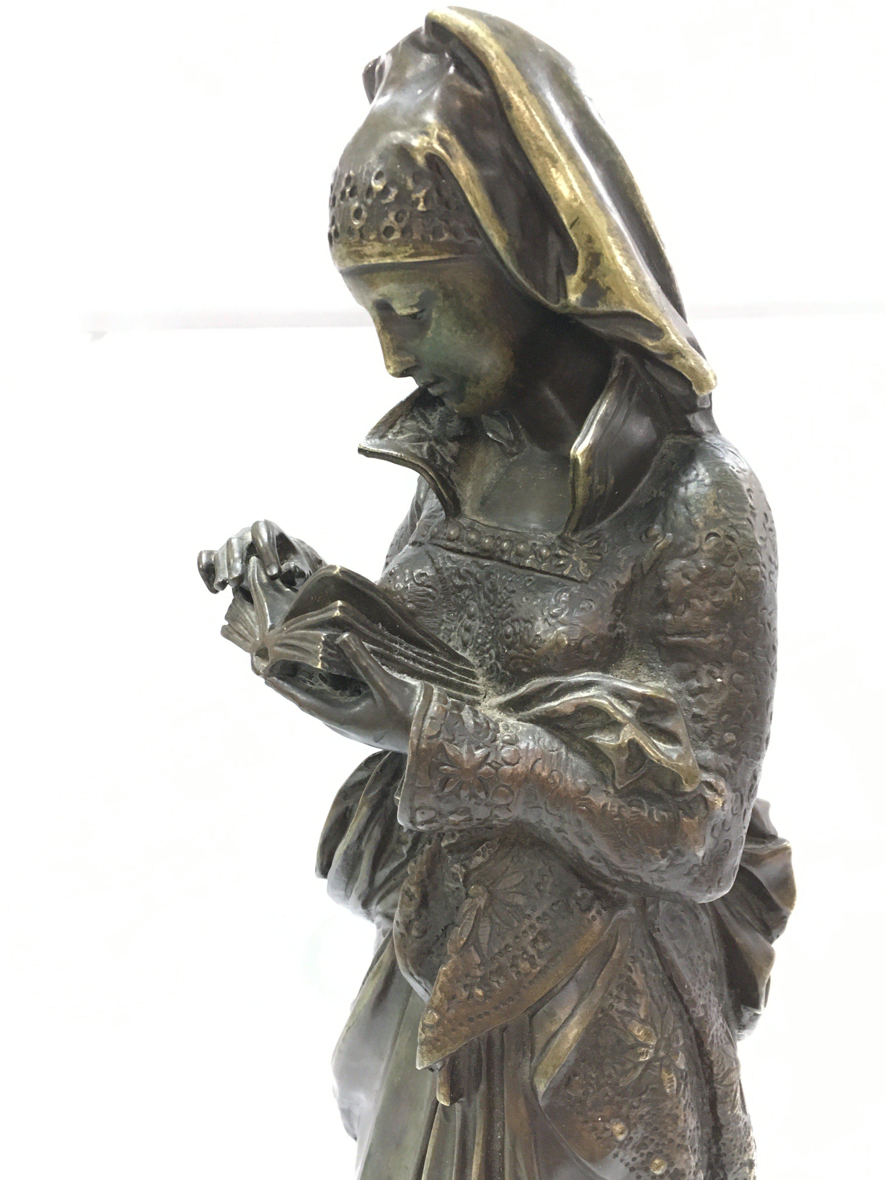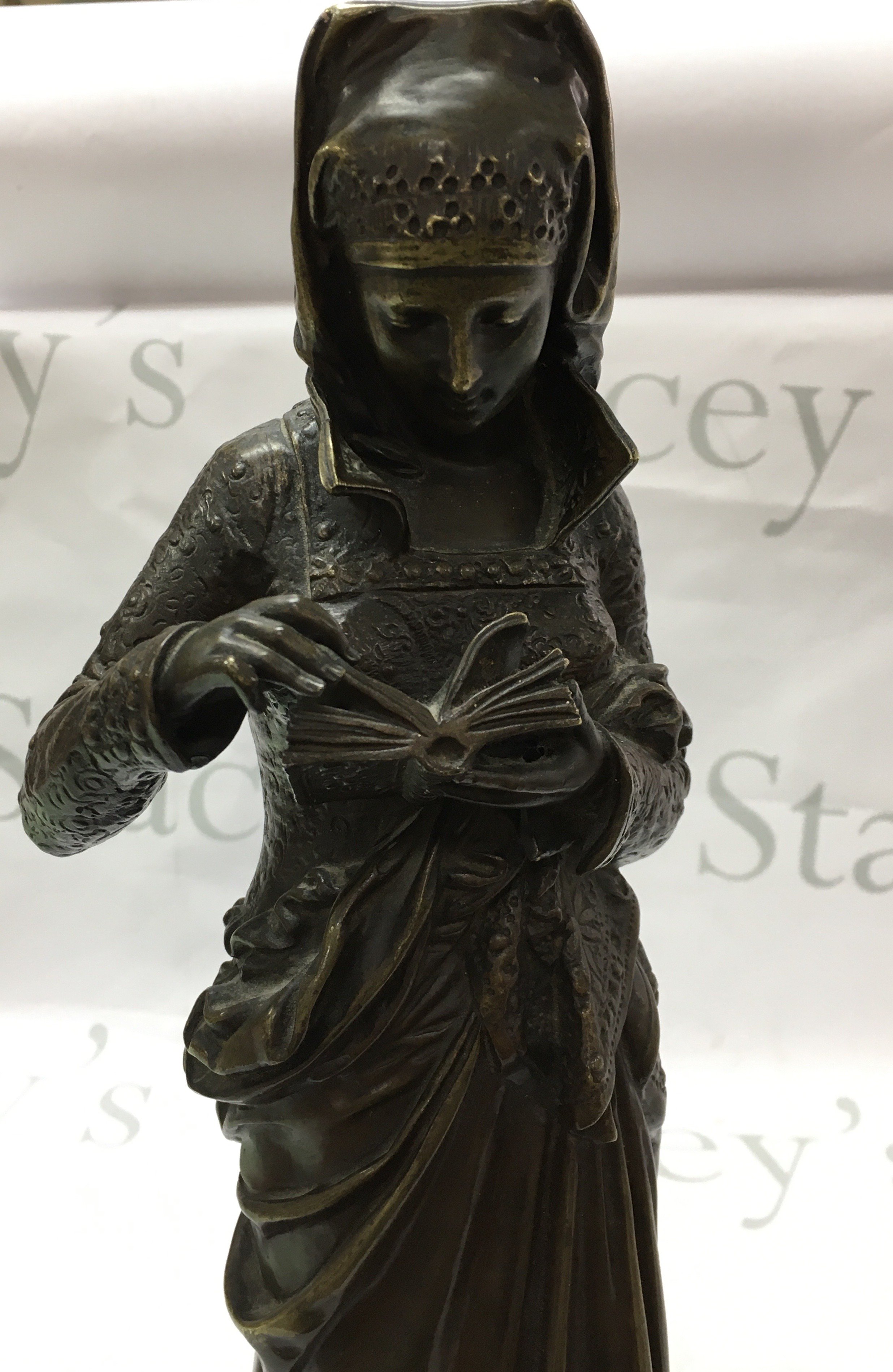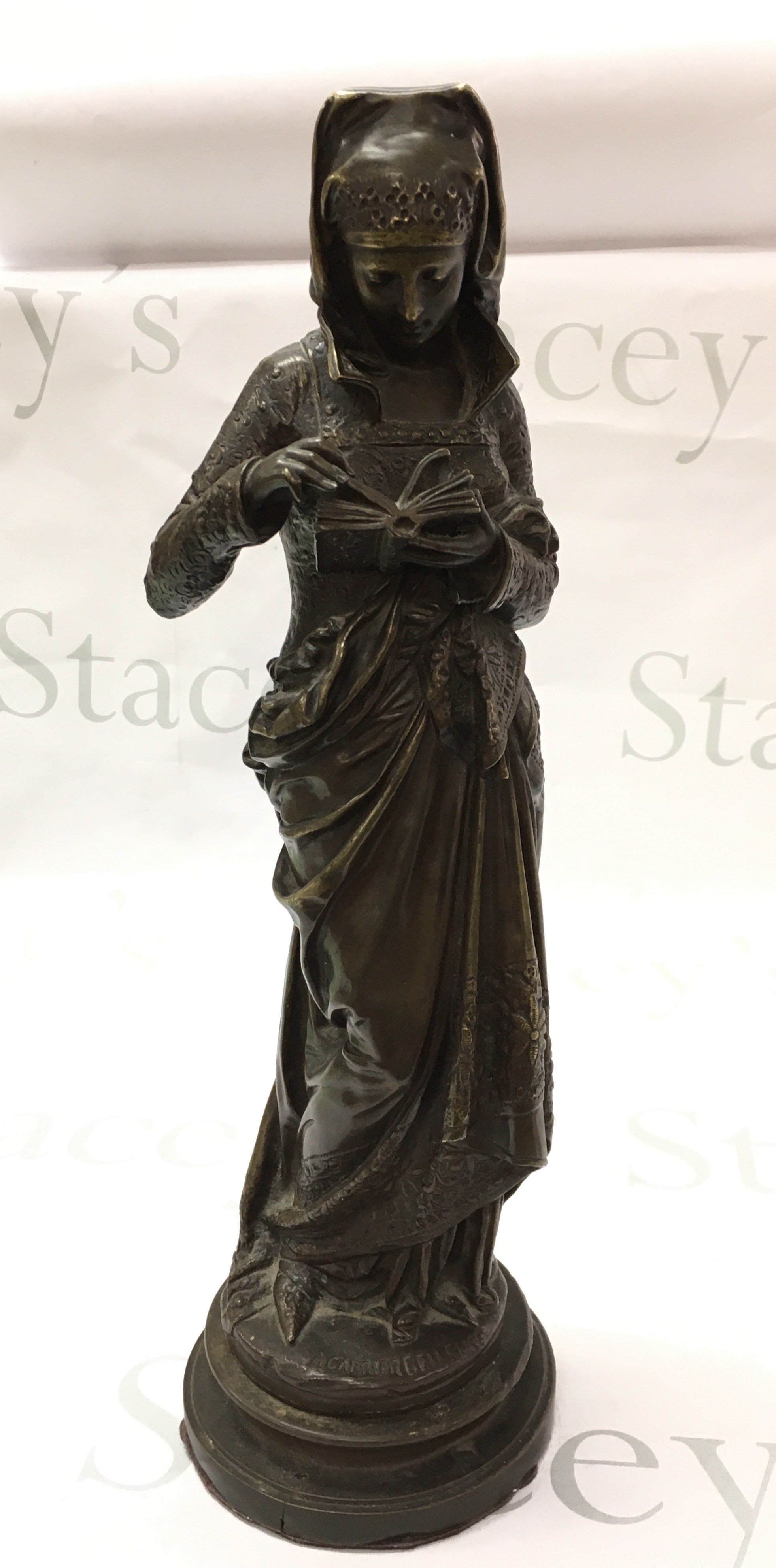 A late 19th/ early 20th century bronze Carrier Belleuse figure, La Liseuse. 40.5cm tall. Postage category C