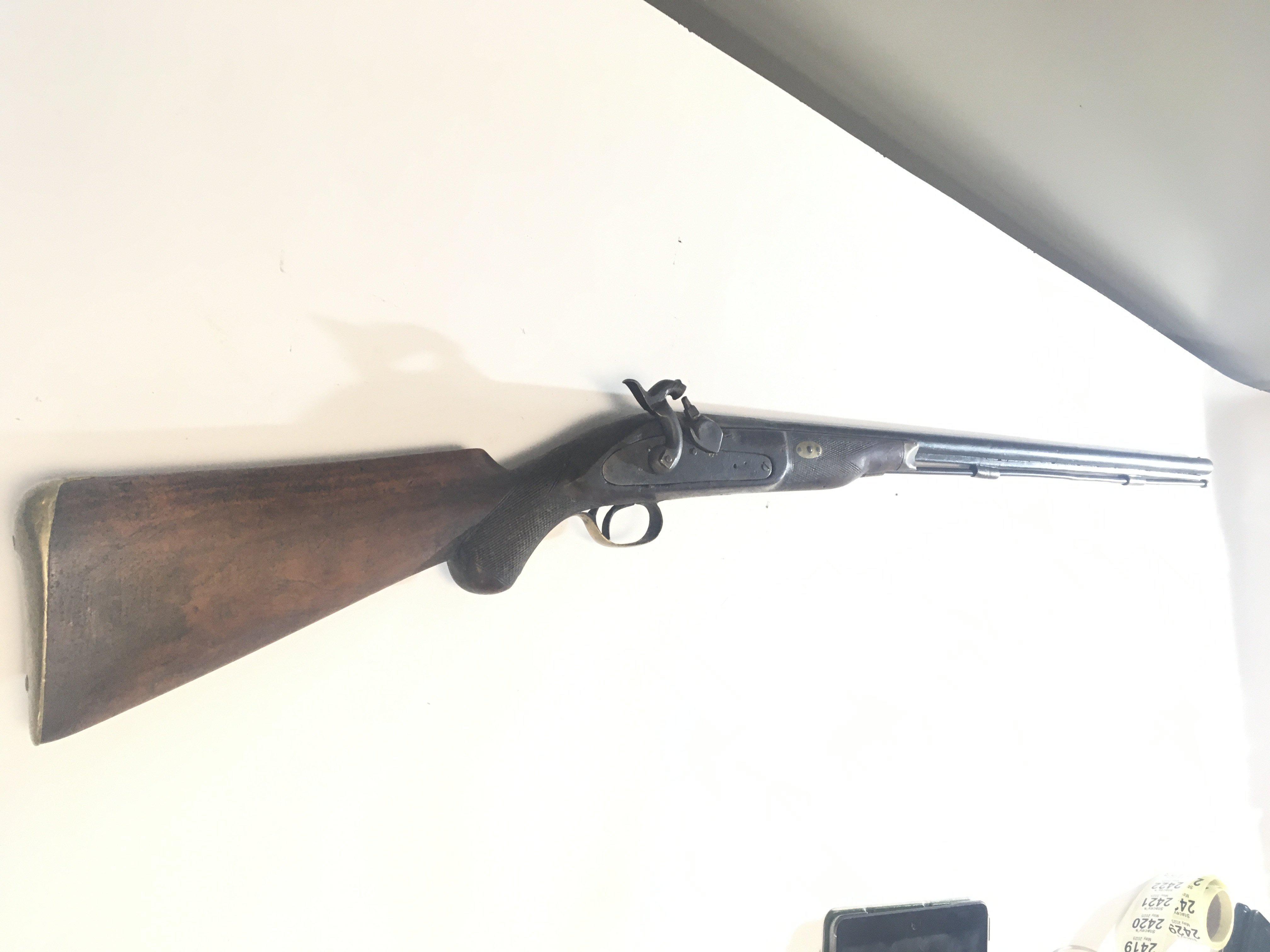 A 19th century Muzzle load Percussion sporting Rifle with brass fittings no obvious makers marks steel ram rod.