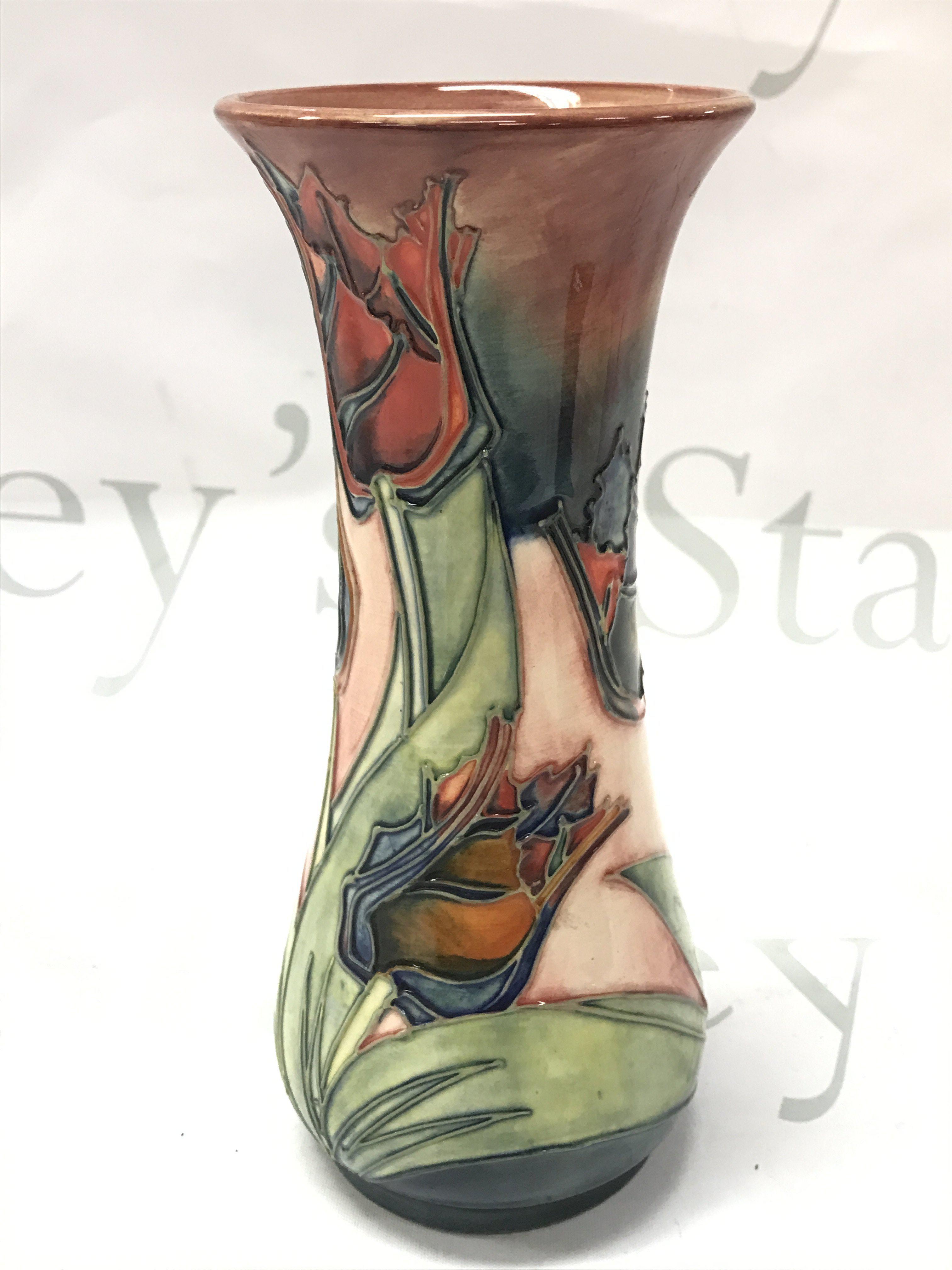 Moorcroft Red Tulip vase, no obvious damage or restoration . 21cm tall. This lot cannot be posted