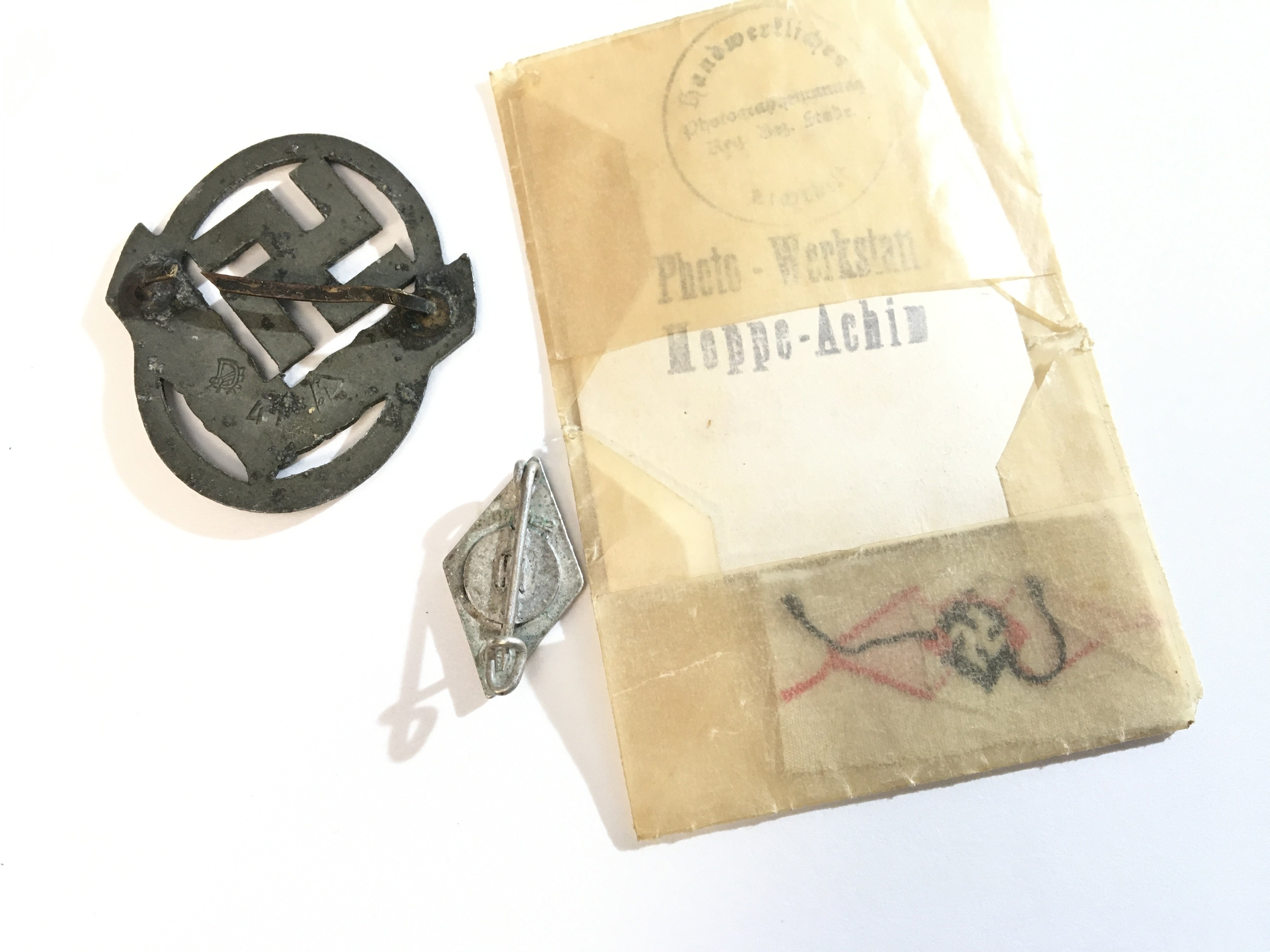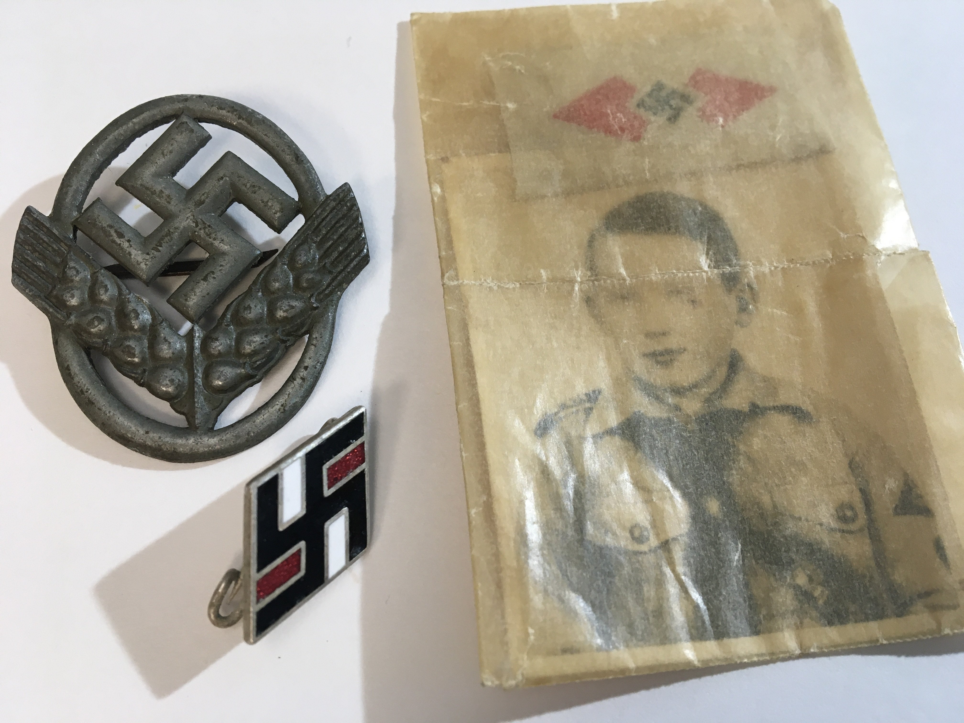 A Rare Early edition Art Deco influence Hitler Youth enamel badge and one other German Third Reich badge and a Hitler Youth photo with small cloth badge.