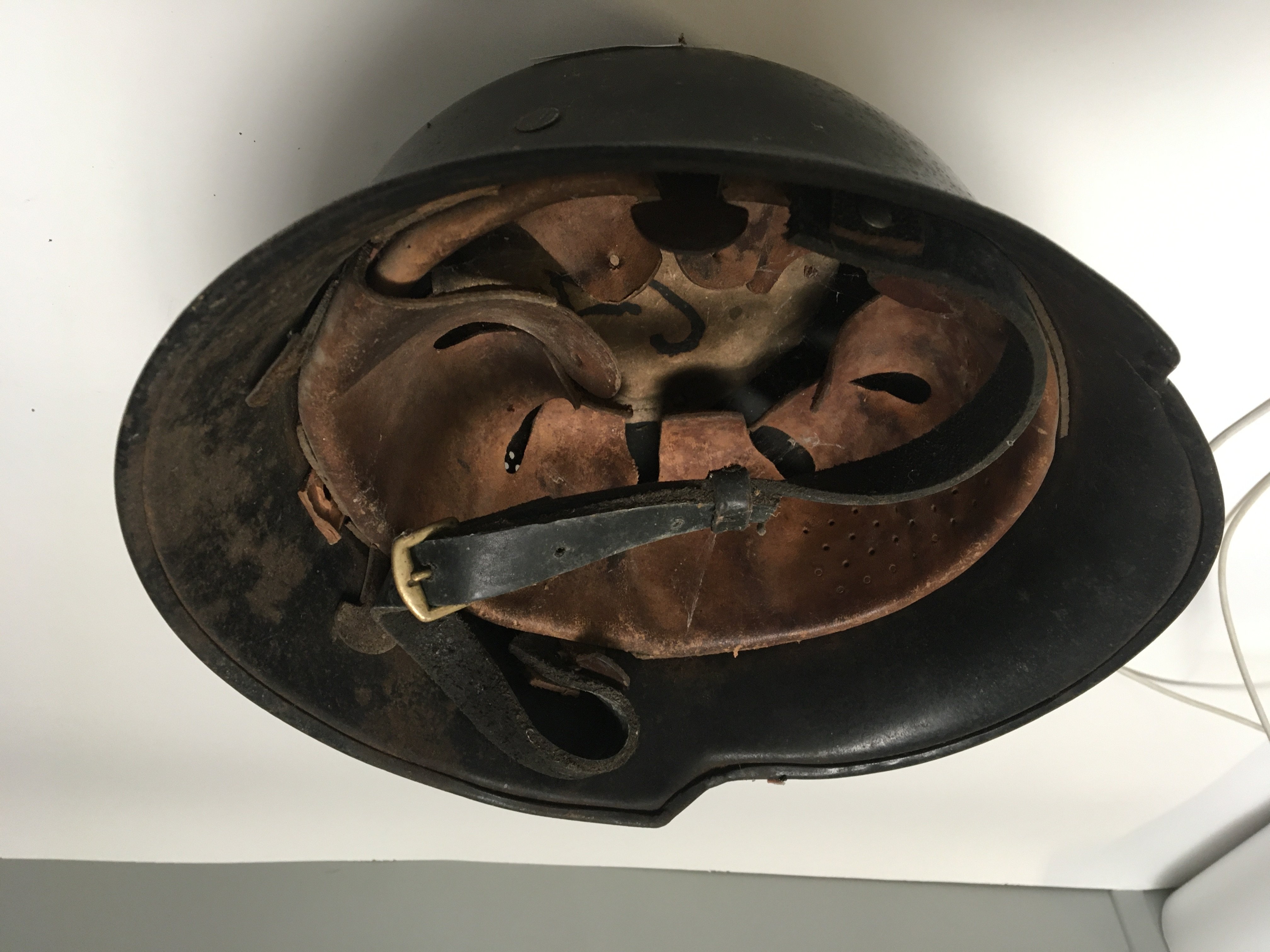 A Genuine German II world war Third Reich Police helmet black finish folded edge and with original liner.