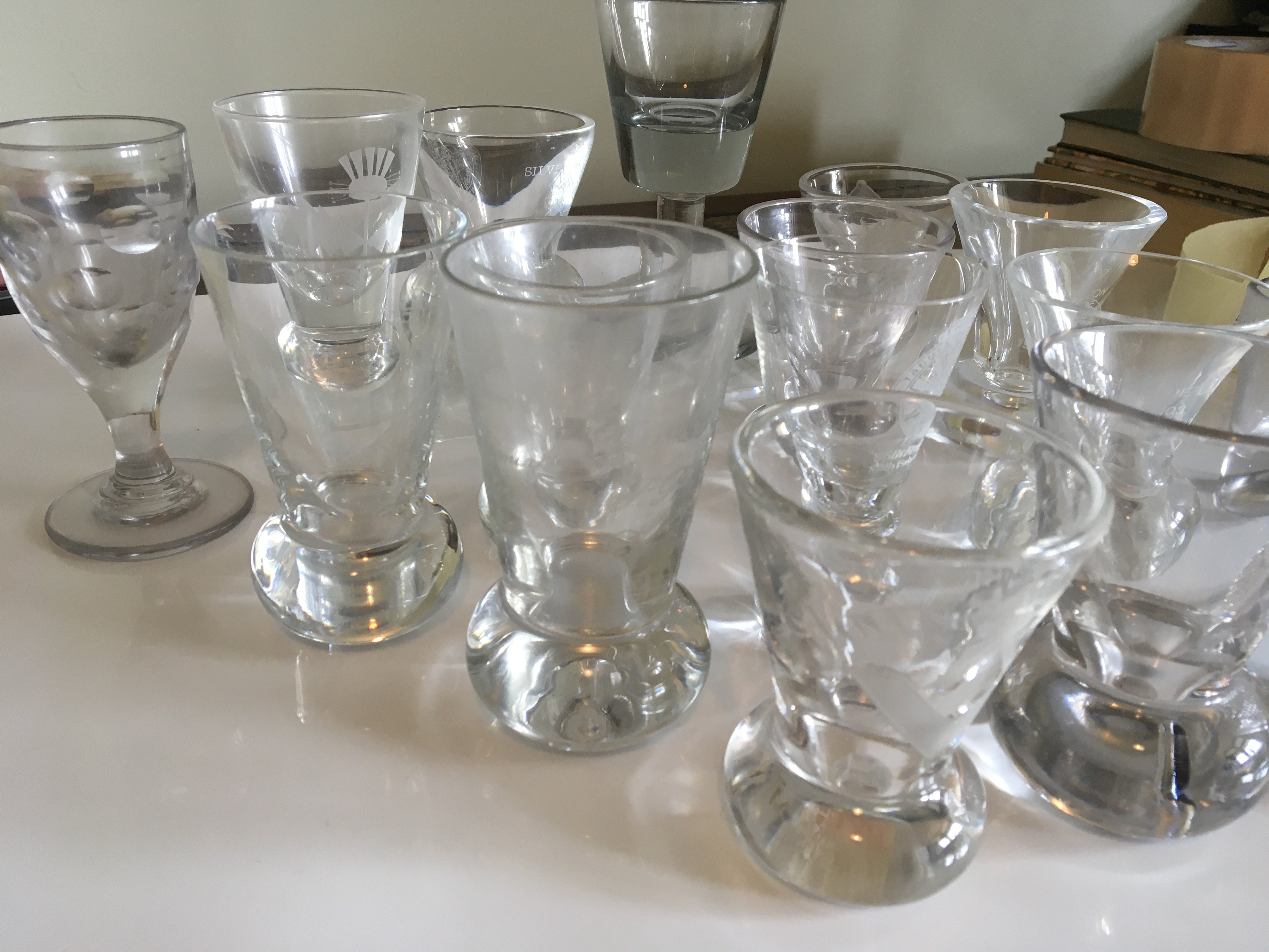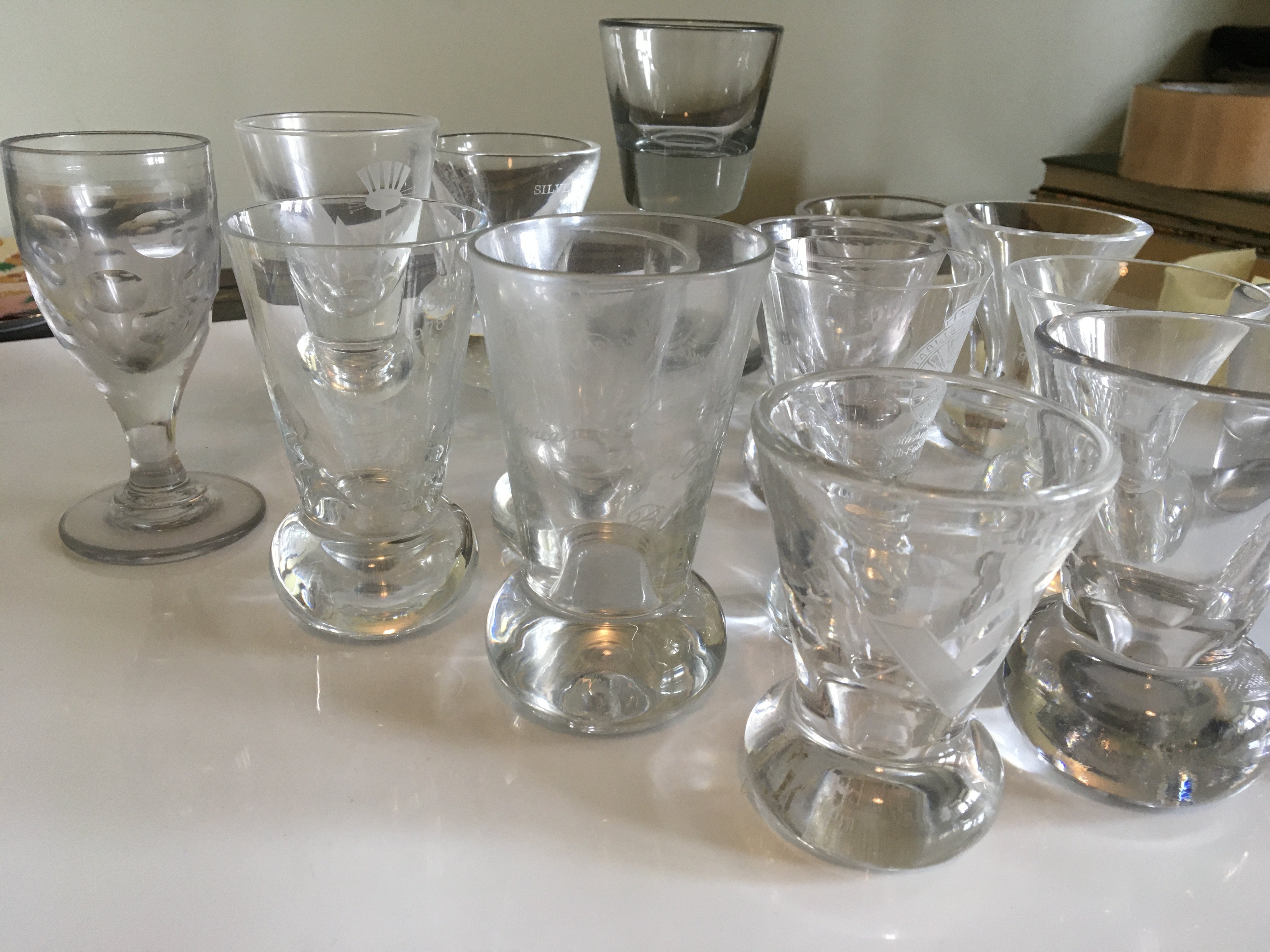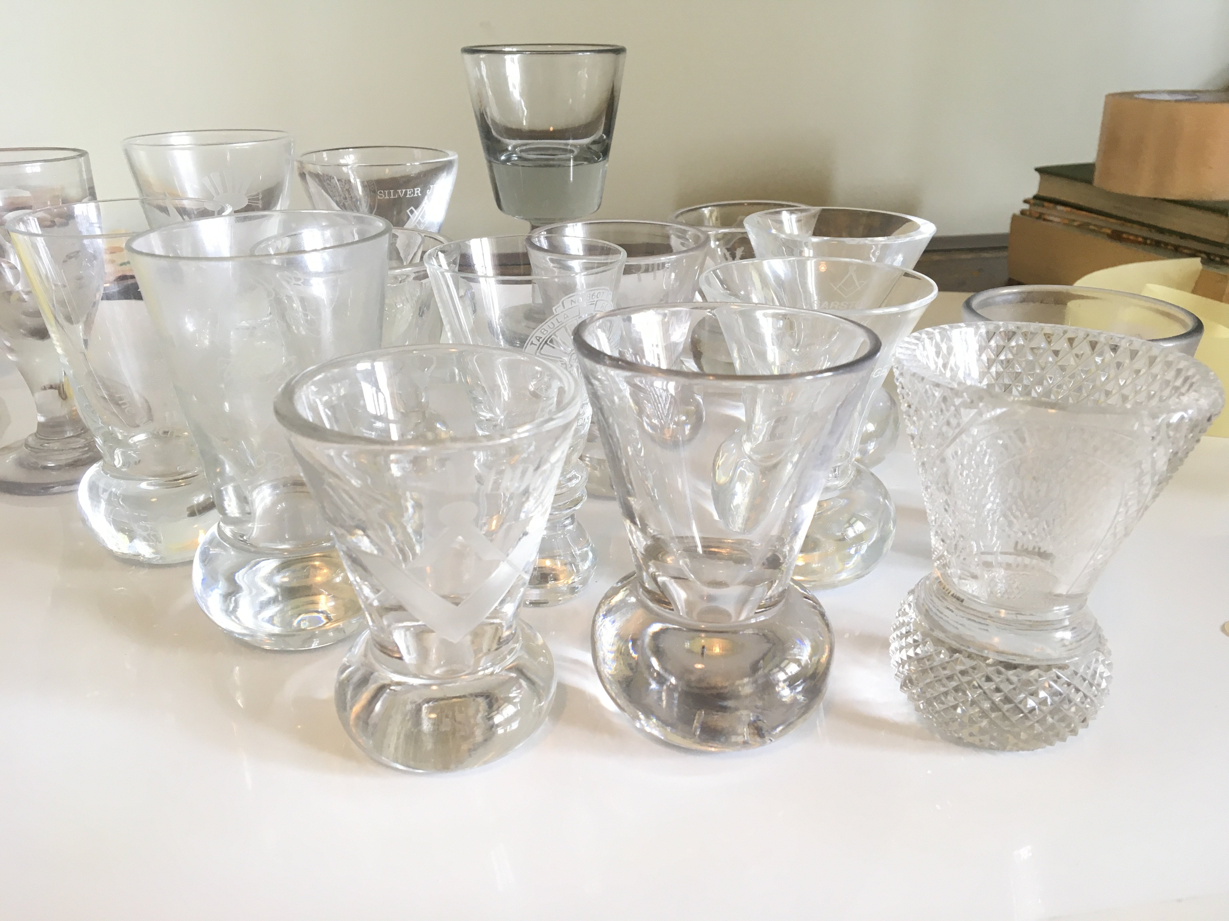 A collection of Masonic firing shot glasses. Including 19th century examples.