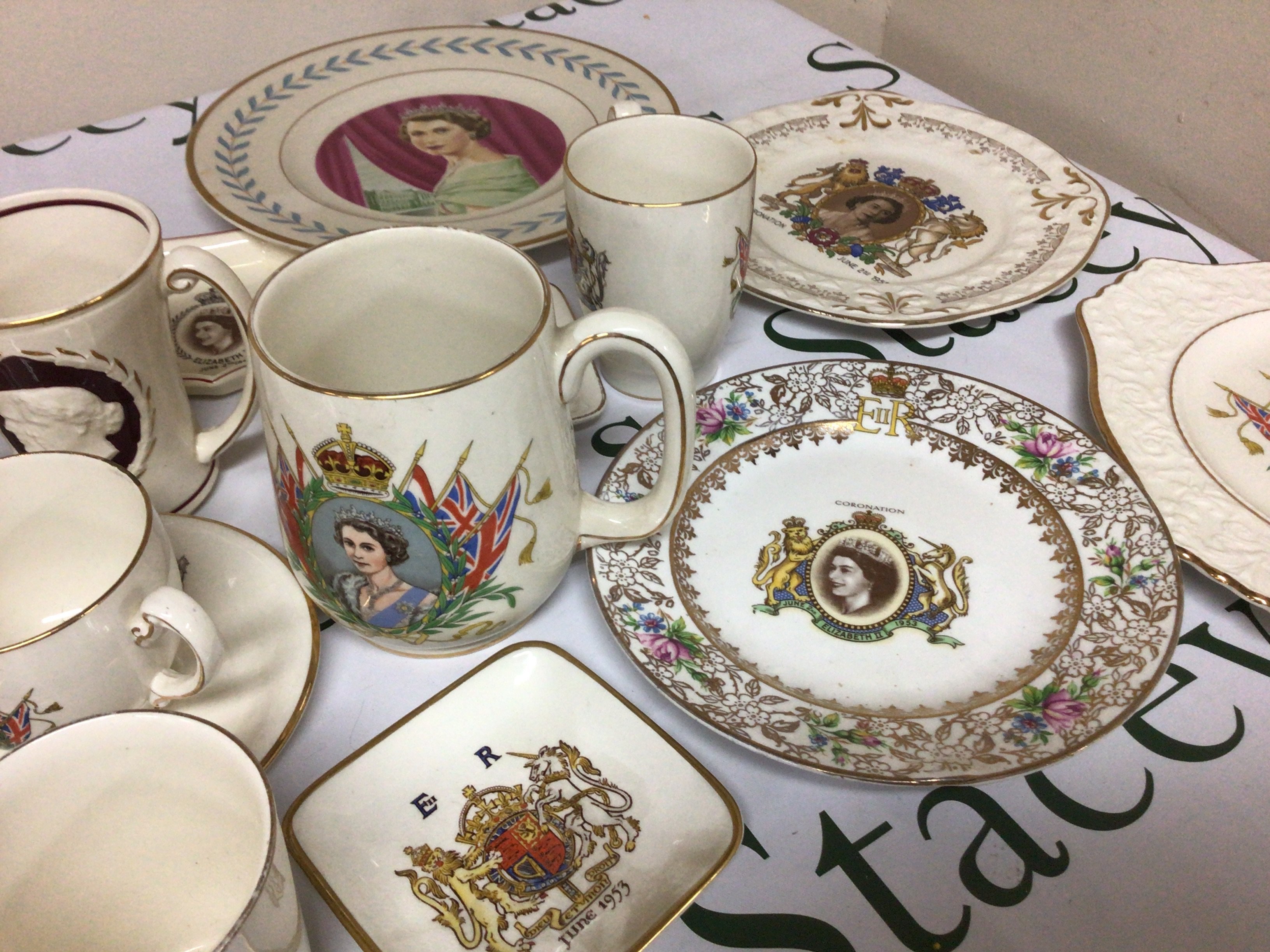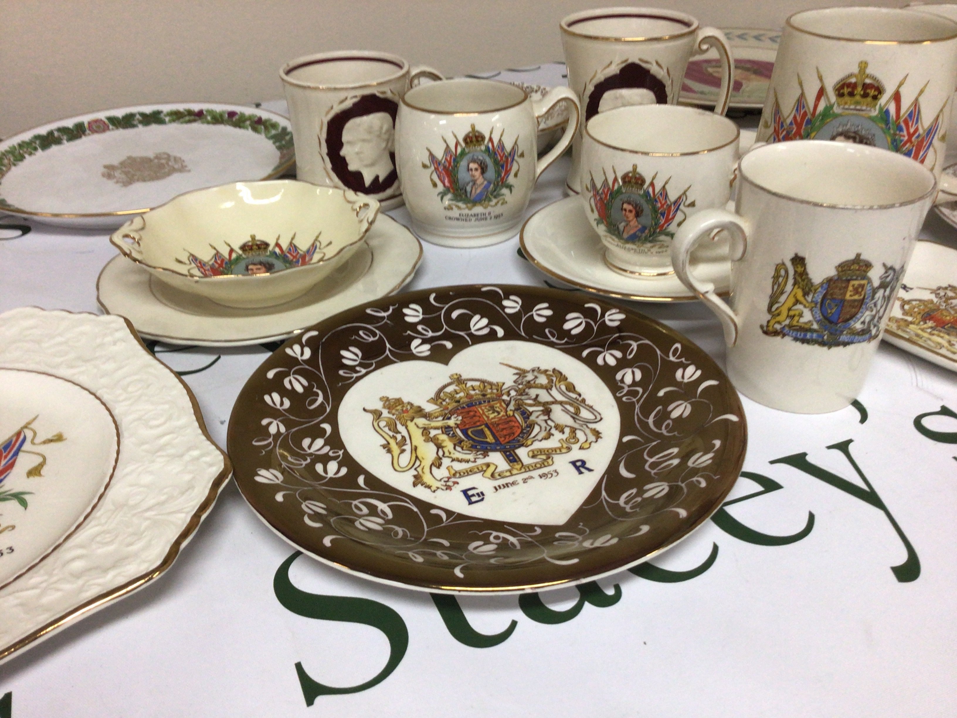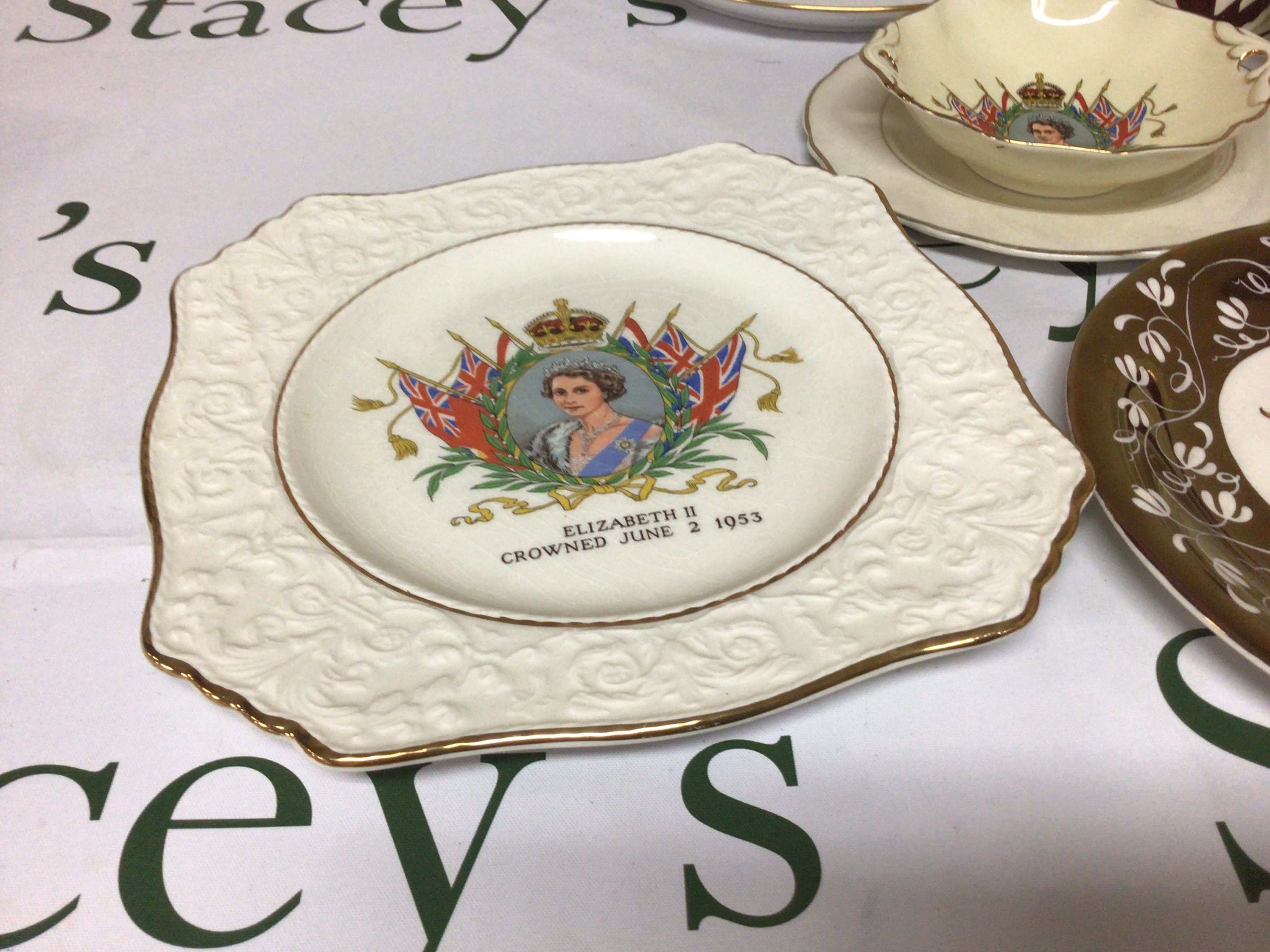 A collection of Elizabeth II coronation ware porcelain and other ceramics including Grays pottery lustre dish Royal Alma Royal Winton the tea cup and saucer with a hair line crack otherwise no obvious damage or restoration. NO RESERVE.