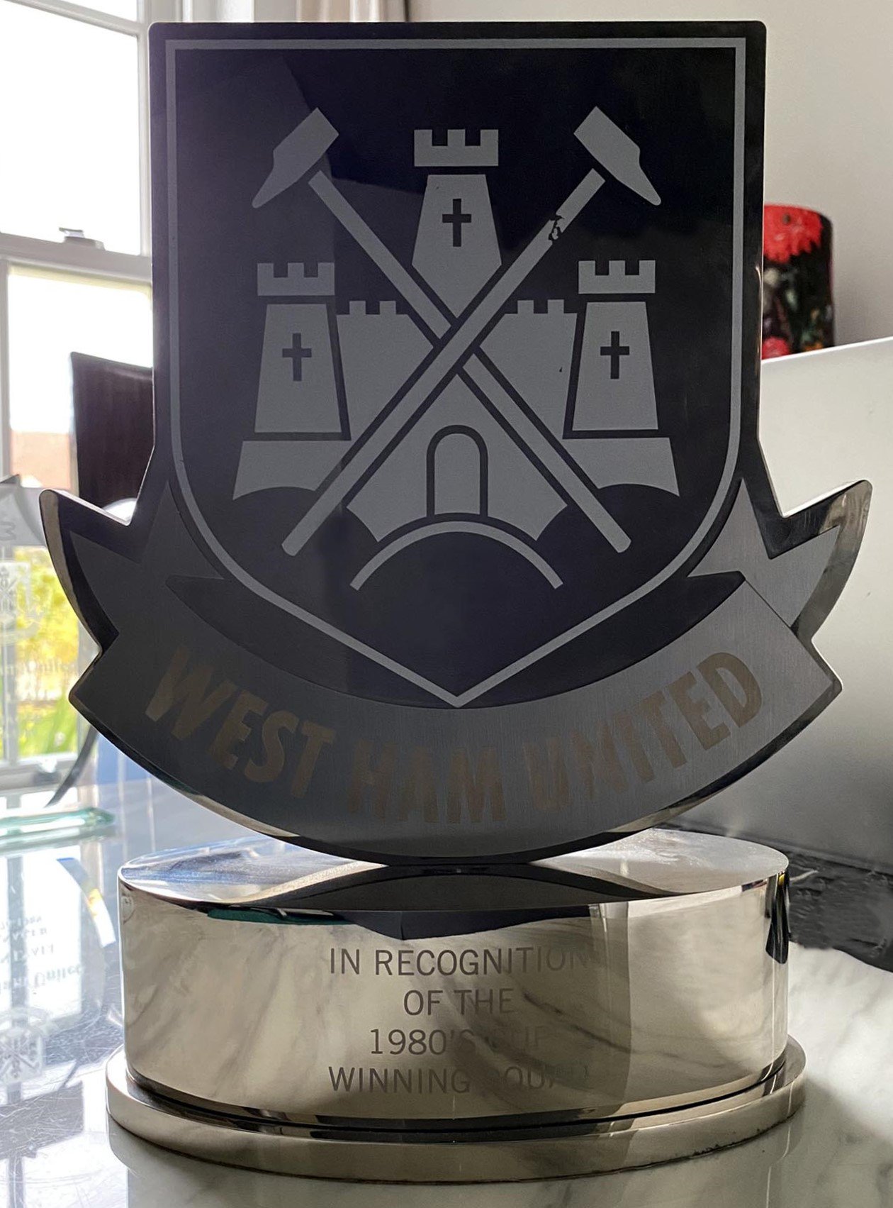 1980 West Ham FA Cup Winners Gift From Directors: Awarded to John Lyall and playing staff by the board of directors as a mark of achievement. Old West Ham crest above the words in recognition of the 1980s cup winning squad.