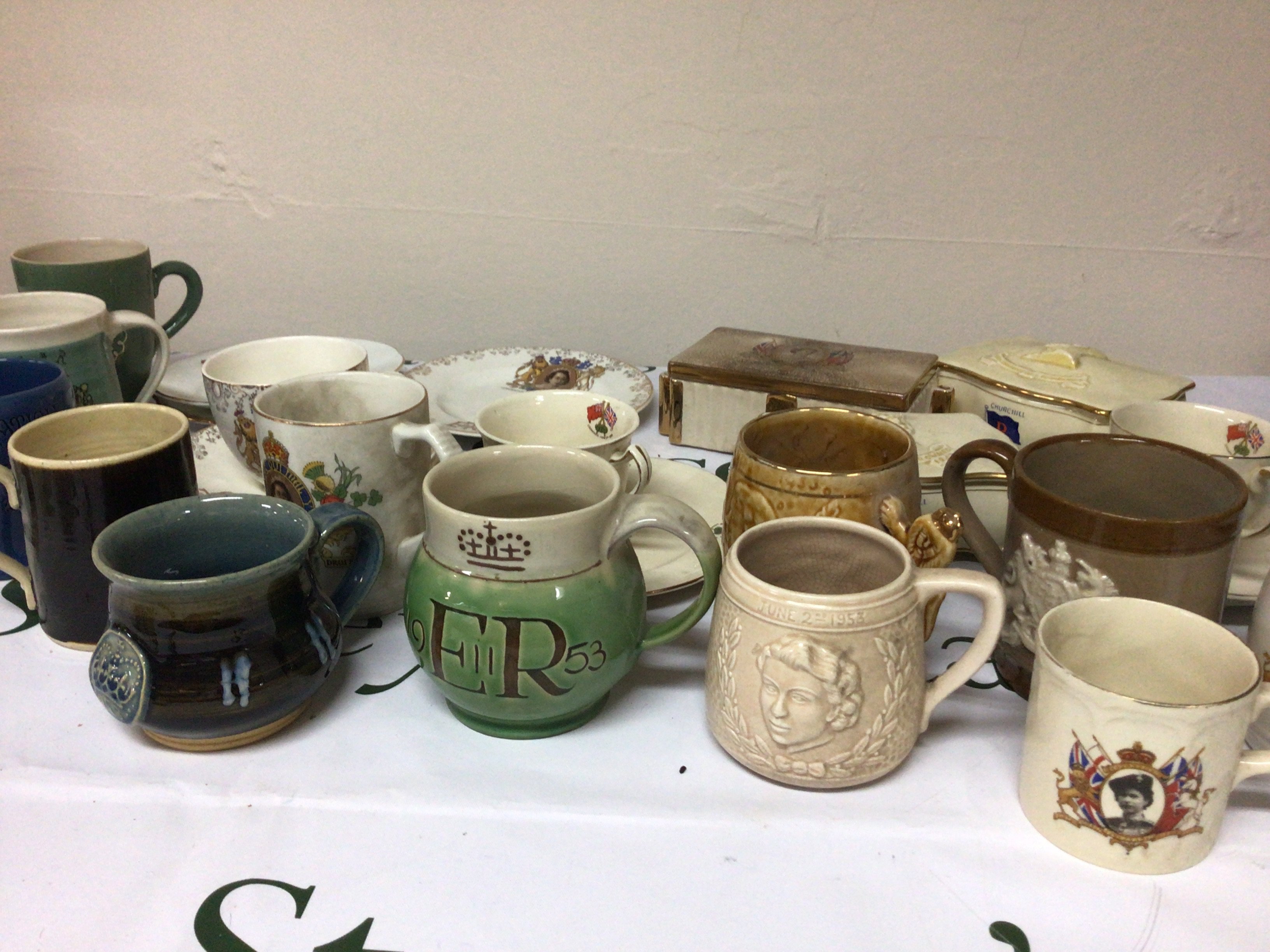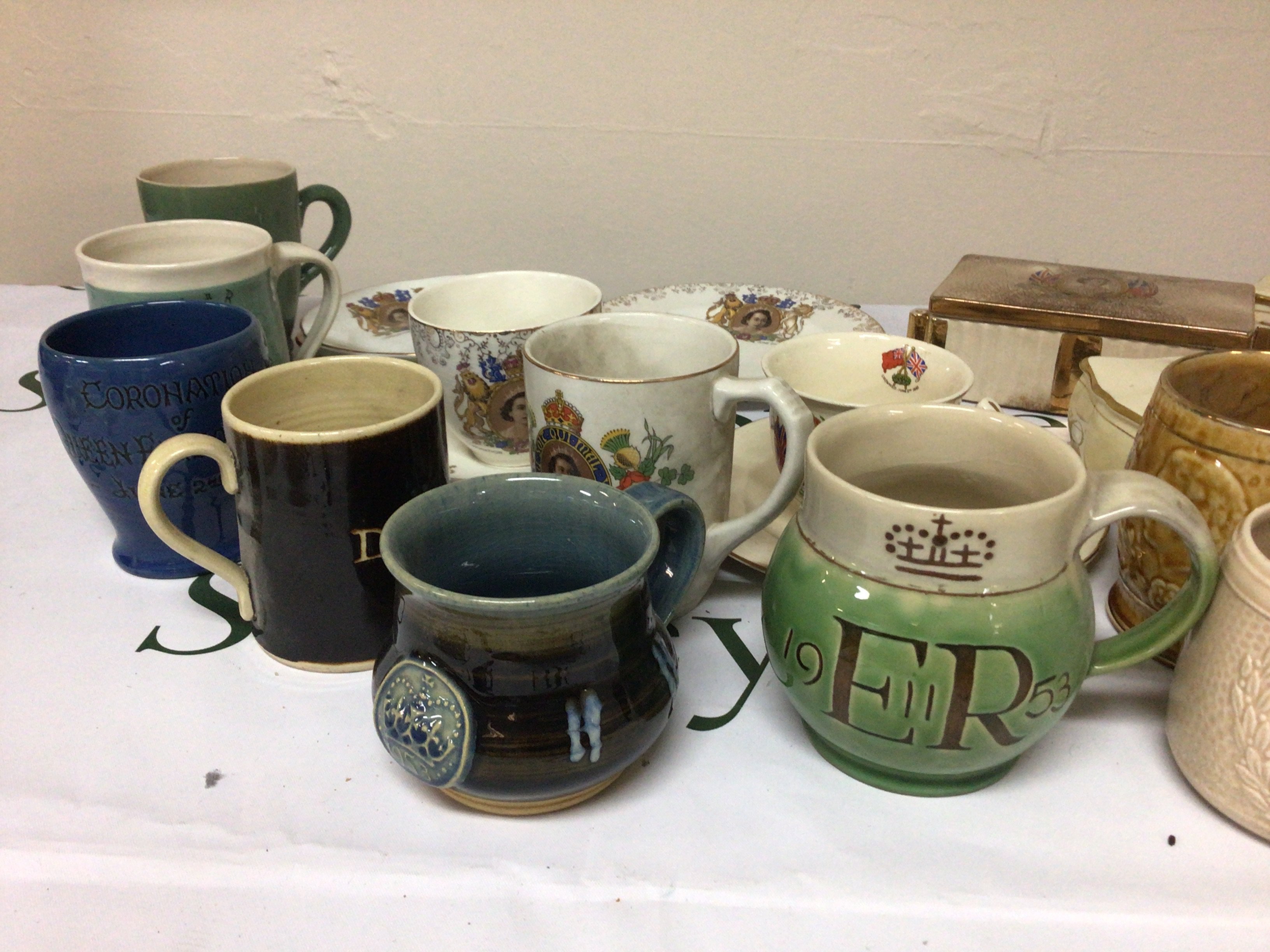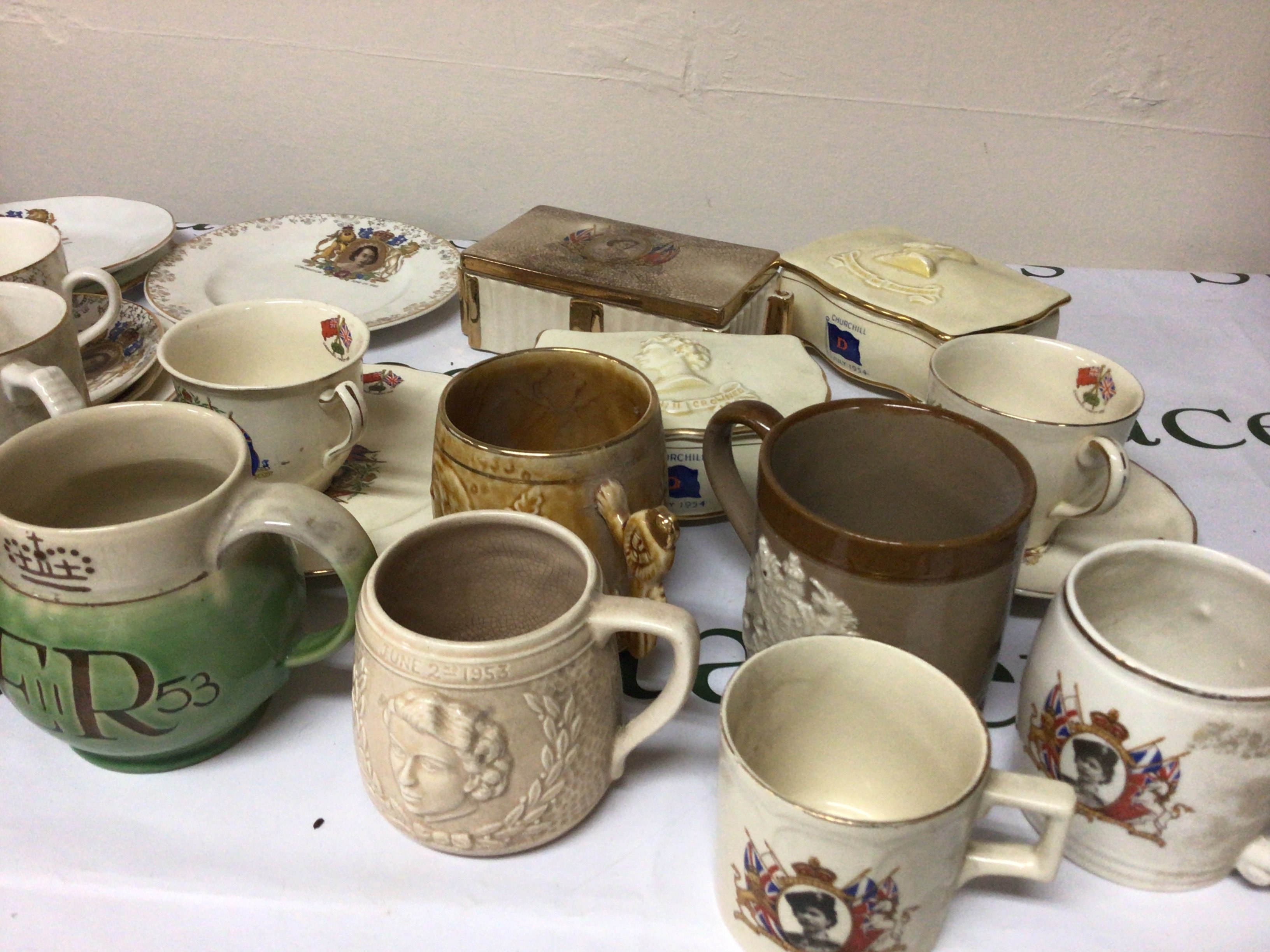 A collection of Royal Commemorative 1953 coronation mugs and plates and boxes. NO RESERVE.