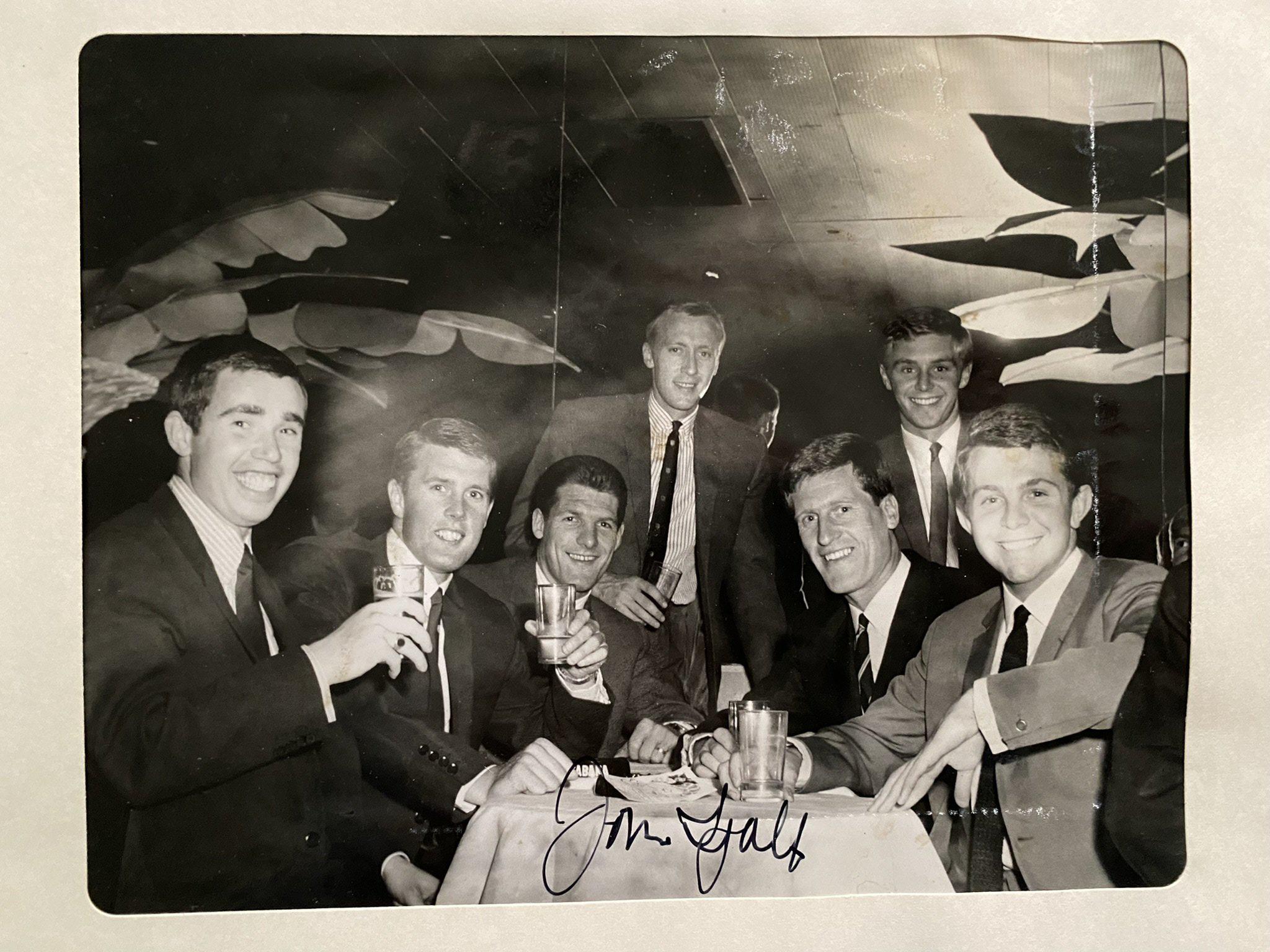 John Lyalls West Ham 1963 USA Tour Signed Photos: Taken in New York at the COPA Lounge. One with team mates and a further with their wives both signed by Lyall. (2)