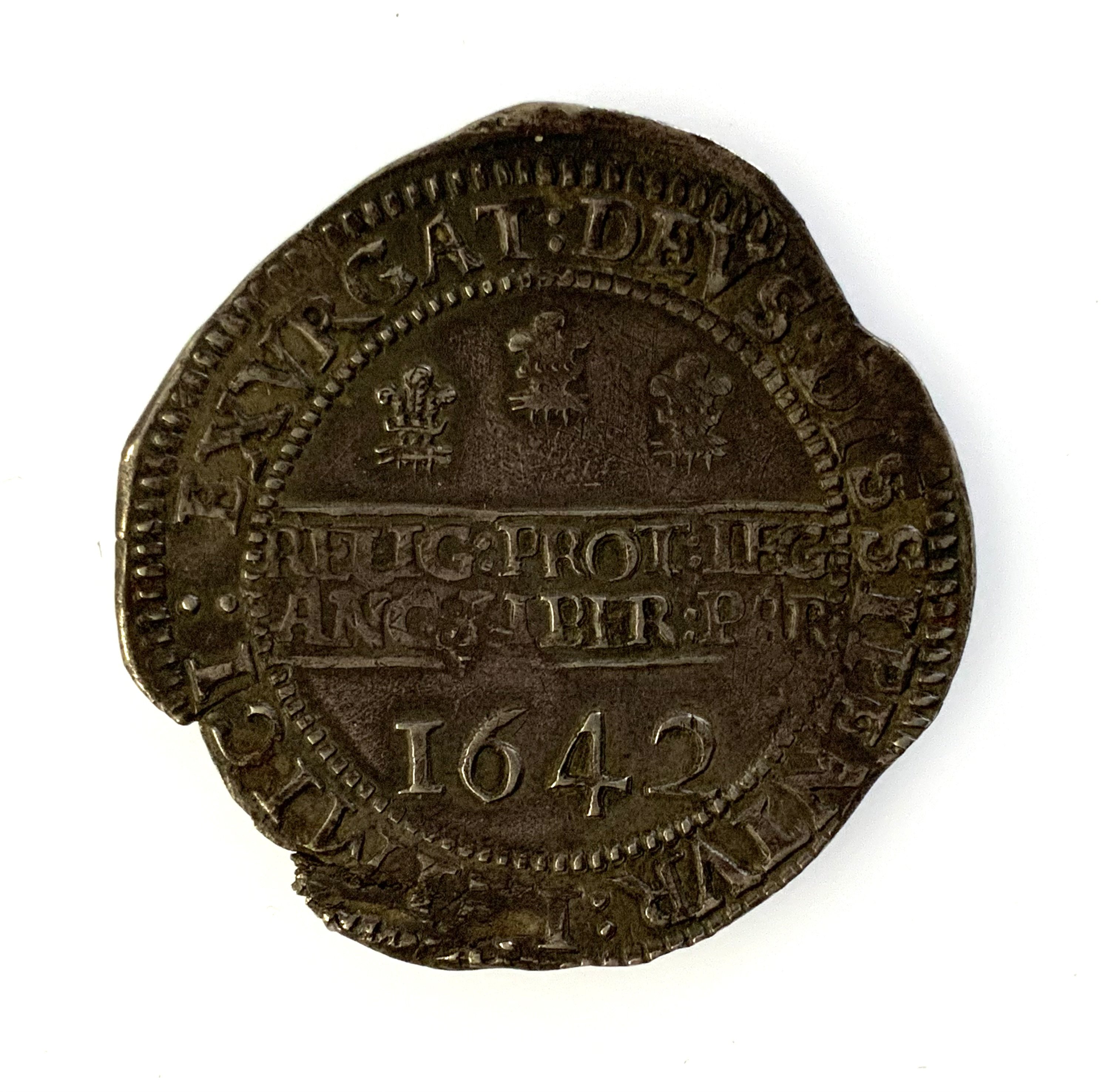 1642 Charles I Oxford Mint Halfcrown.Charles I (1625-1649), Oxford mint (1642-46), Halfcrown, 1642, mm. Oxford plume on obv . weight 14.72 grams Struck on a slightly irregular flan, but superb in grade with an exceptional horseman. Toned,ProvenanceDr E.C. Carter Collection,Glendining Auction, 18 June 1975, lot 126,Glendining Auction, 10 October 1989, lot 1256,Ex Lloyd Bennett 10/1989 - 200.00,Ex Alan Morris Collection,Ex Dr Hulett Collection,Ex Maurice Bull CollectionEx Martin Allen Collection, 5500 paid.