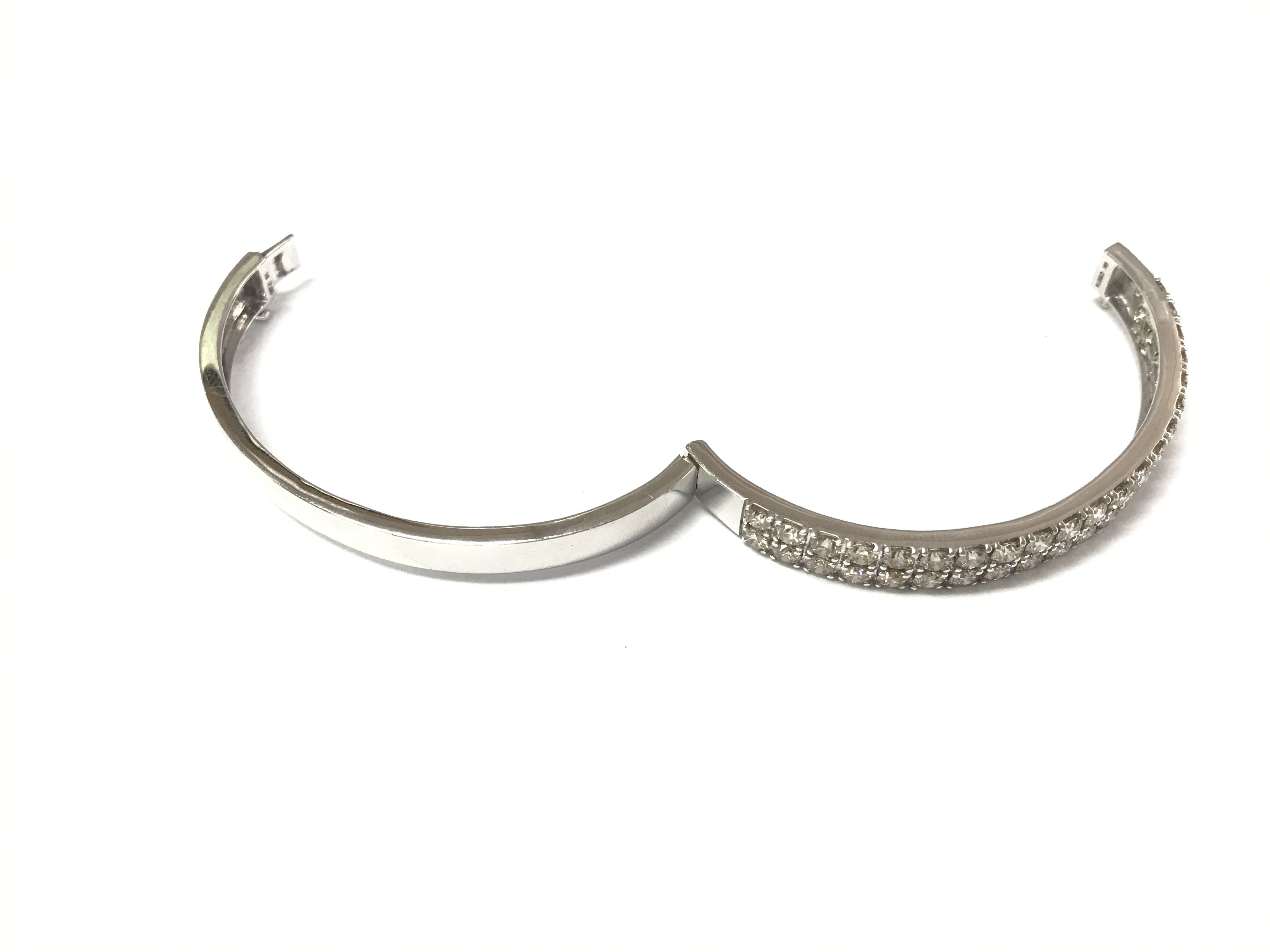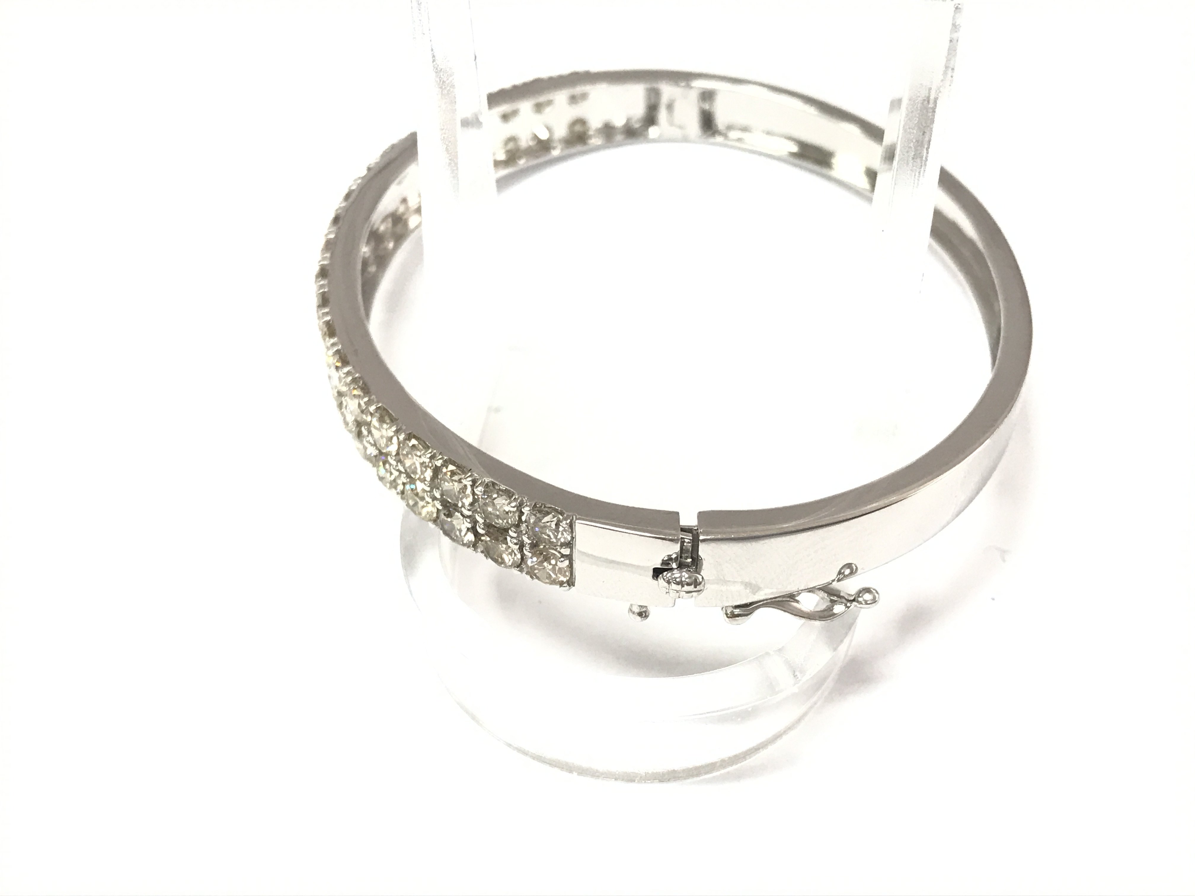 A 9ct white gold bangle set with two rows of diamonds. Diamonds approx 7ct and bangle has diameter of 6.5cm
