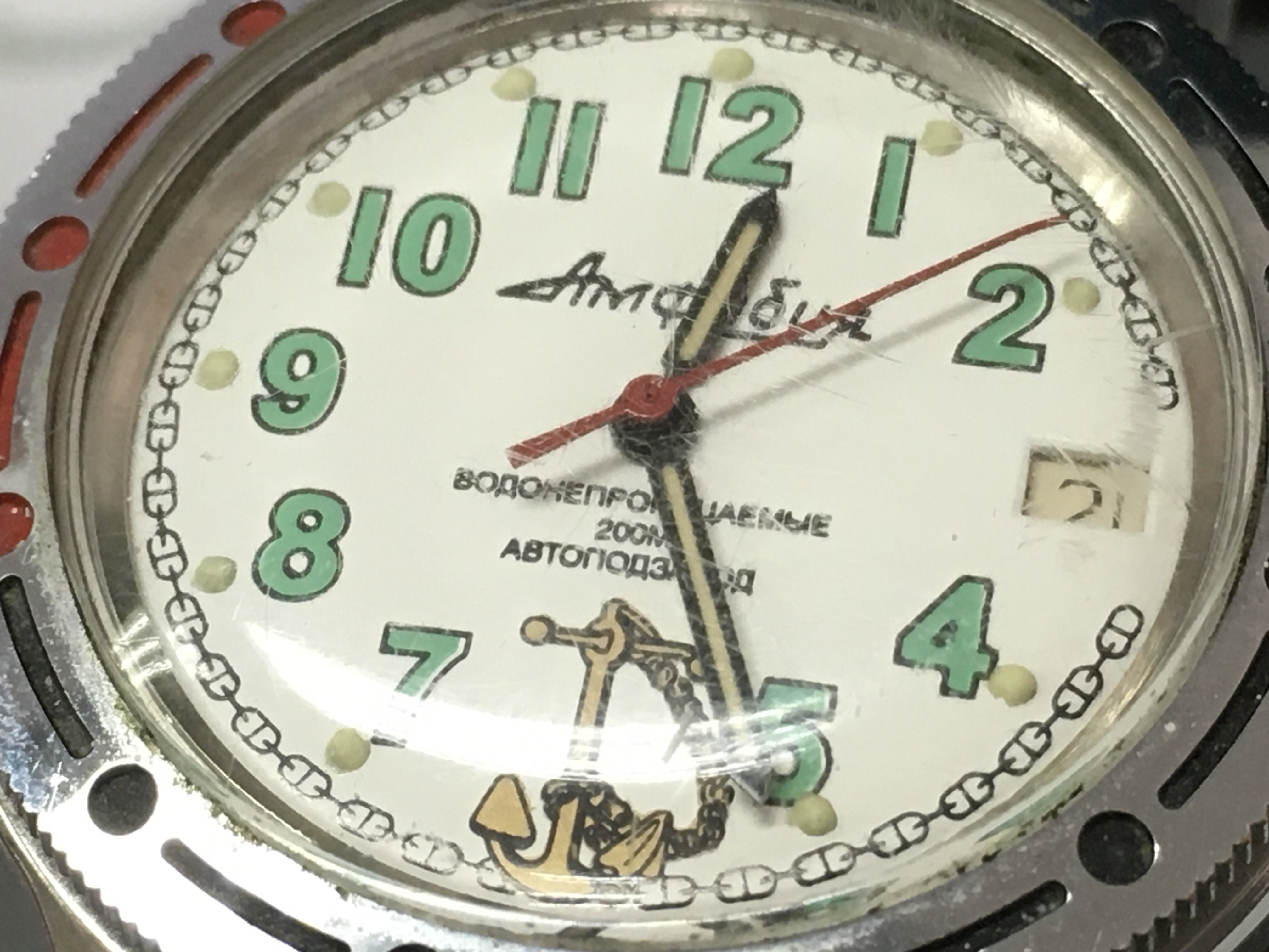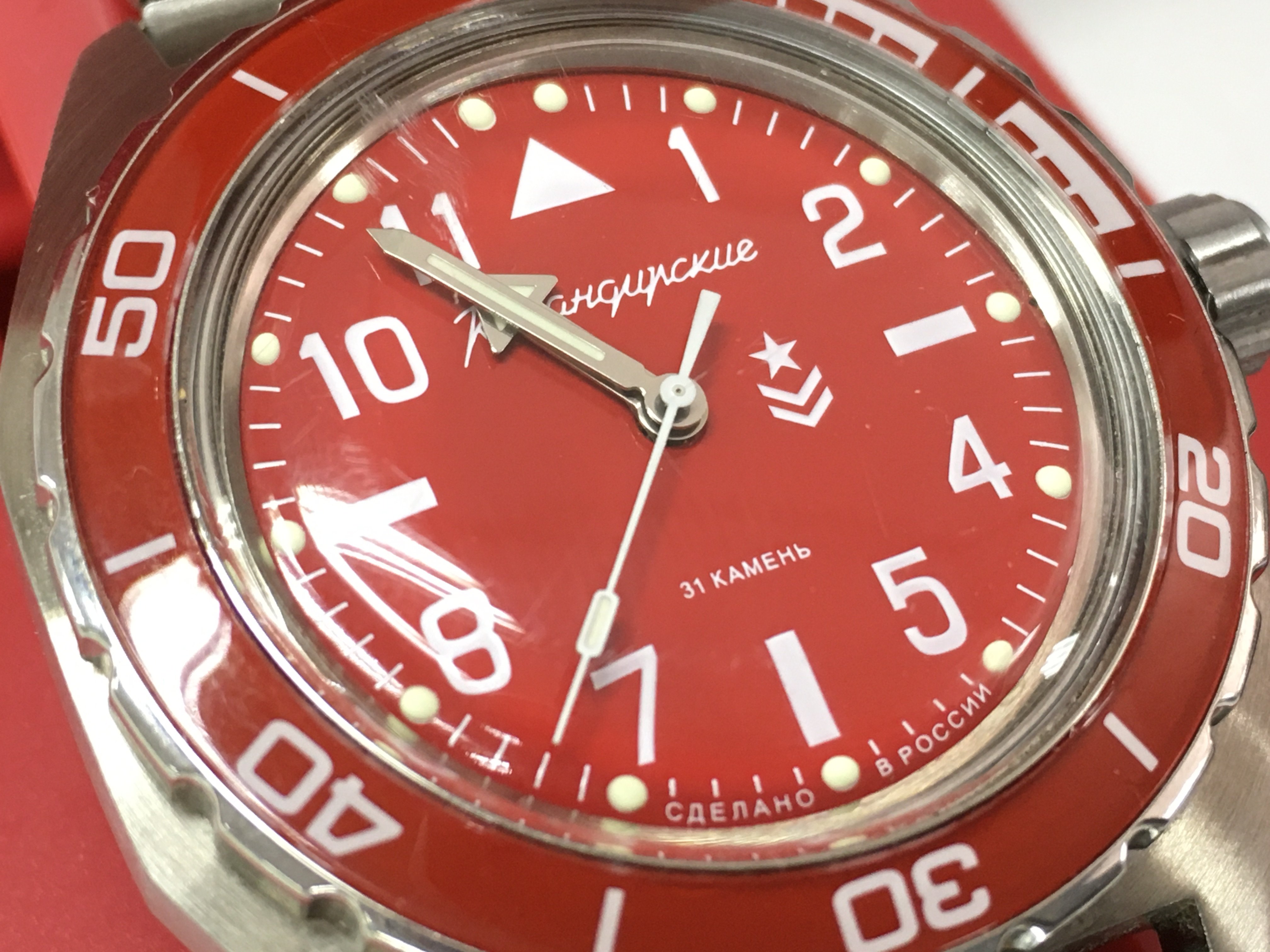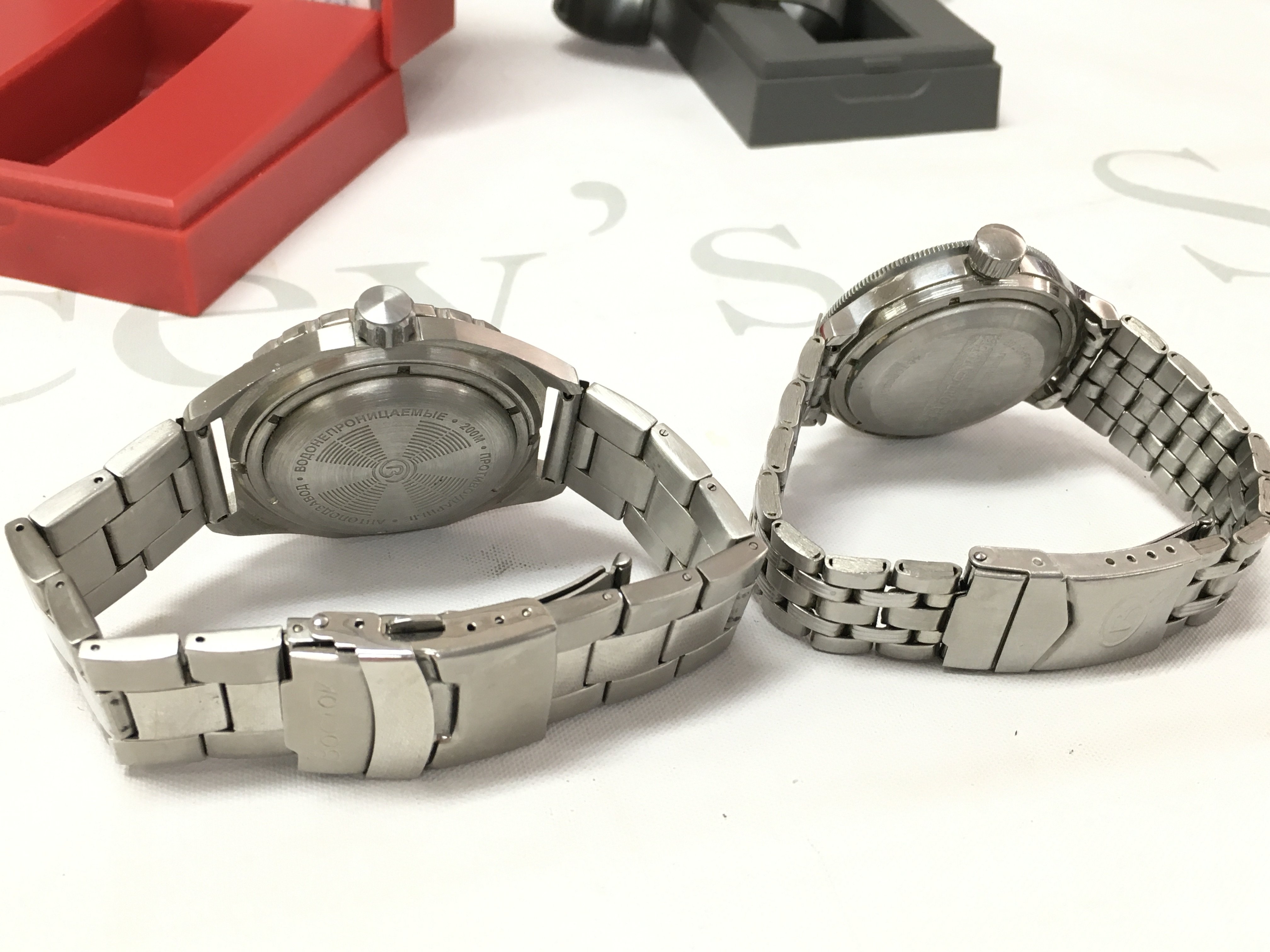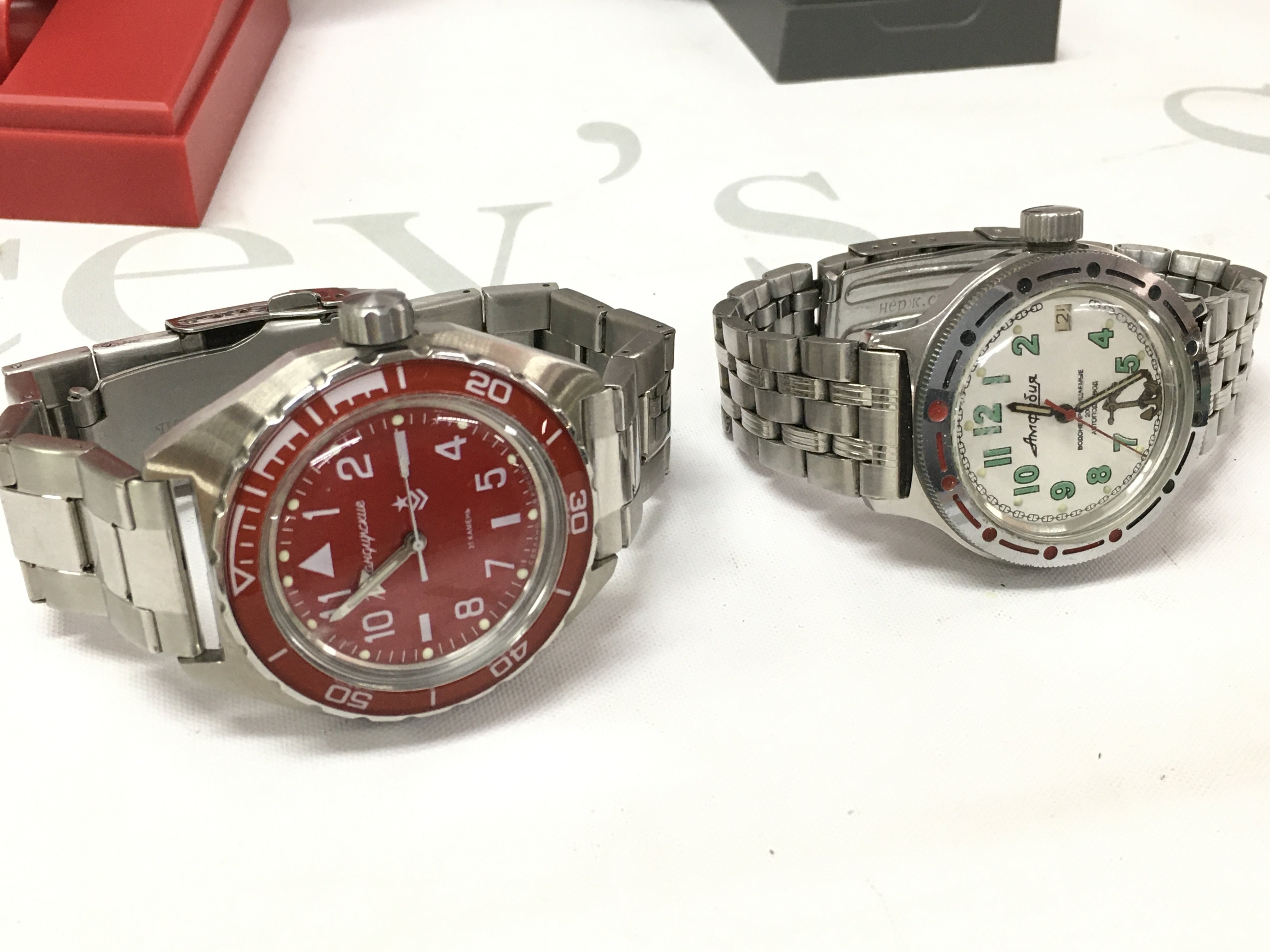 Boxed Vostok Sea Captain Amphibian Automatic Self-Winding Russian Diver Watch and a red Vostok Komandirskie Mechanical Automatic watch. Postage category B