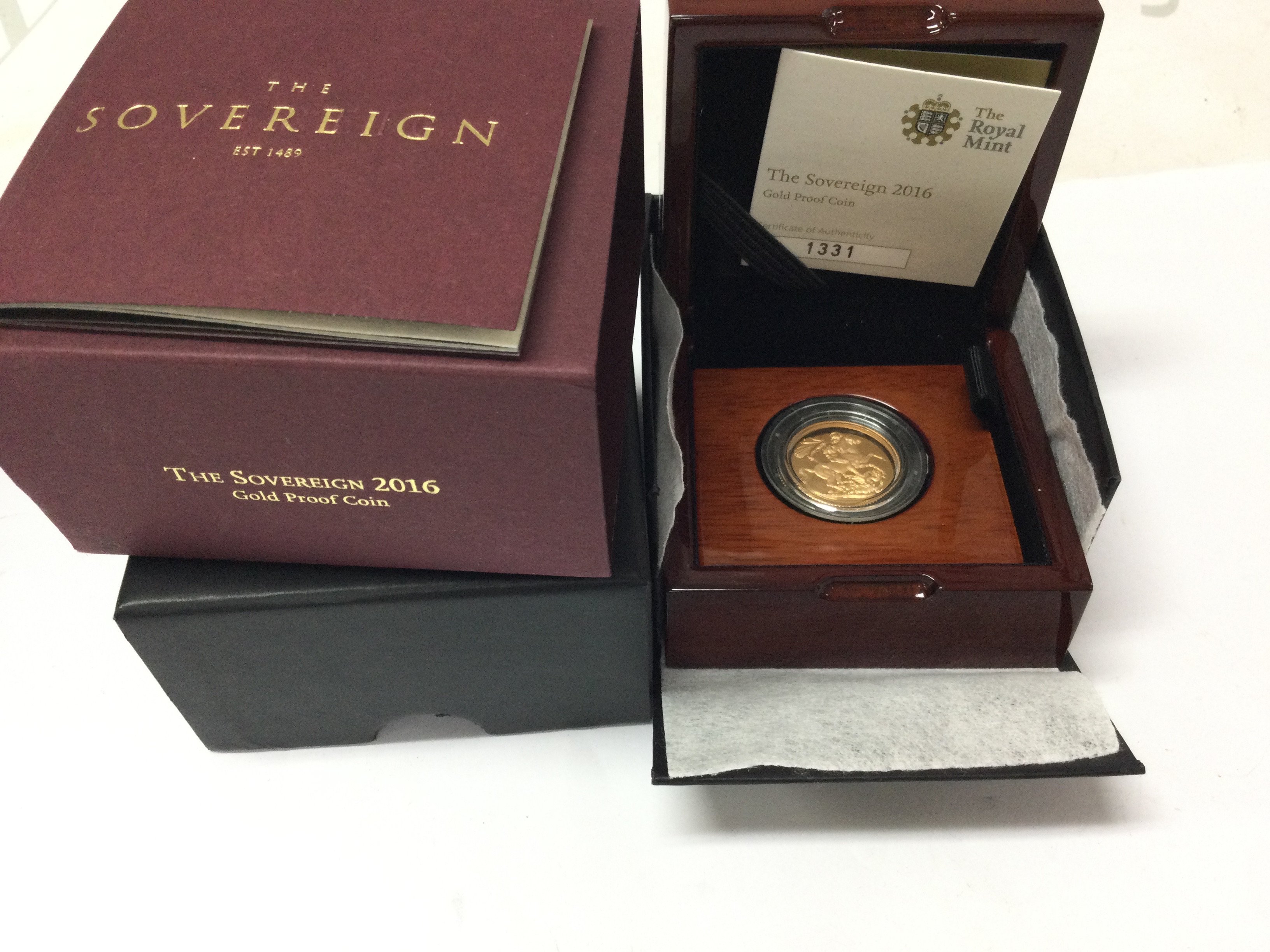 A 2016 gold proof sovereign with box and COA.Postage B