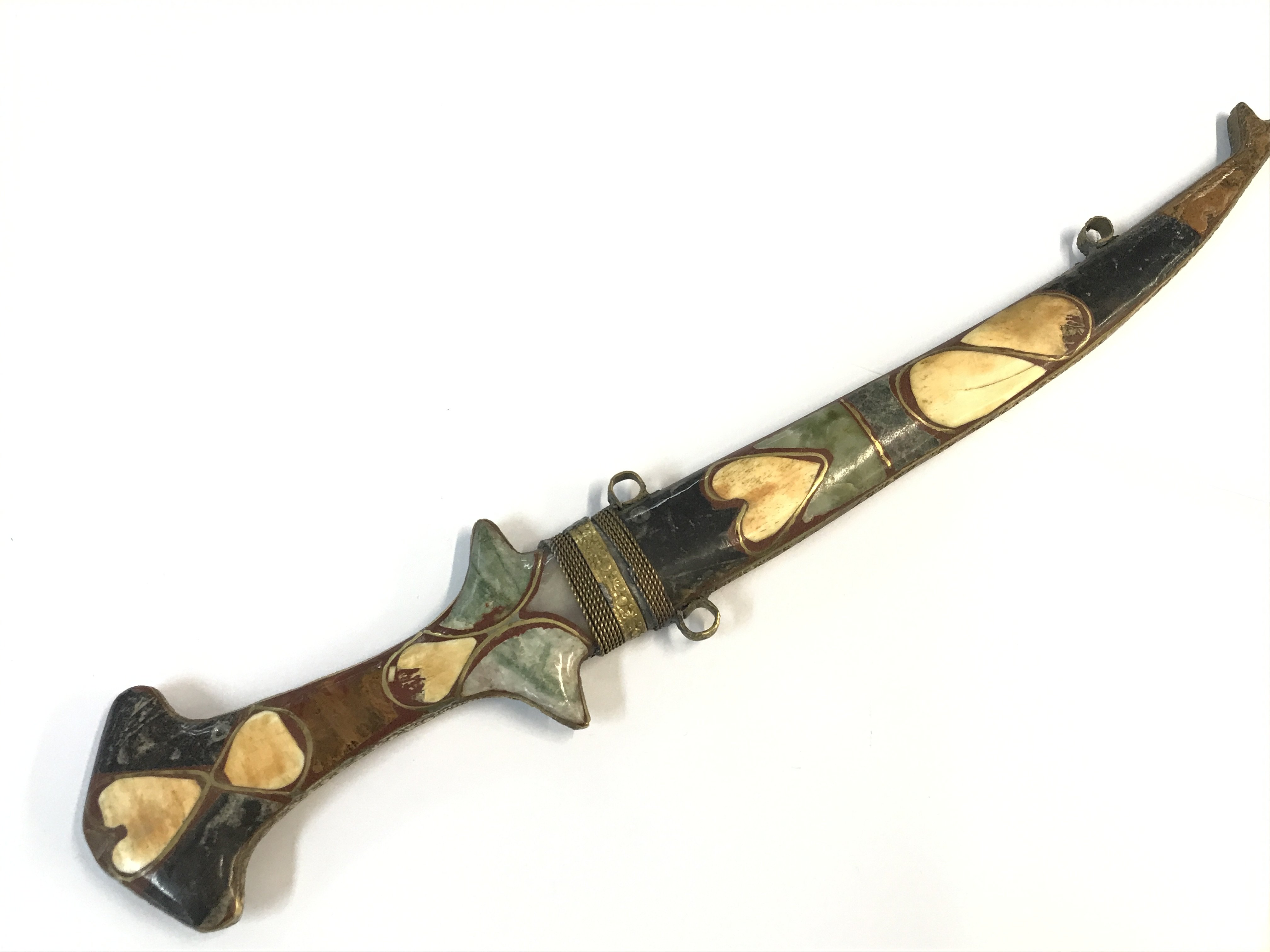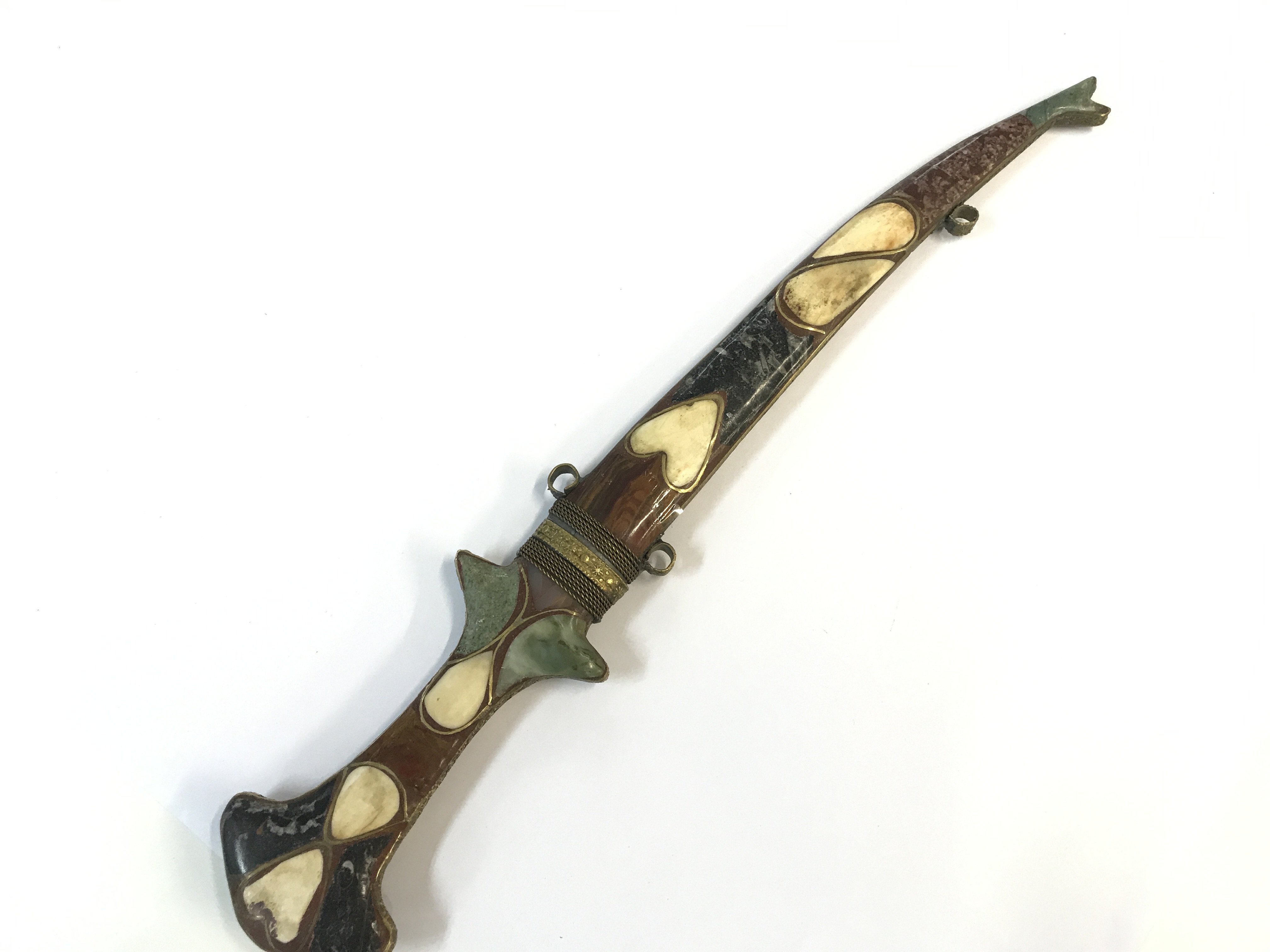 A Vintage Traditional Hand made Moroccan Berber dagger set with polished stone. 43cm approximately.