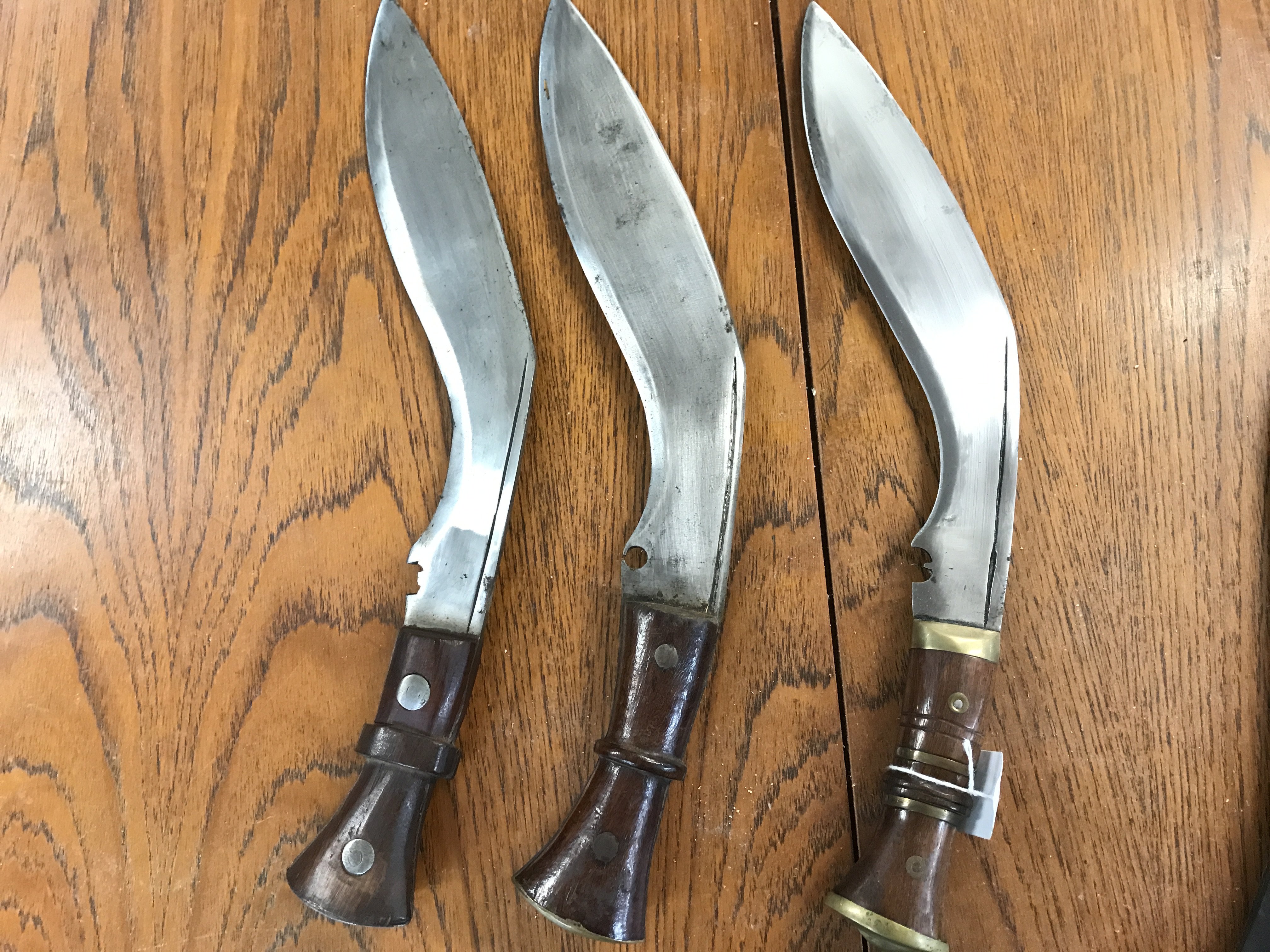 Early 20th Century Kukri Knives ,The Traditional Nepalese knife, With brass set wood handles