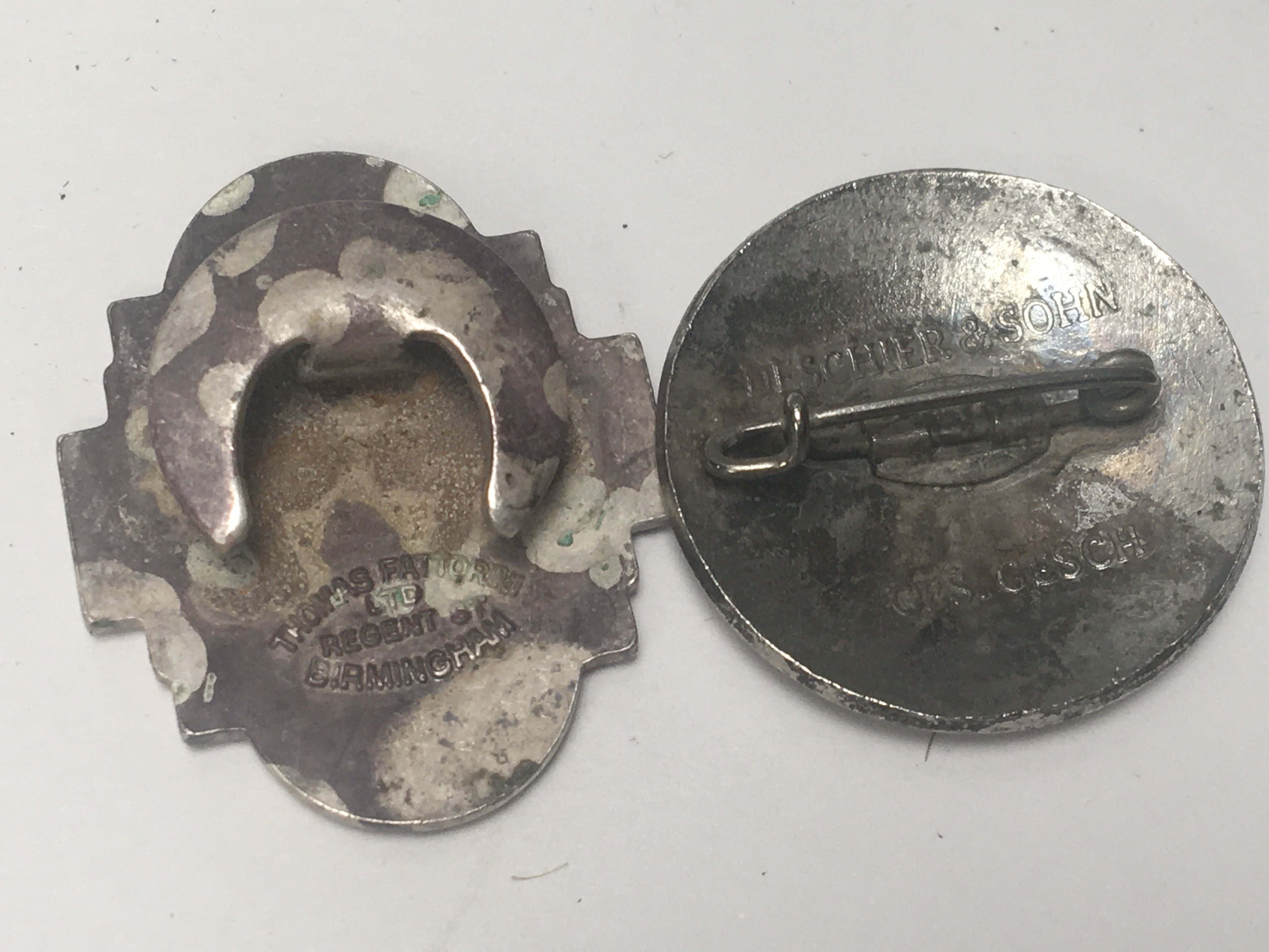A German 1936 Anglo German Youth Movement badge Capel Morris the reverse with makers stamp Thomas Fattorini and an unusual German friendship badge with American flag makers stamp Deschier & Sohn (2)