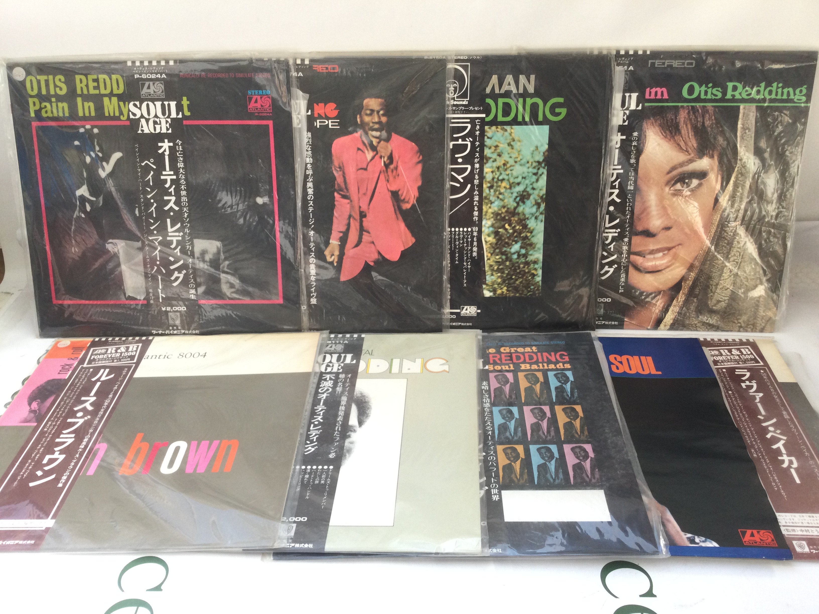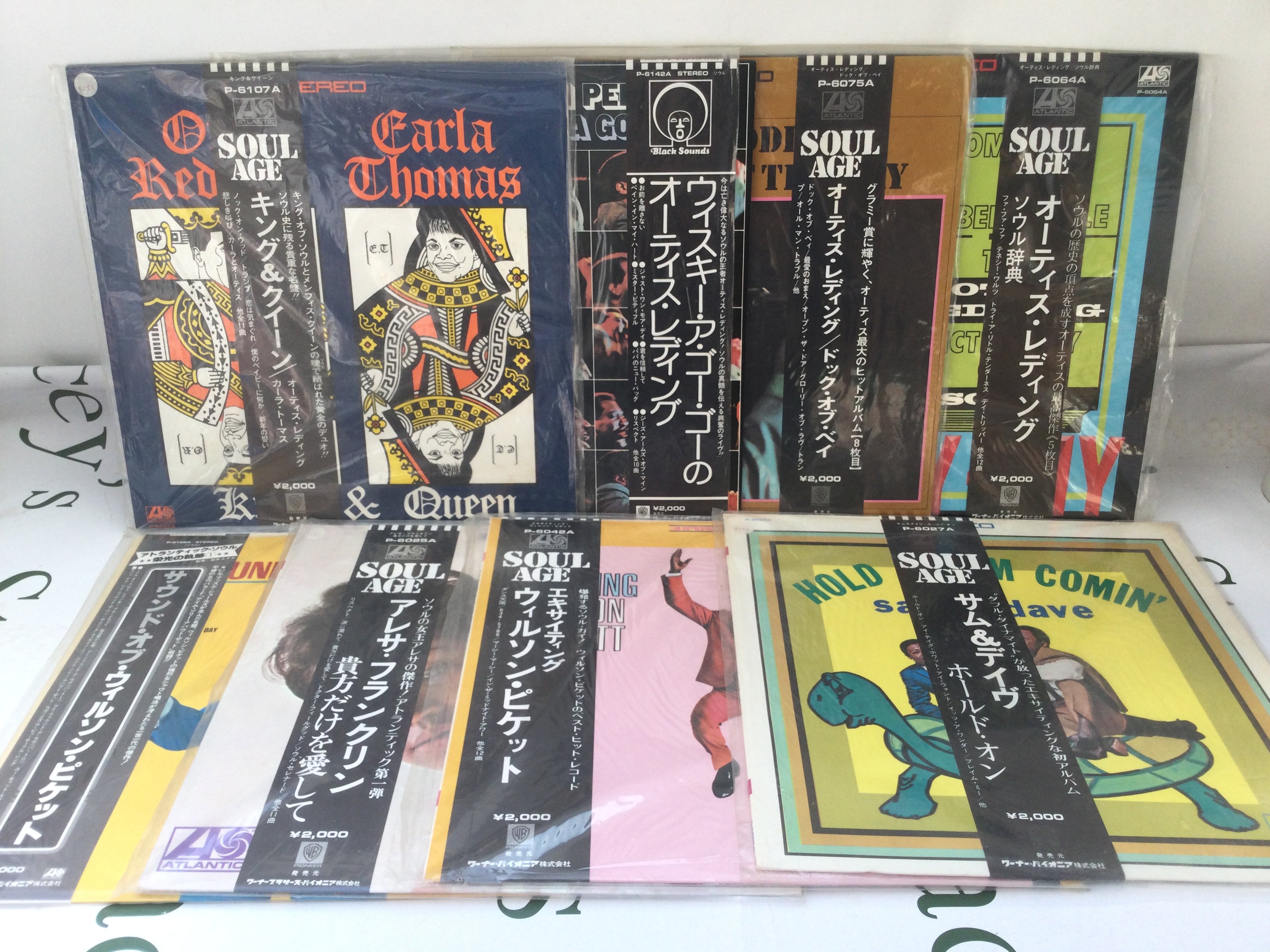 Two bags containing seventeen Japanese import pressings of soul LPs by various artists including Otis Redding, Sam & Dave, Aretha Franklin and others.