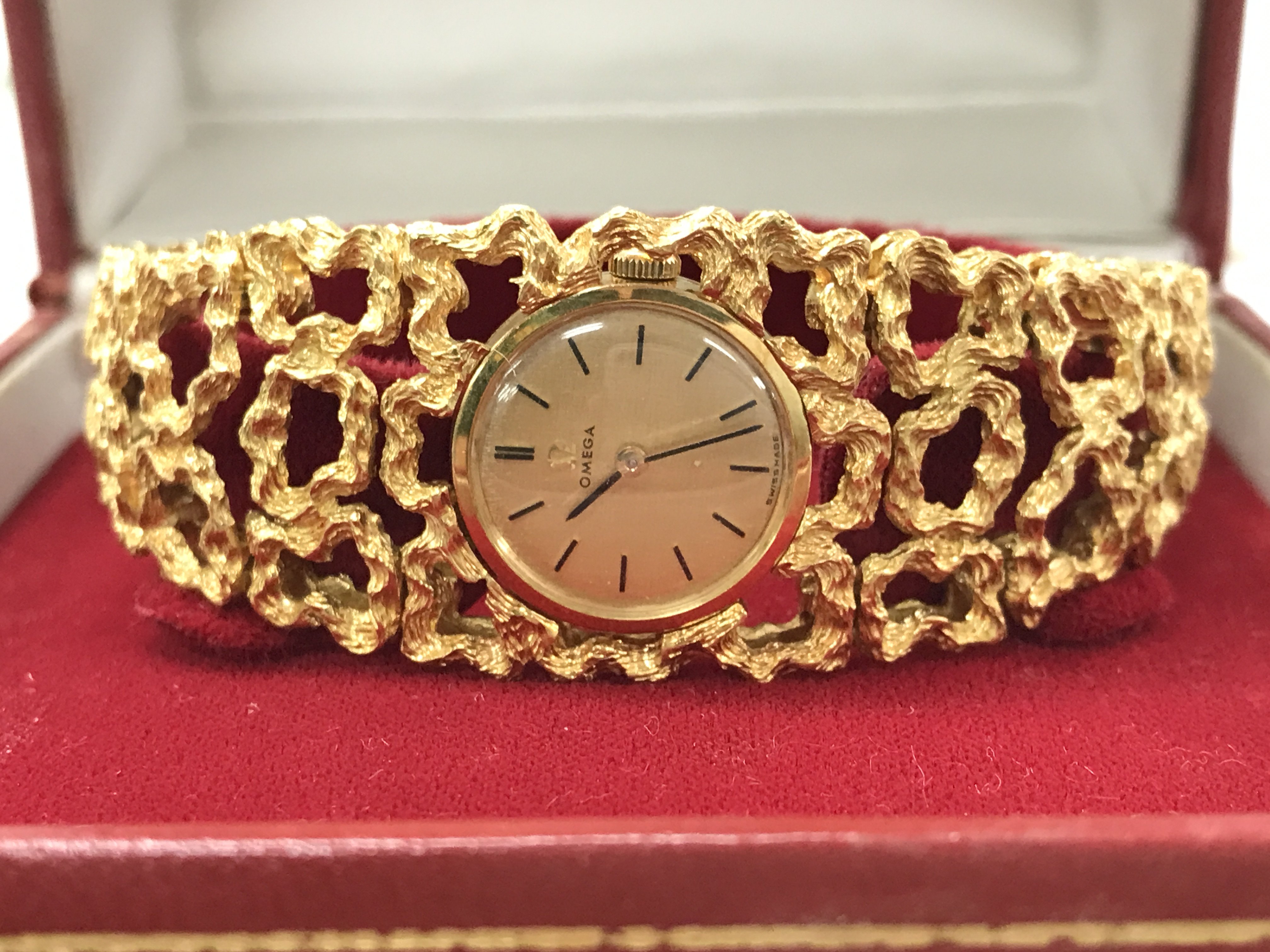 A boxed Omega 18ct gold ladies watch, with paperwork. 53.9g total weight. Postage category A