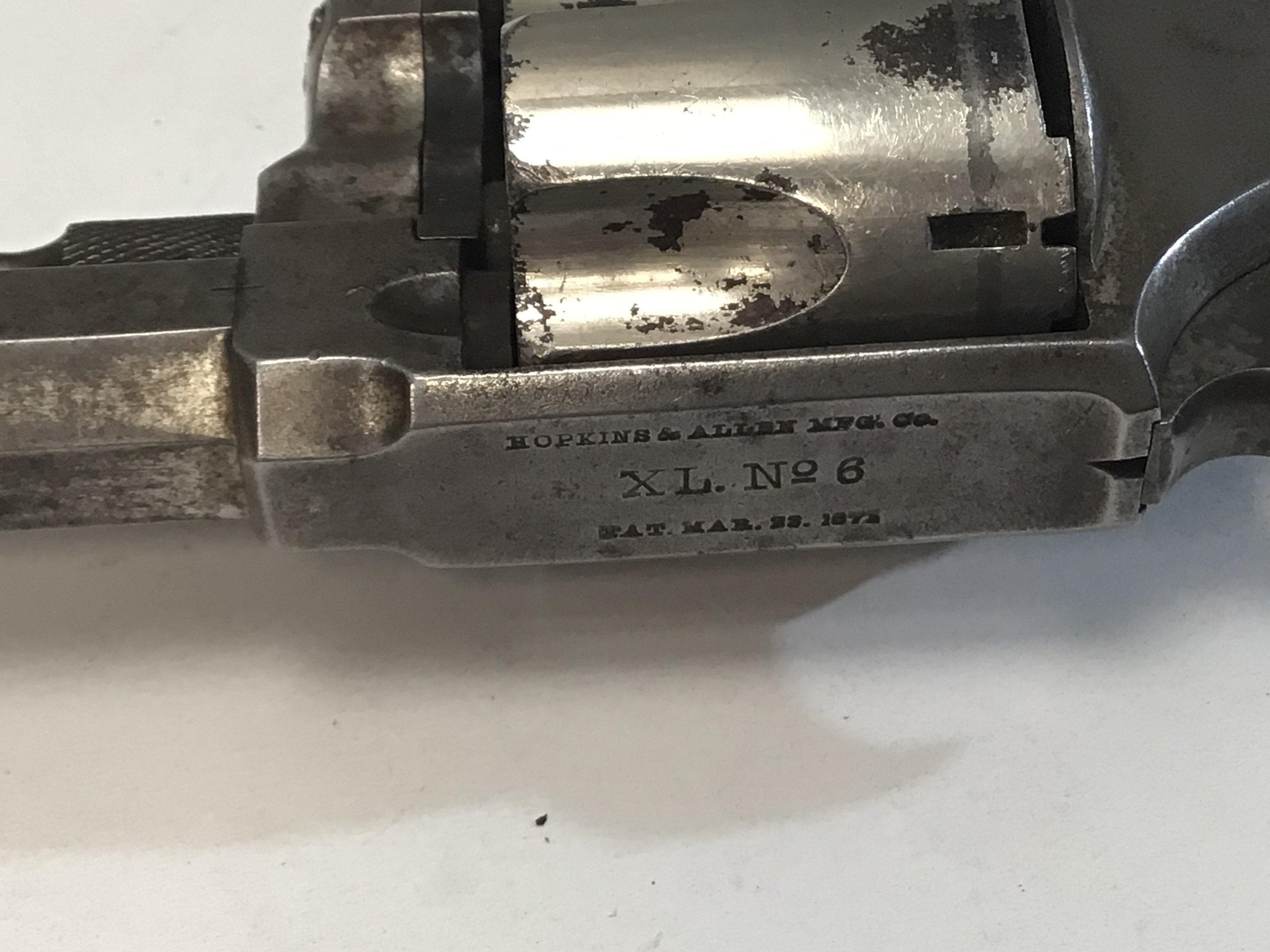 A 19th century five shot pistol maker Hopkins & Allan XL No 6 Pat Mar 23 1872 This is an obsolete caliber pistol.