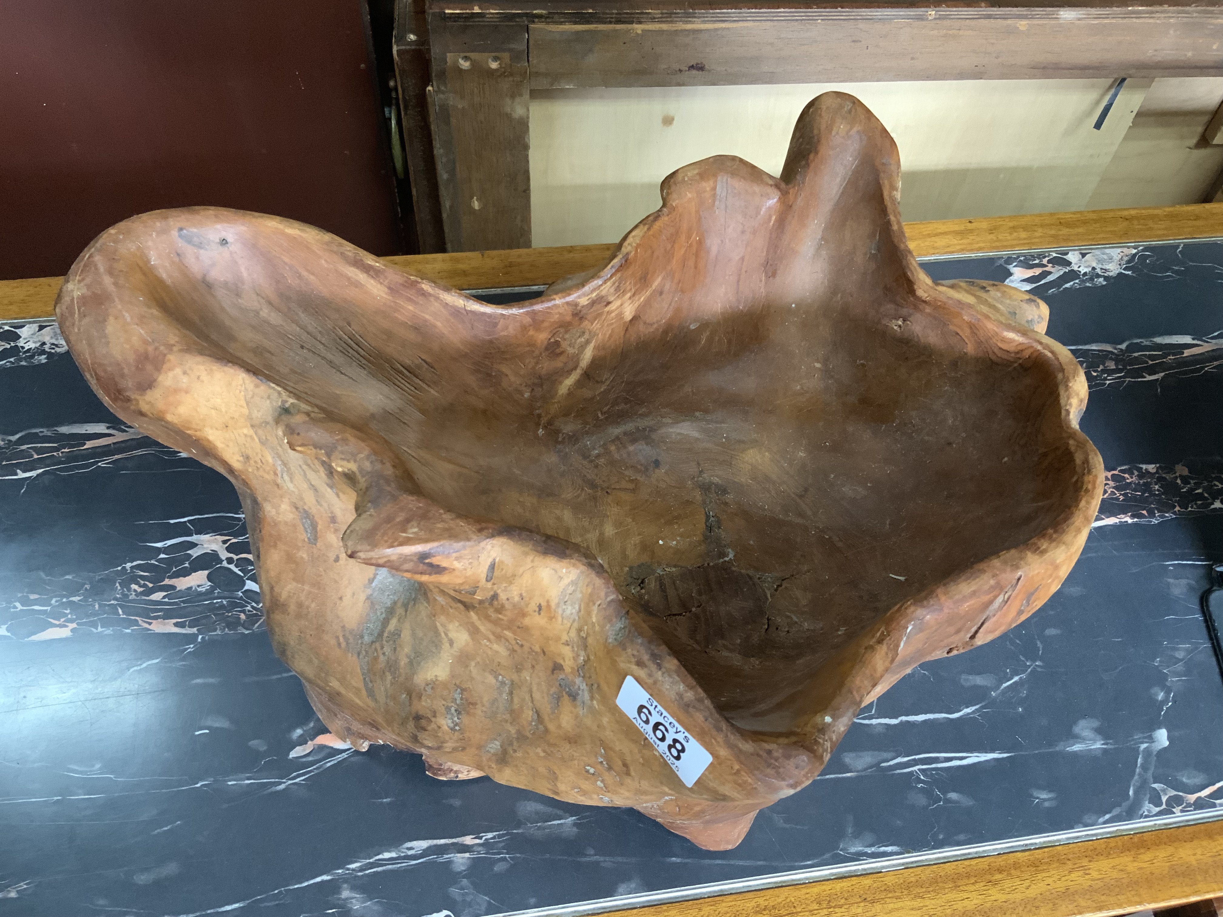 A large root wood carved bowl. 45cm x 26cm
