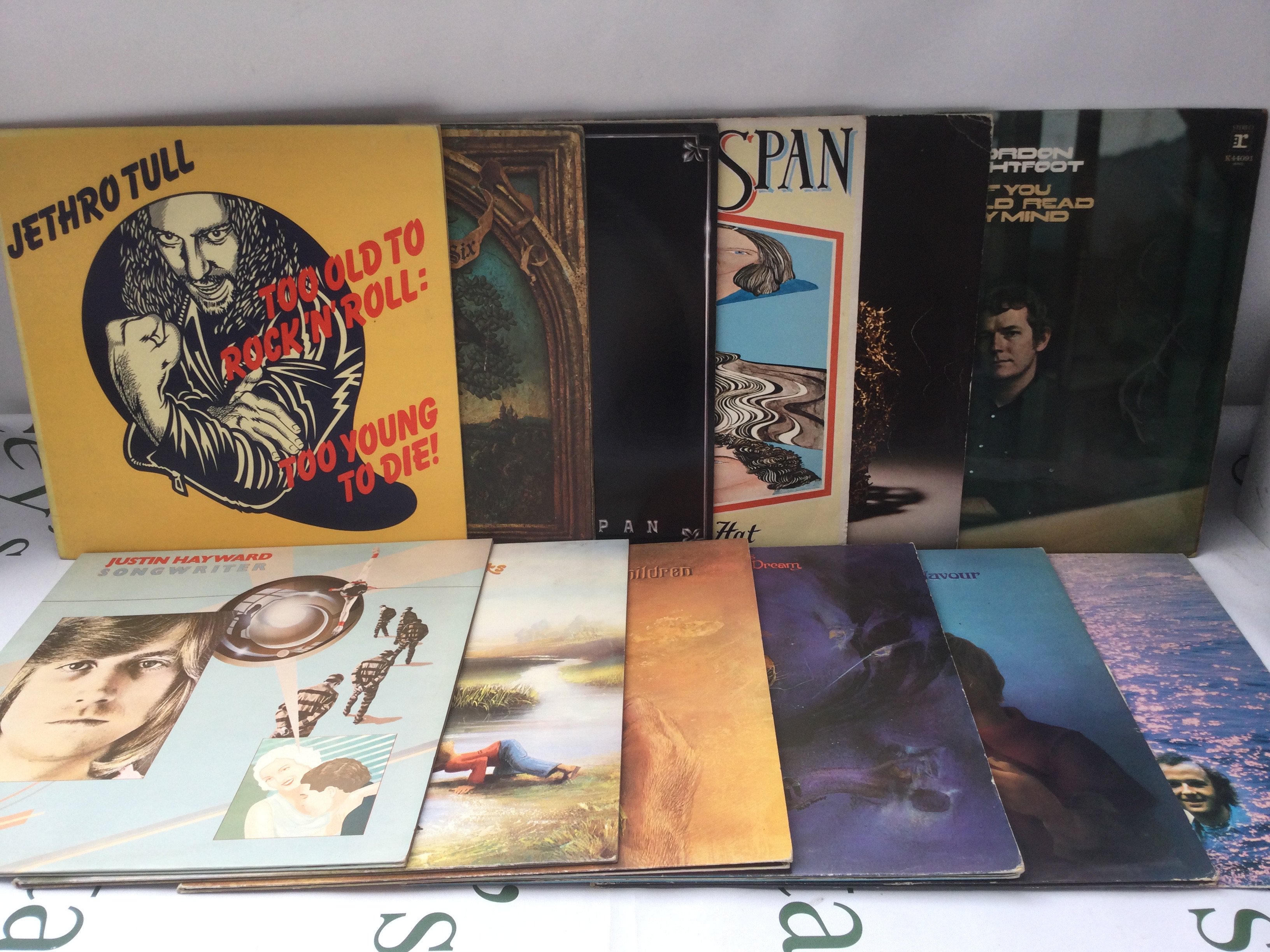 Two bags containing 24 prog, psych and folk rock LPs by various artists including Jethro Tull, Dada, Johnny Winter and others.