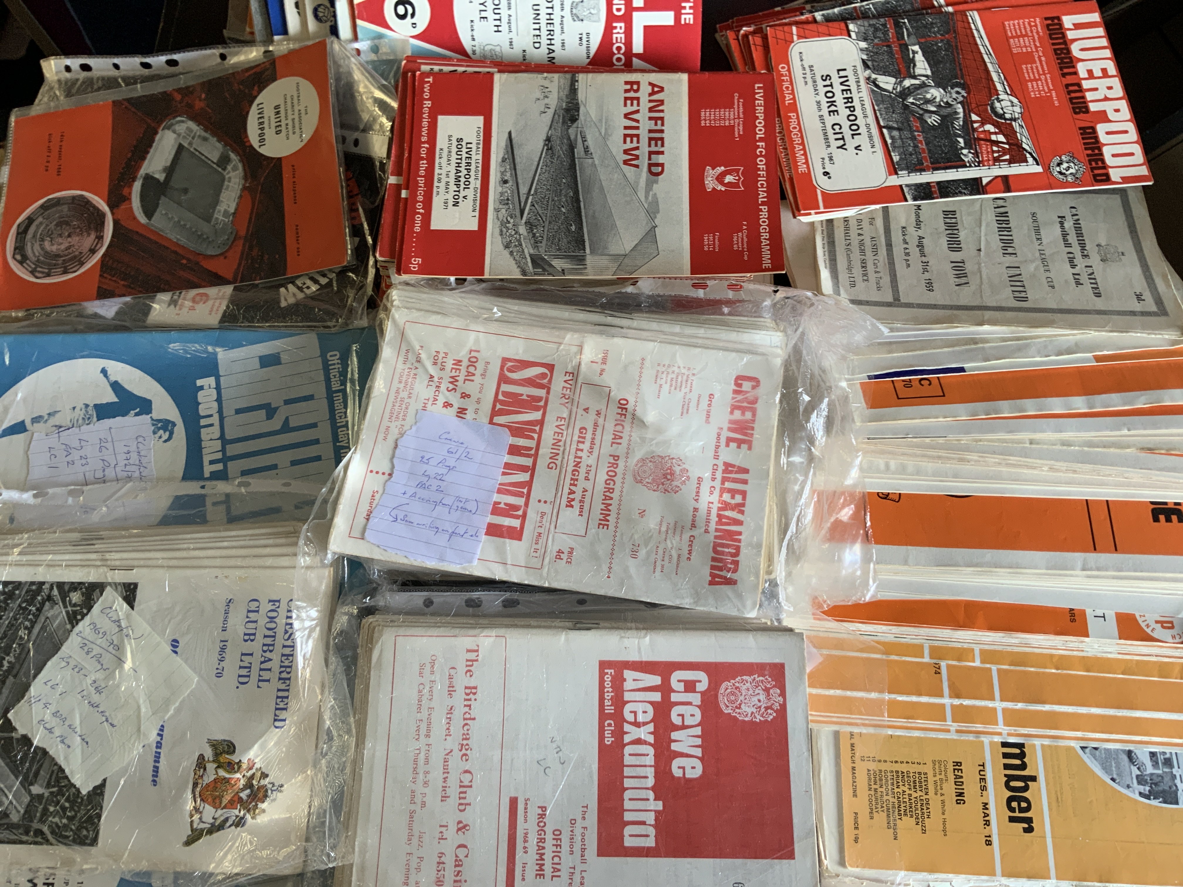 1960s Football Programmes: Wide range with good selection of Crewe and Liverpool with a set of Manchester United homes from 65/66 including the Charity Shield and a set of Crewe homes from 61/62. Over 500 from the 60s plus some early 70s Cambridge United and Liverpool. Instructions to sell. (est 650)