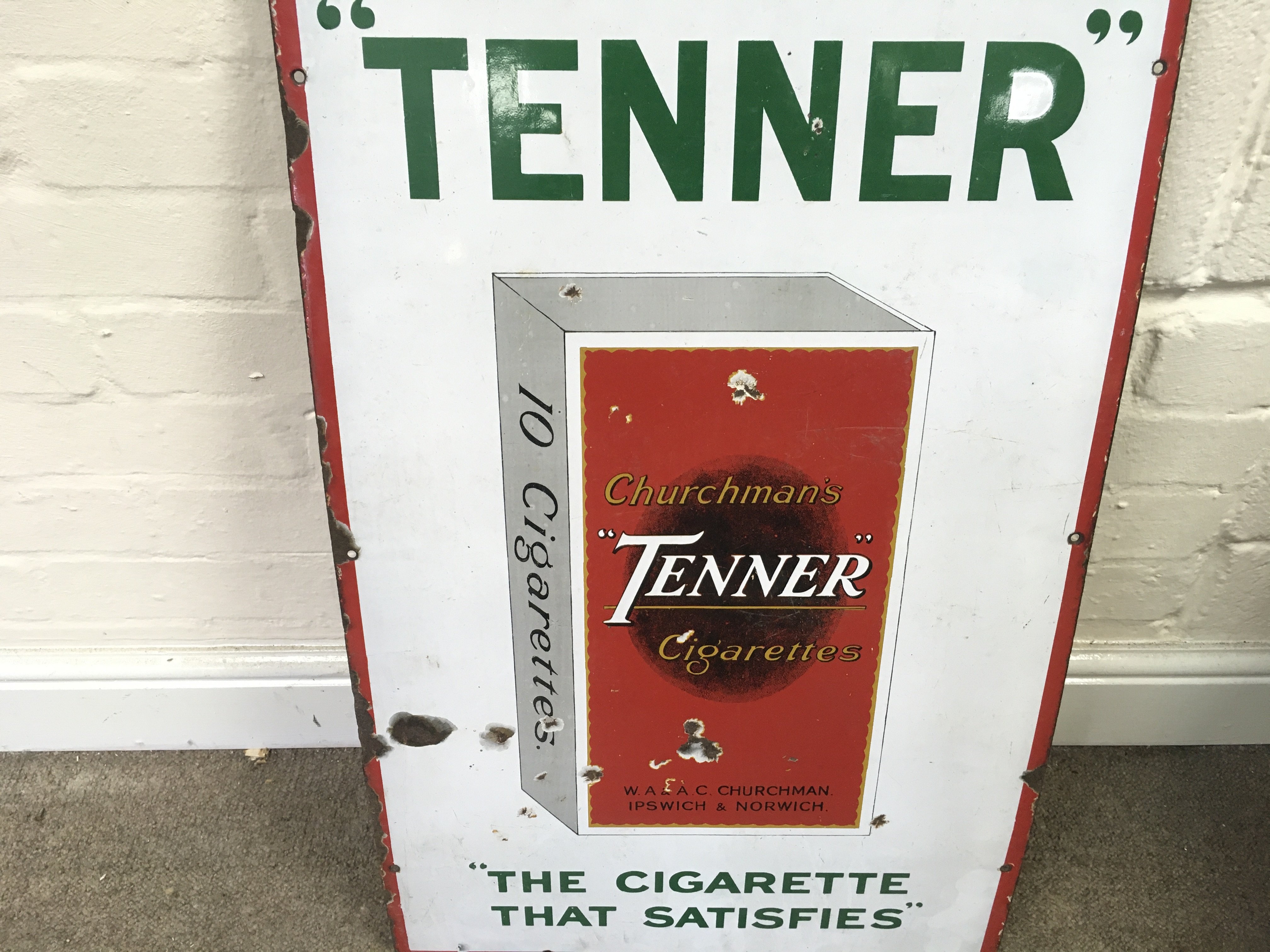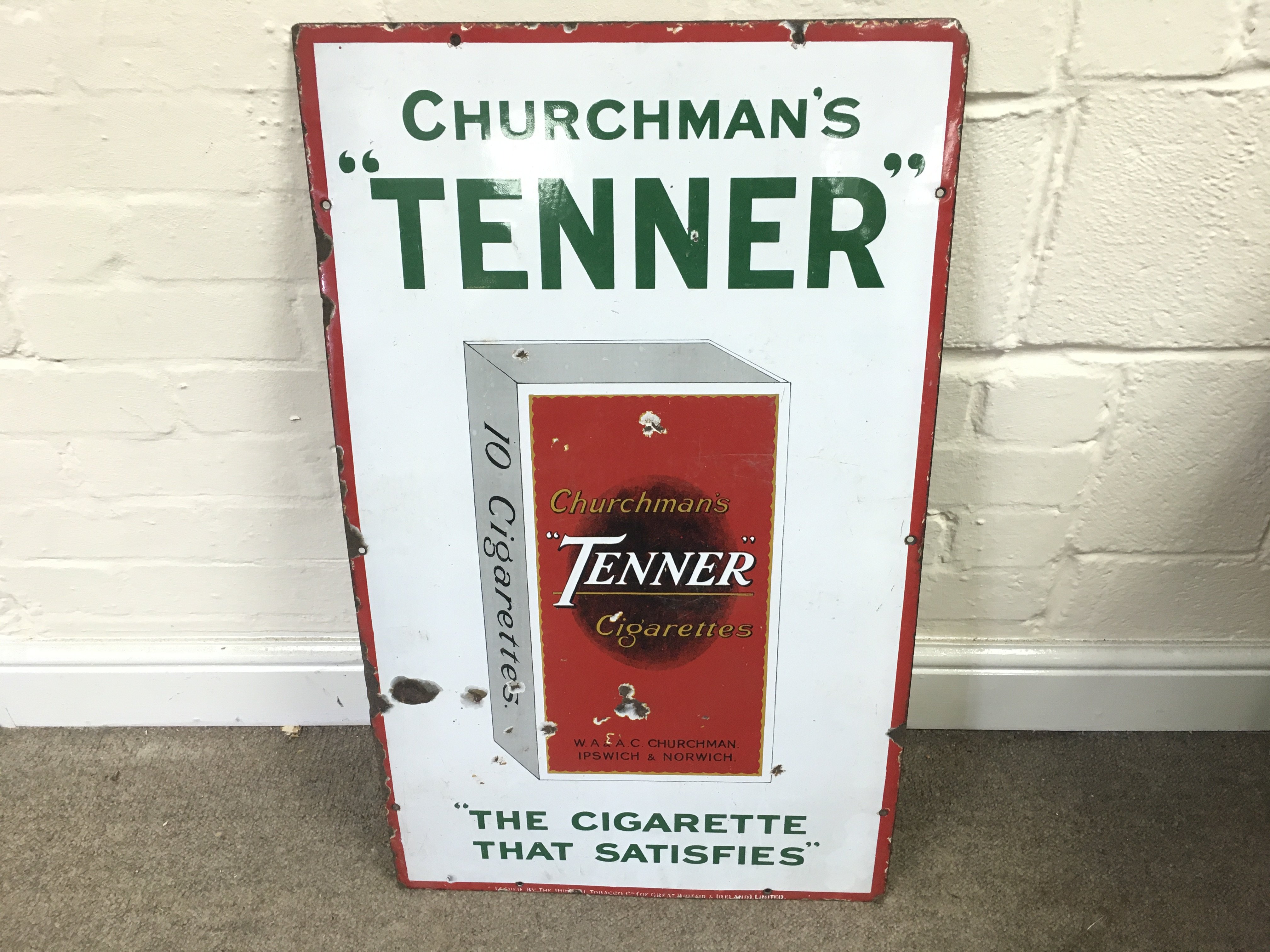 Churchman's Tenner Cigarettes Enamel sign. 18 x 30 inches approximately