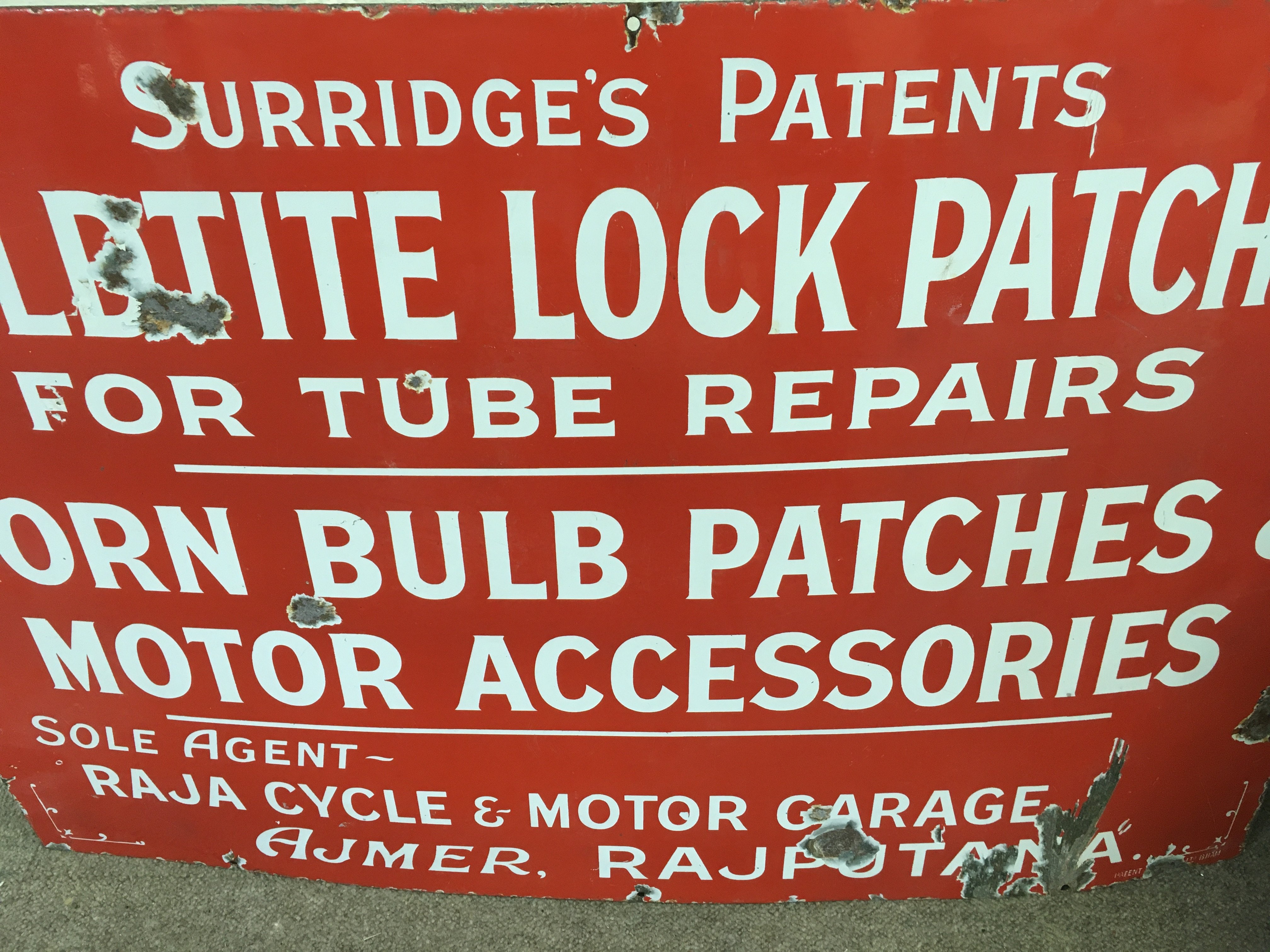 A vintage enamel sign for surridges patents. 36 x 24 inches approximately