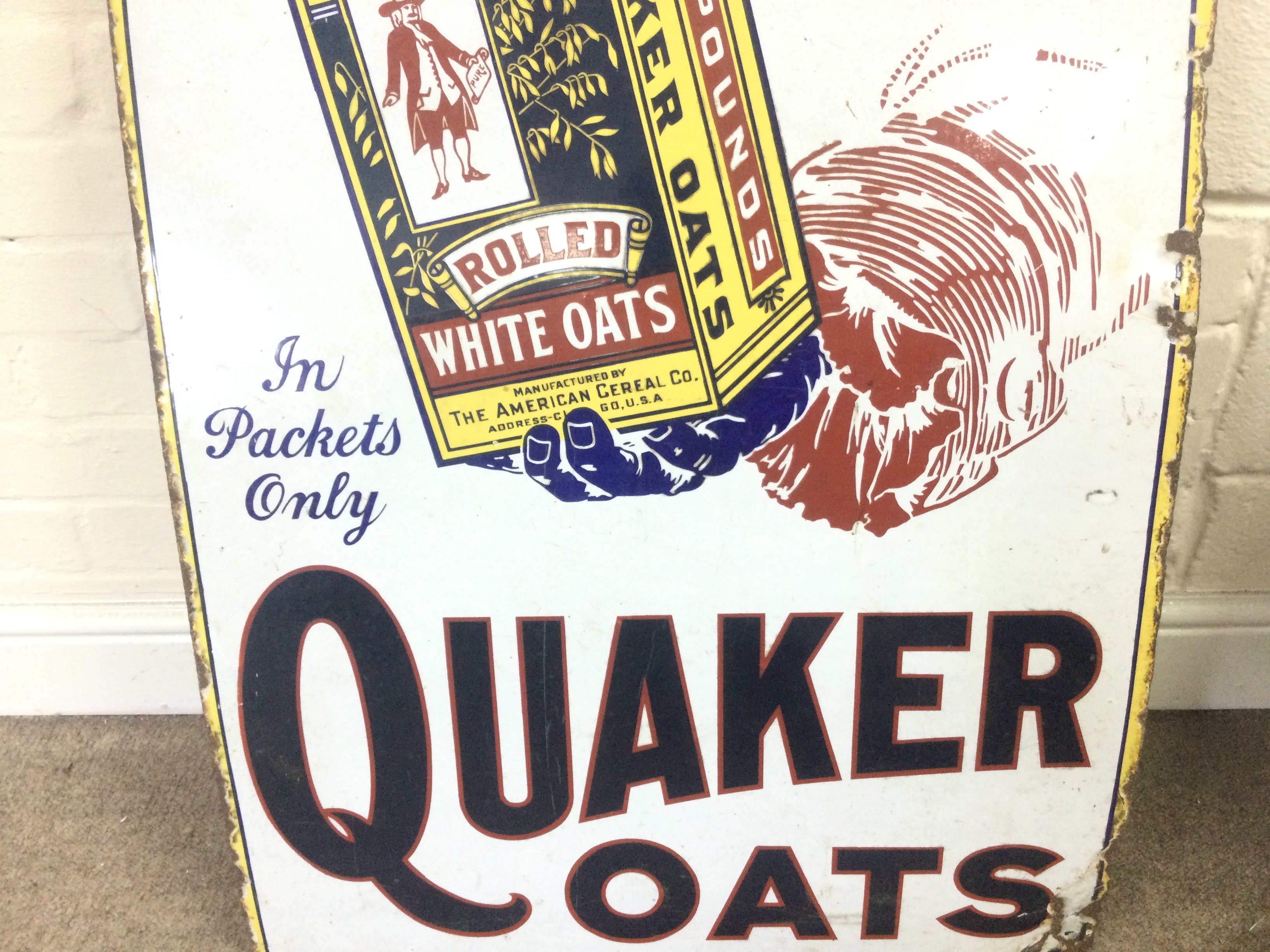 A 'Quaker Oats' enamel advertising sign 24 x 34 inches approximately