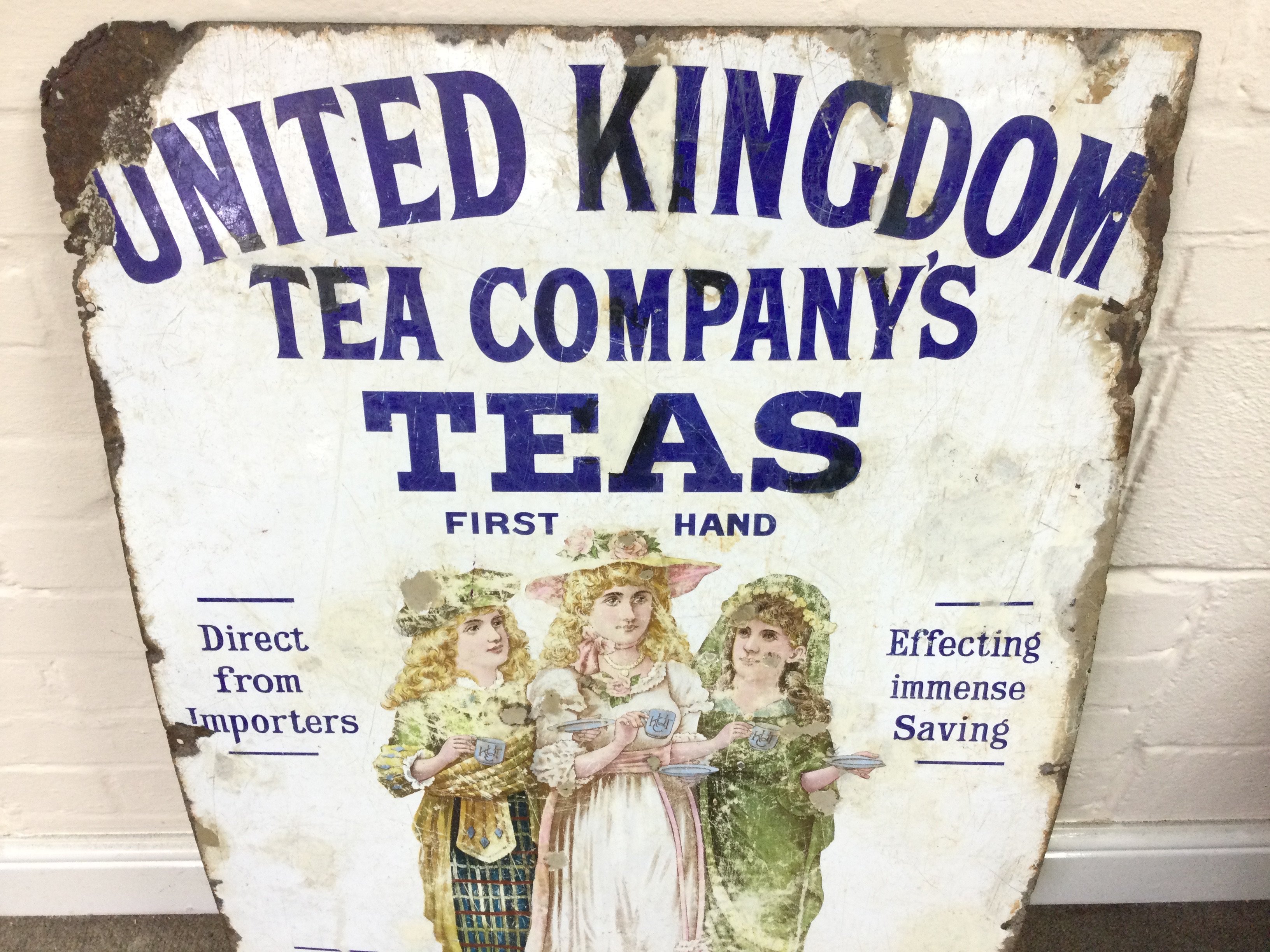 UNITED KINGDOM TEA COMPANYS DELICIOUS TEAS ENAMEL SIGN 24 x 36 inches approximately