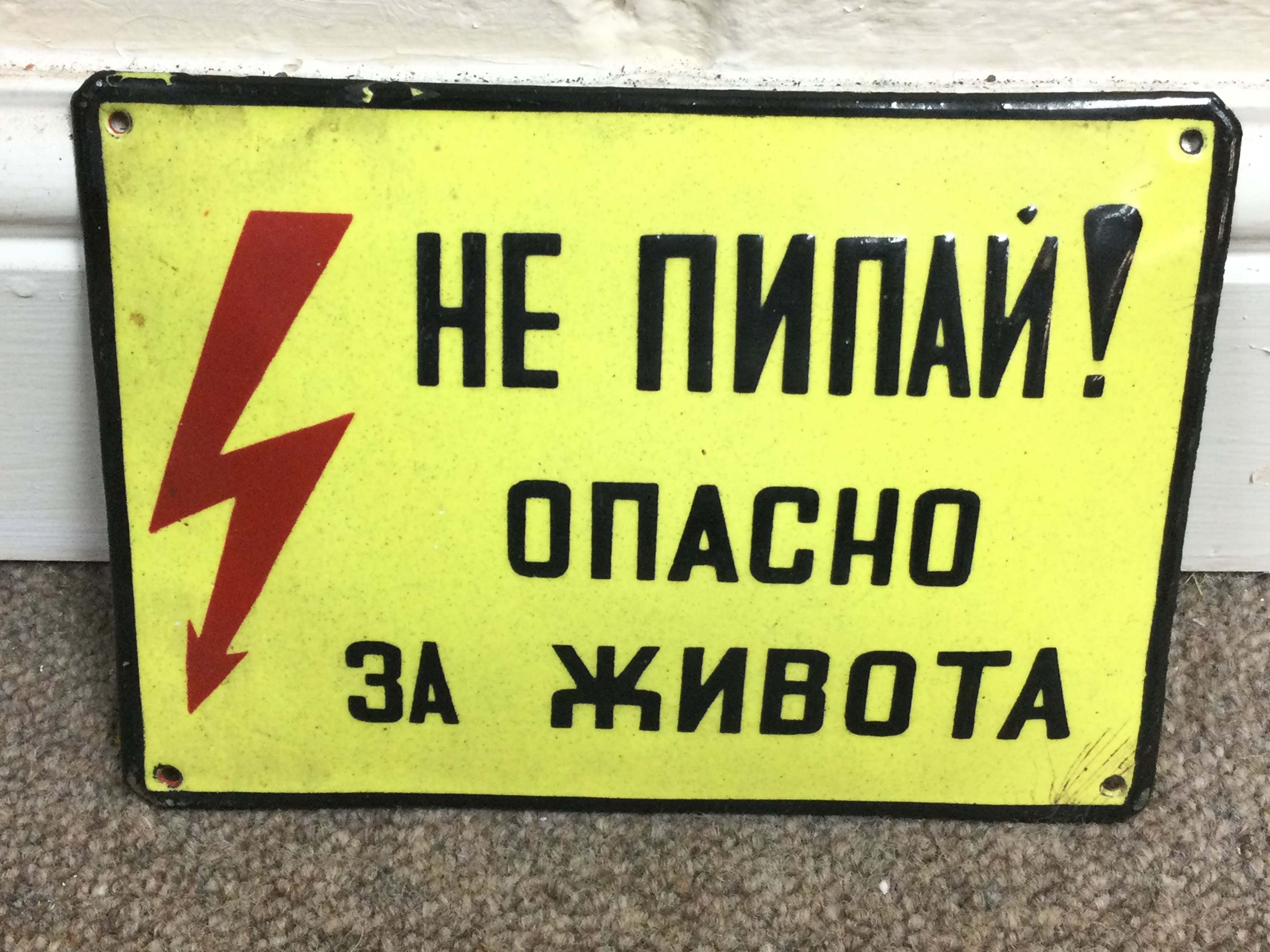 Antique Enamel Street WARNING Sign Road Plaque Street Plate High Voltage Danger 8 x 6 inches