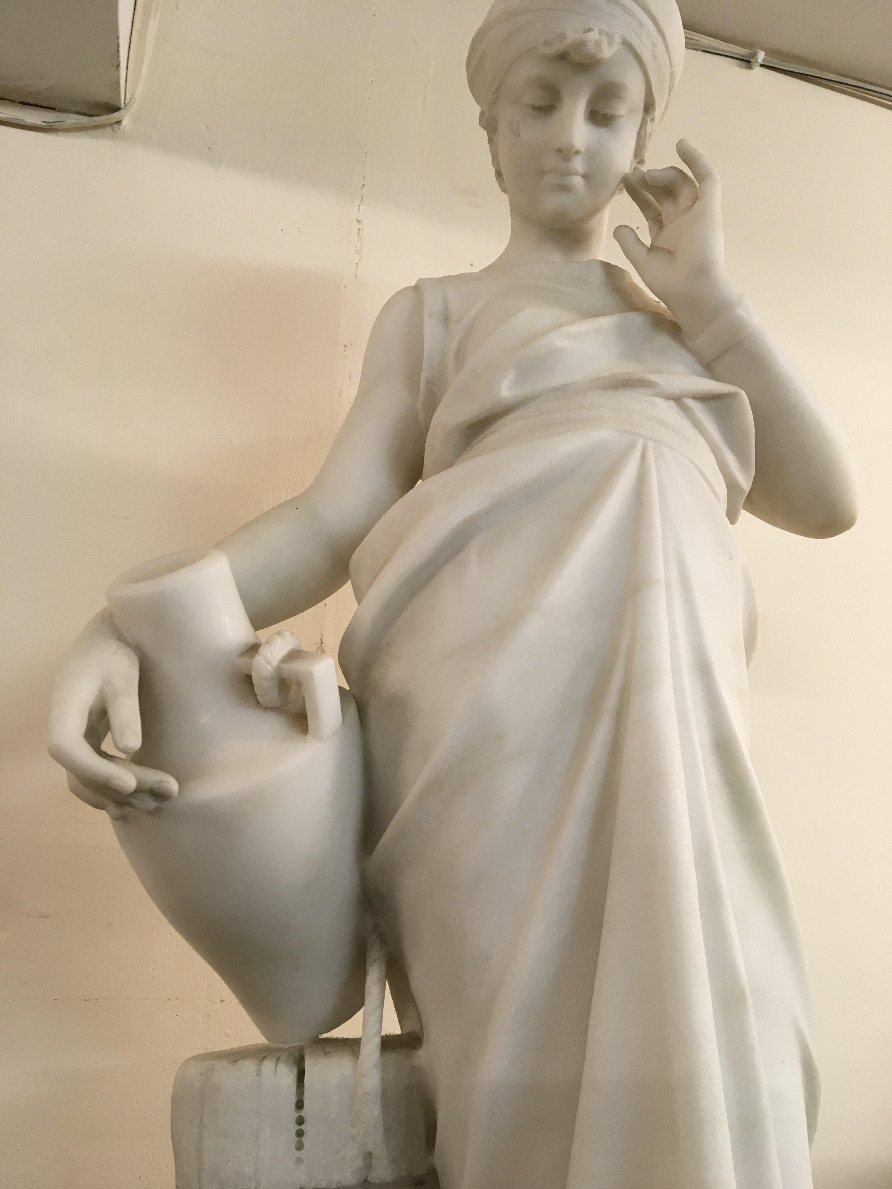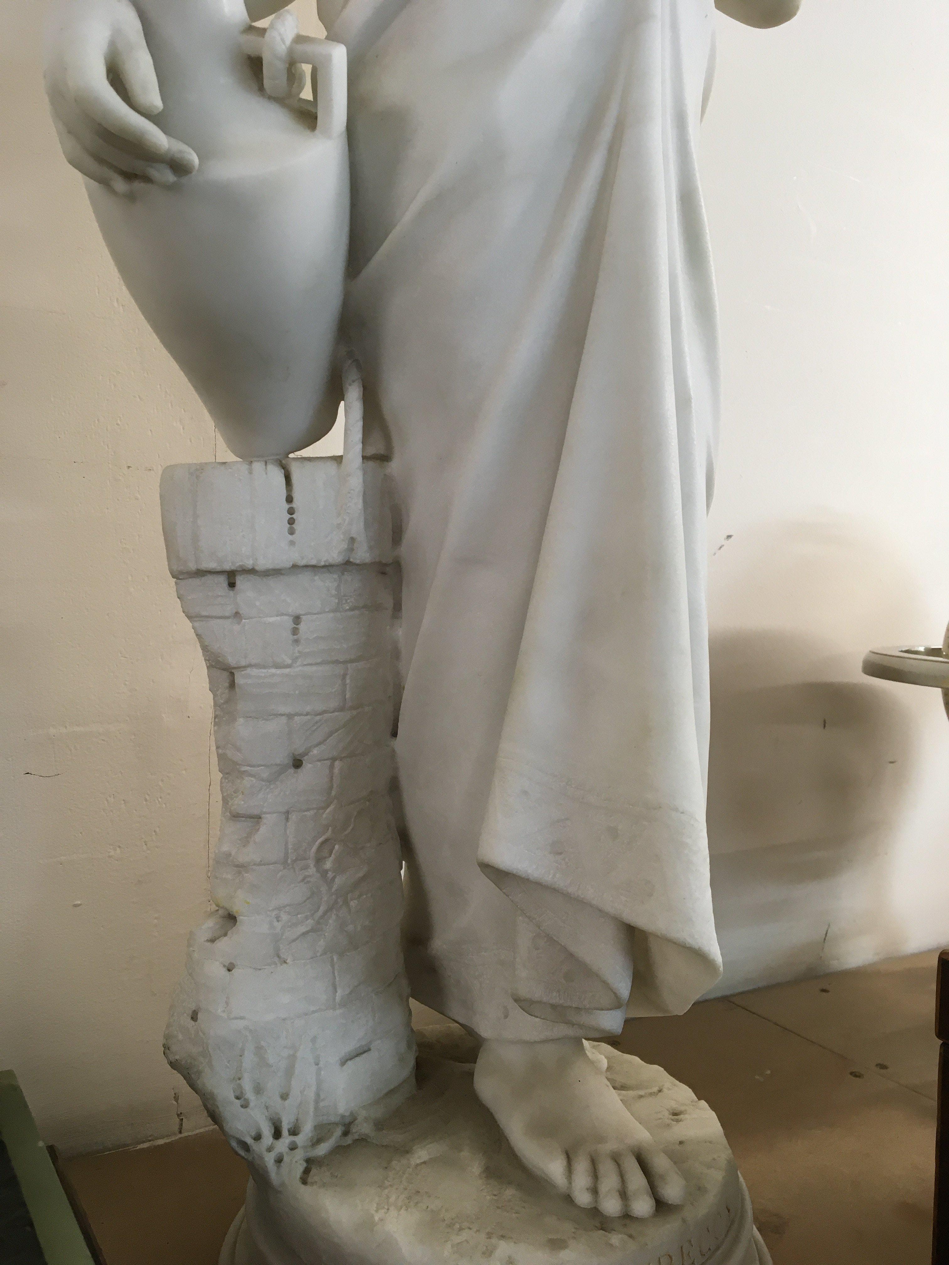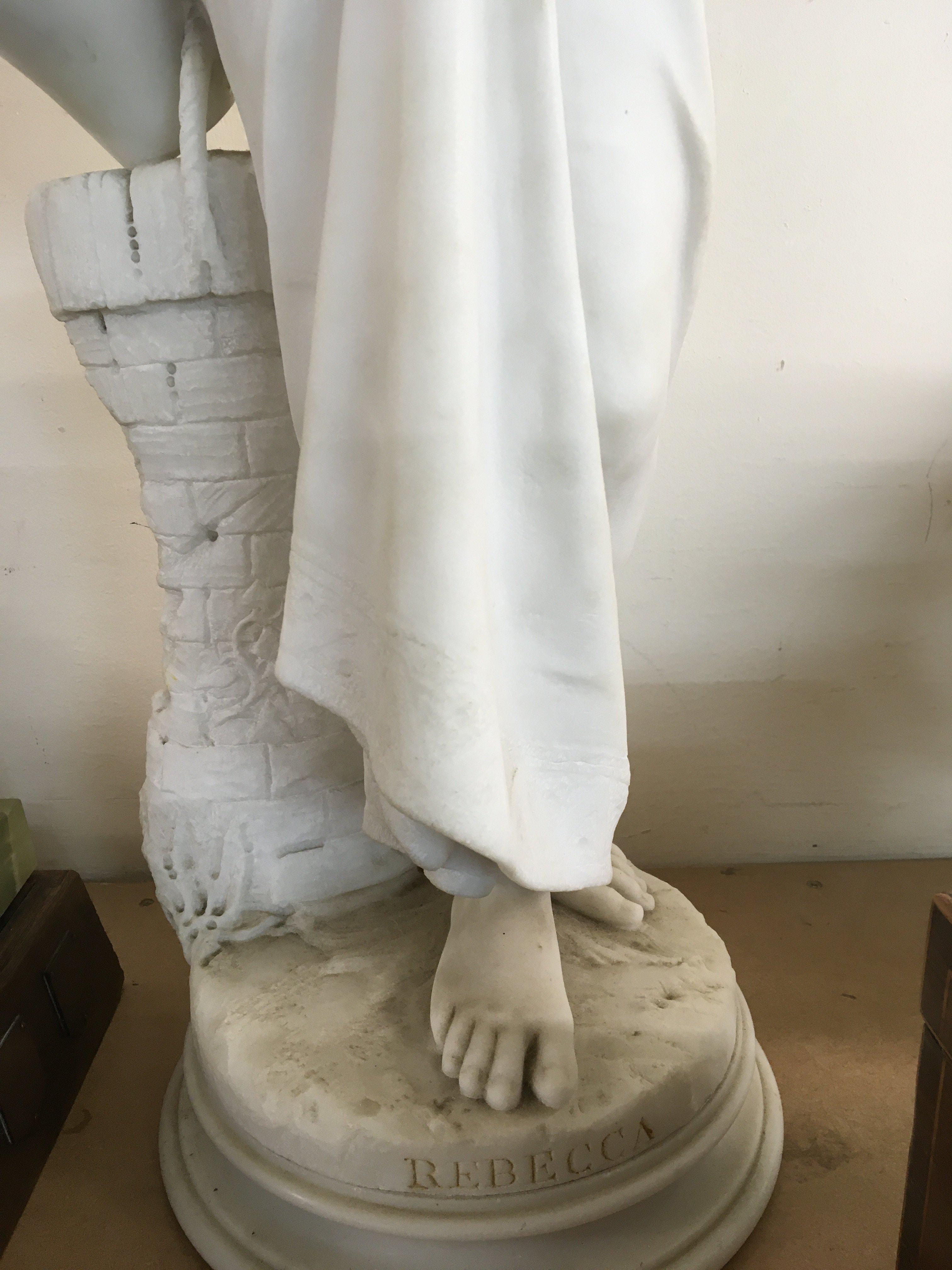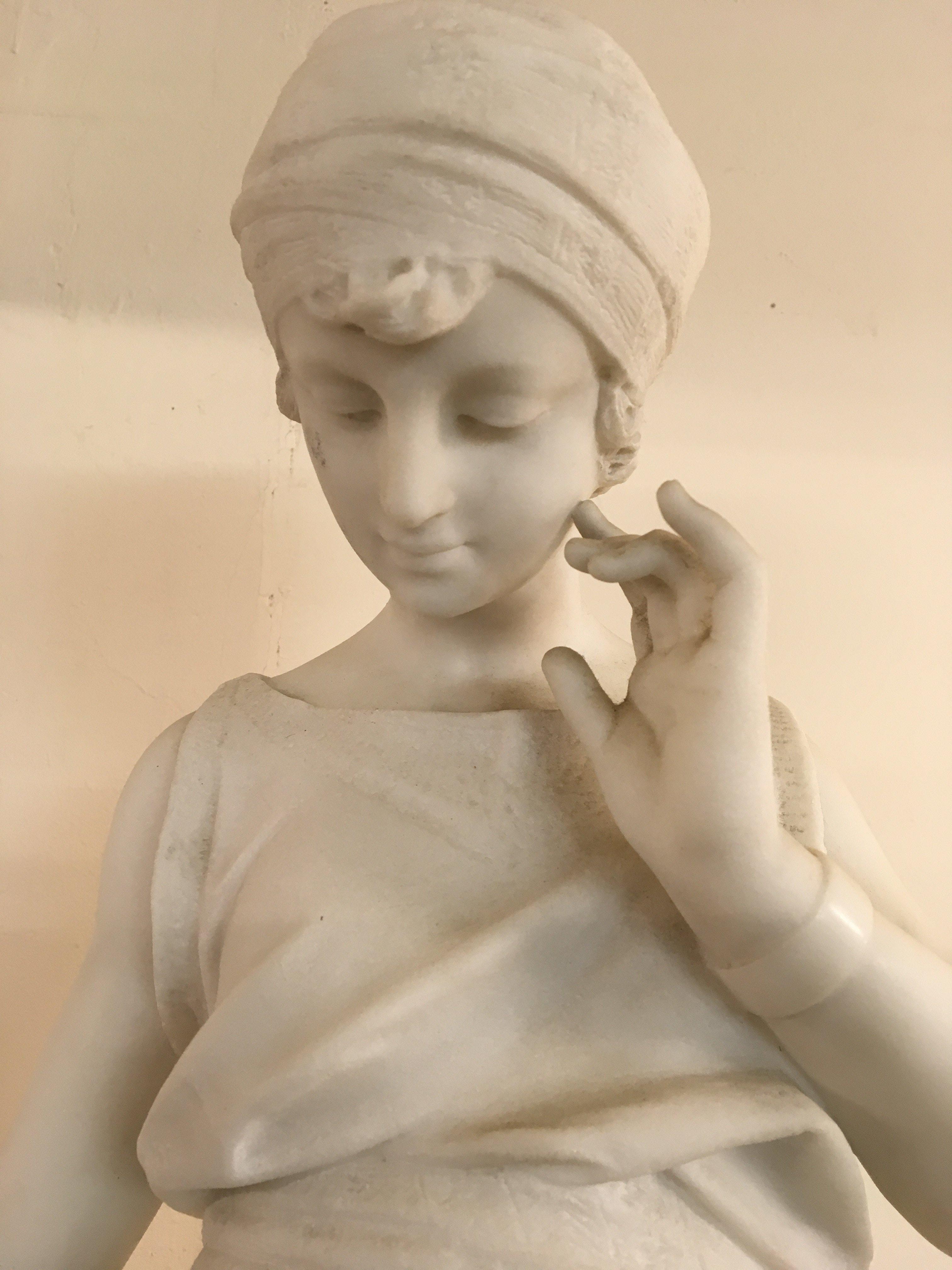 A marble bust in the form of a classical figure Rebecca 74 cm .