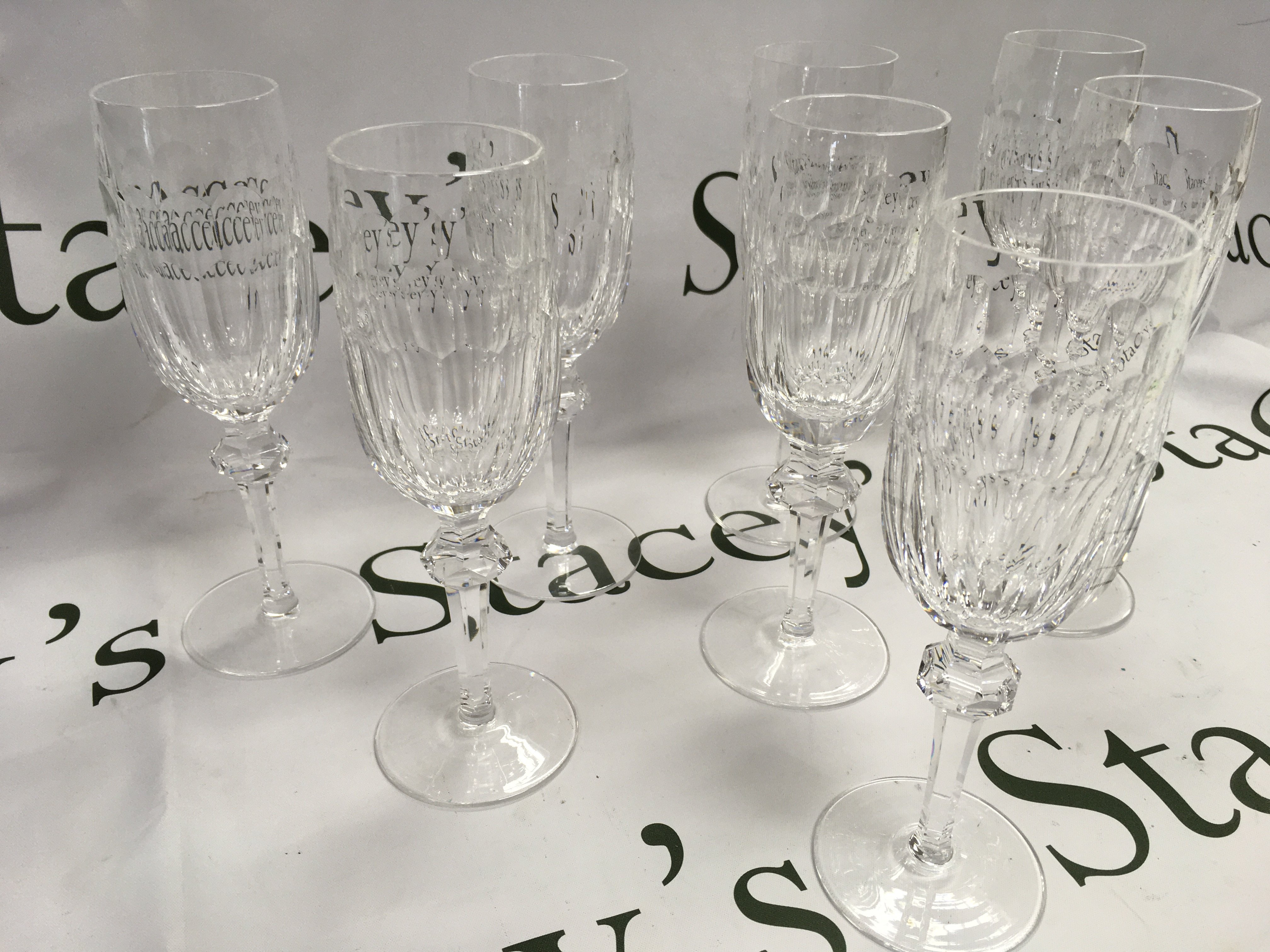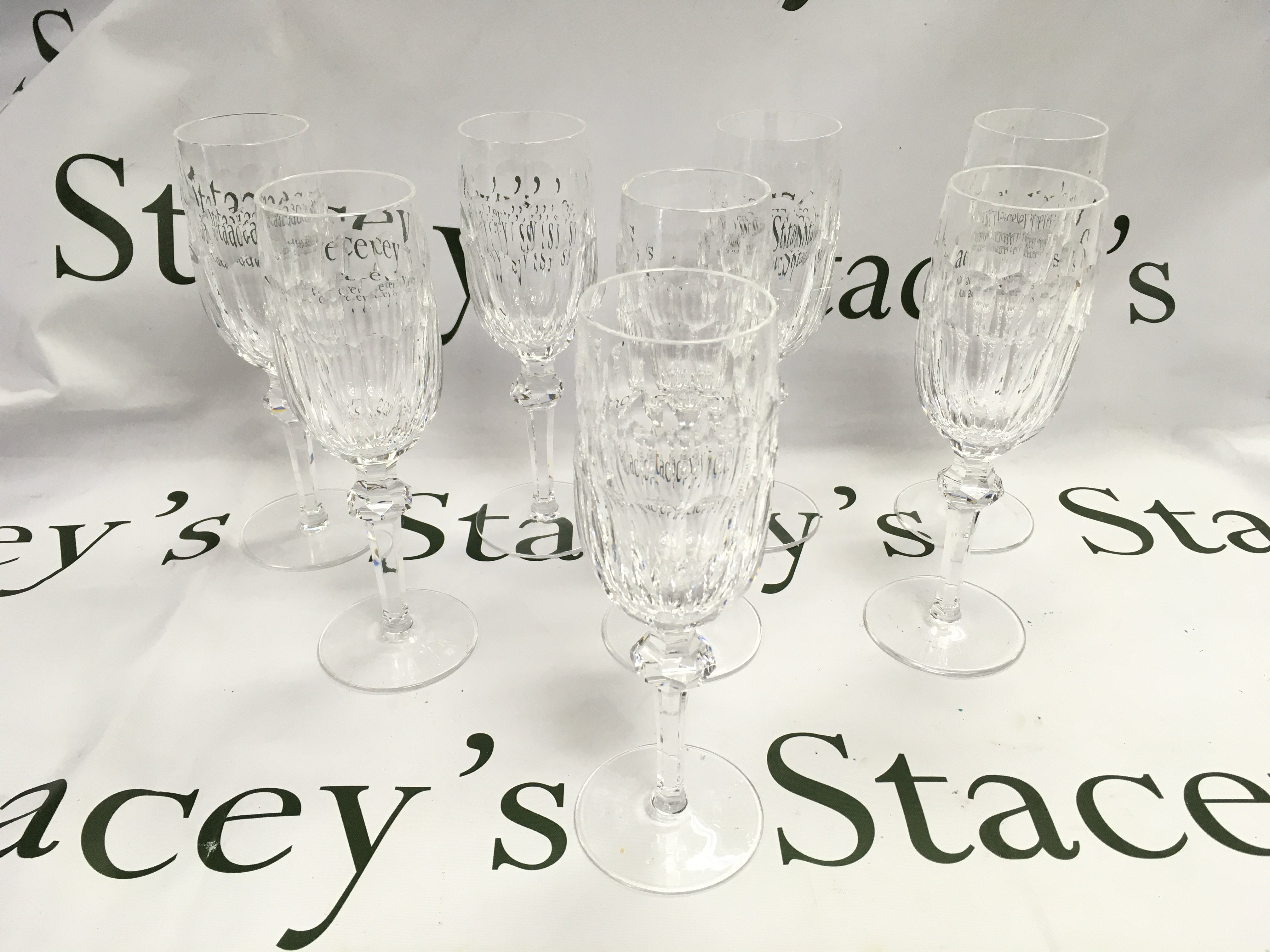 8 Waterford crystal champagne glasses. No obvious damage noted.