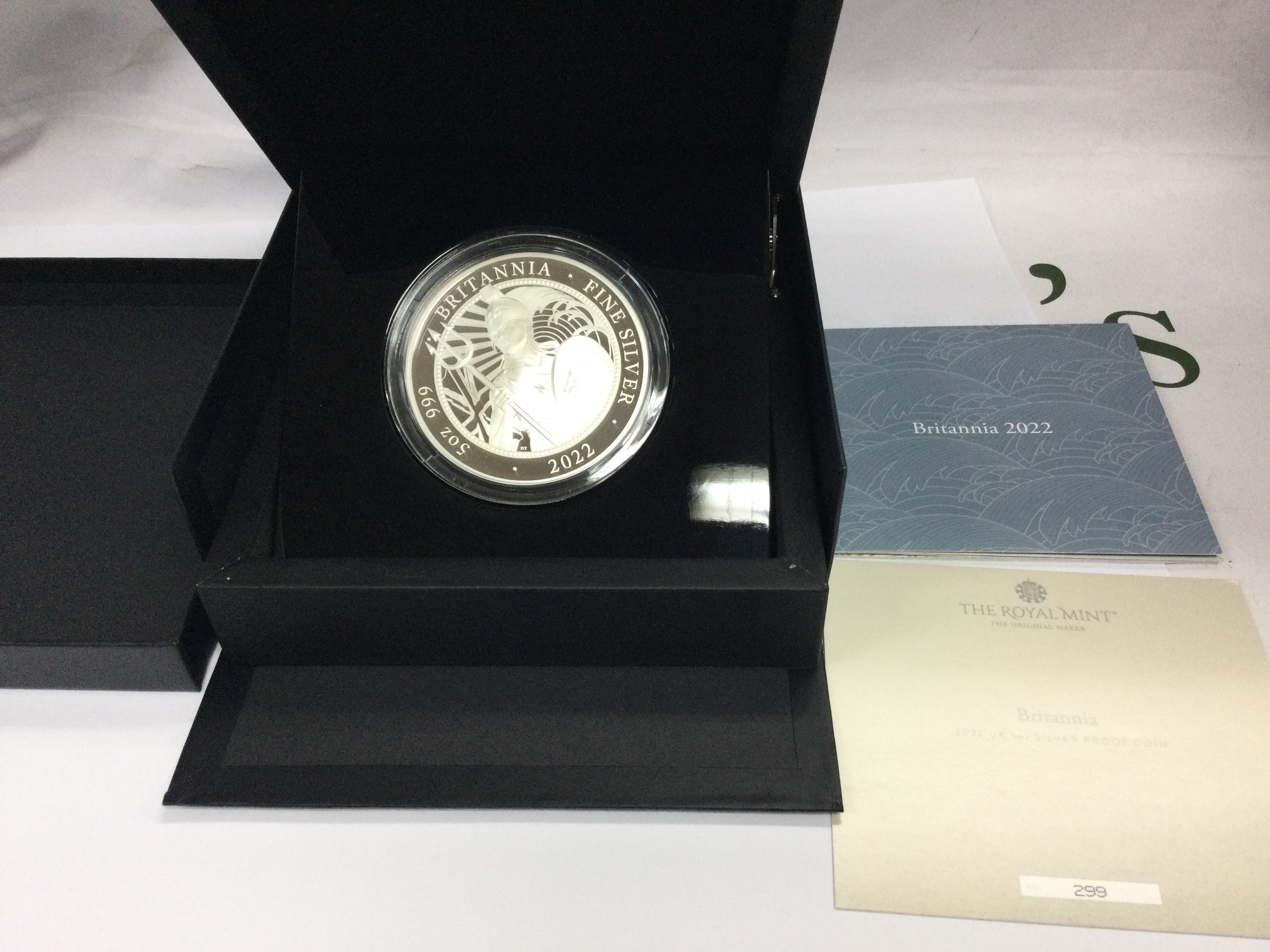 A 2022 5oz silver proof Britannia.Postage B