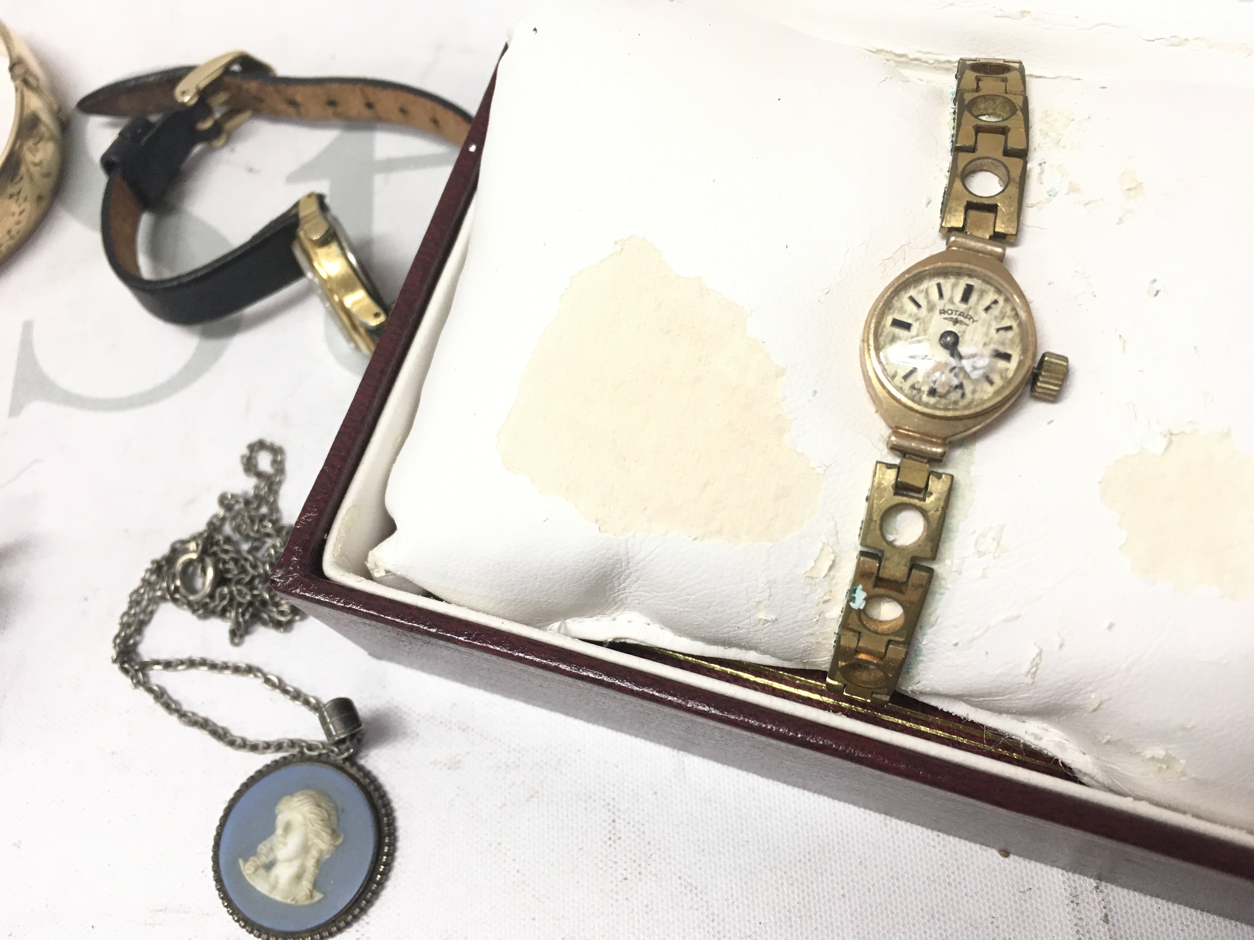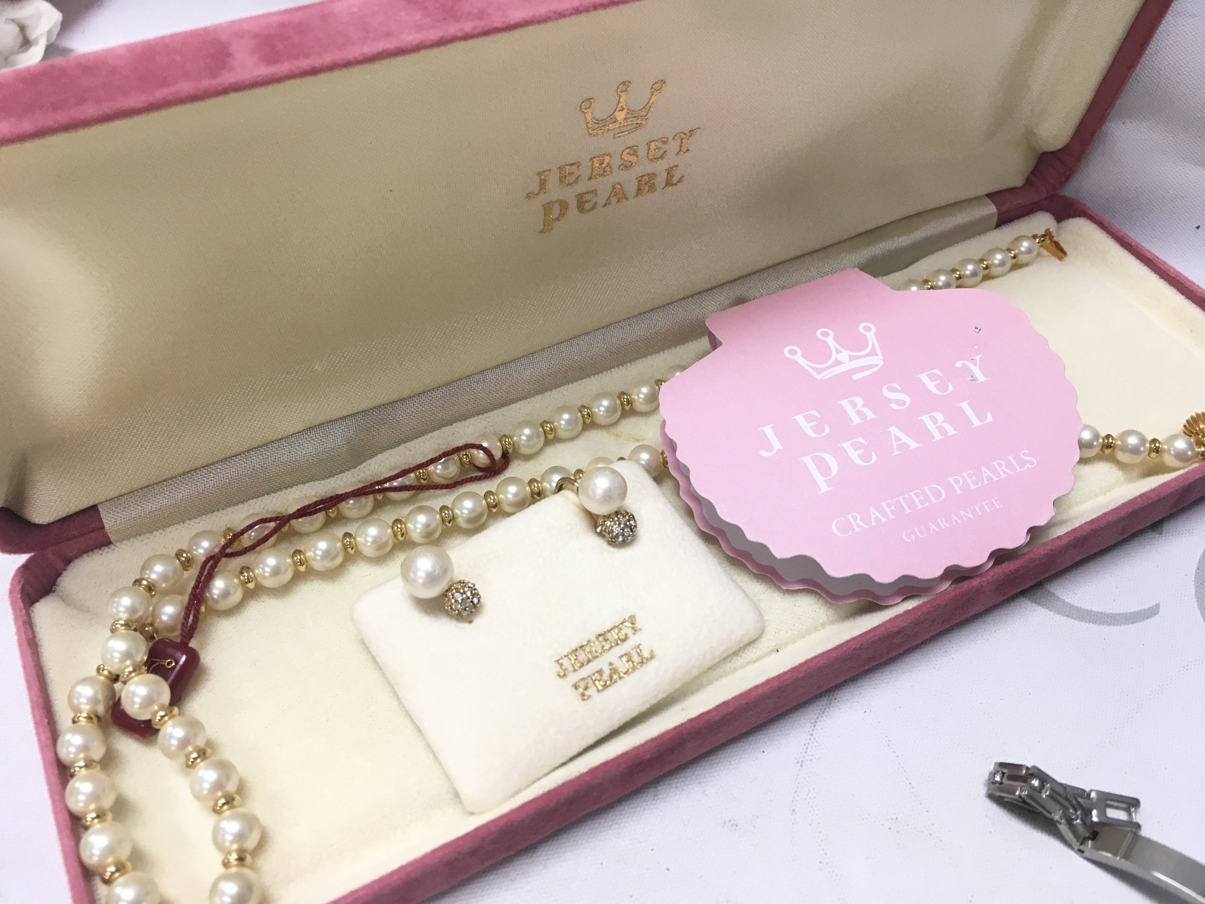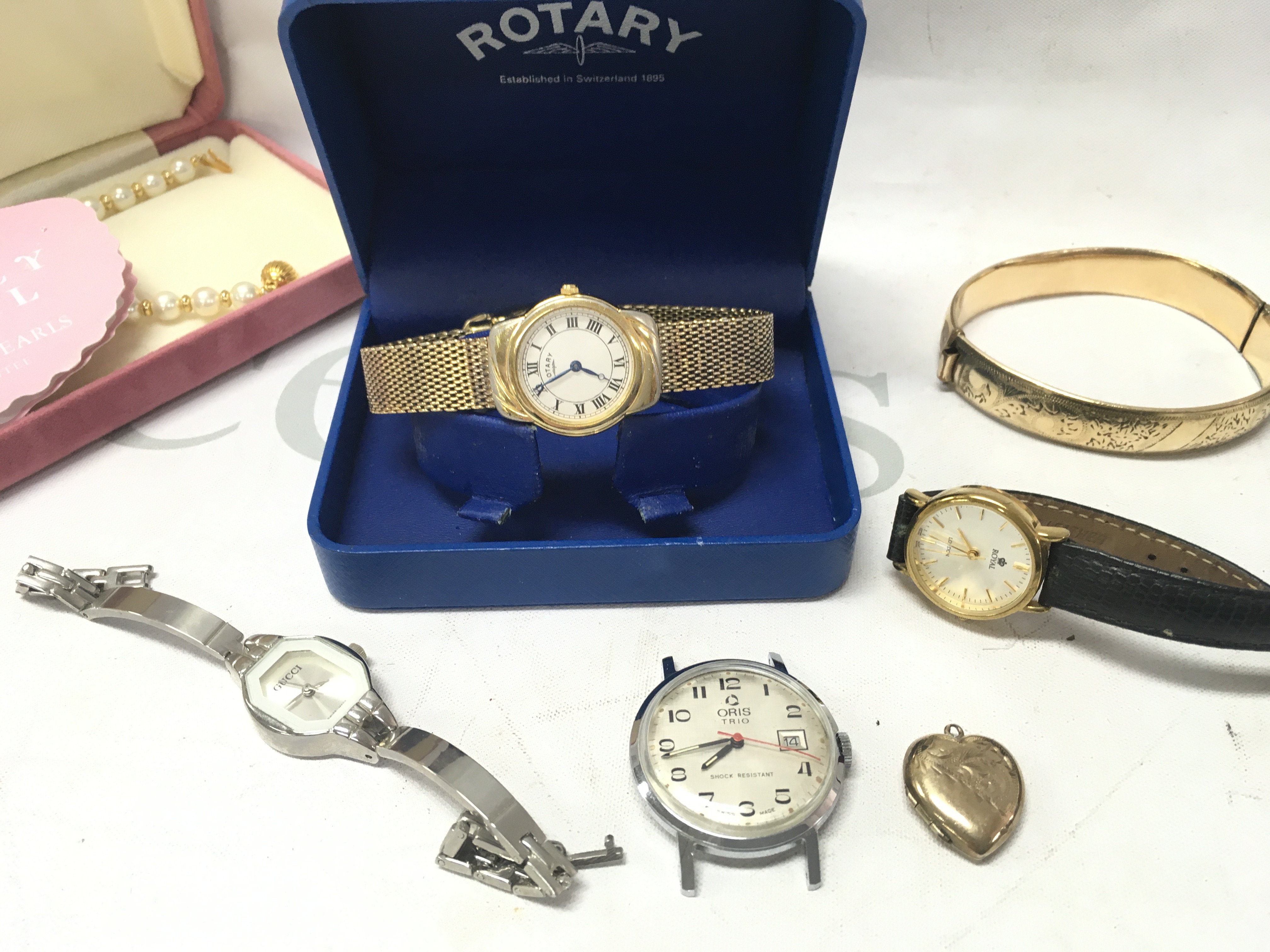 Mixed collection of watches including Rotary , boxed Jersey pearl necklace and earrings etc. postage catB
