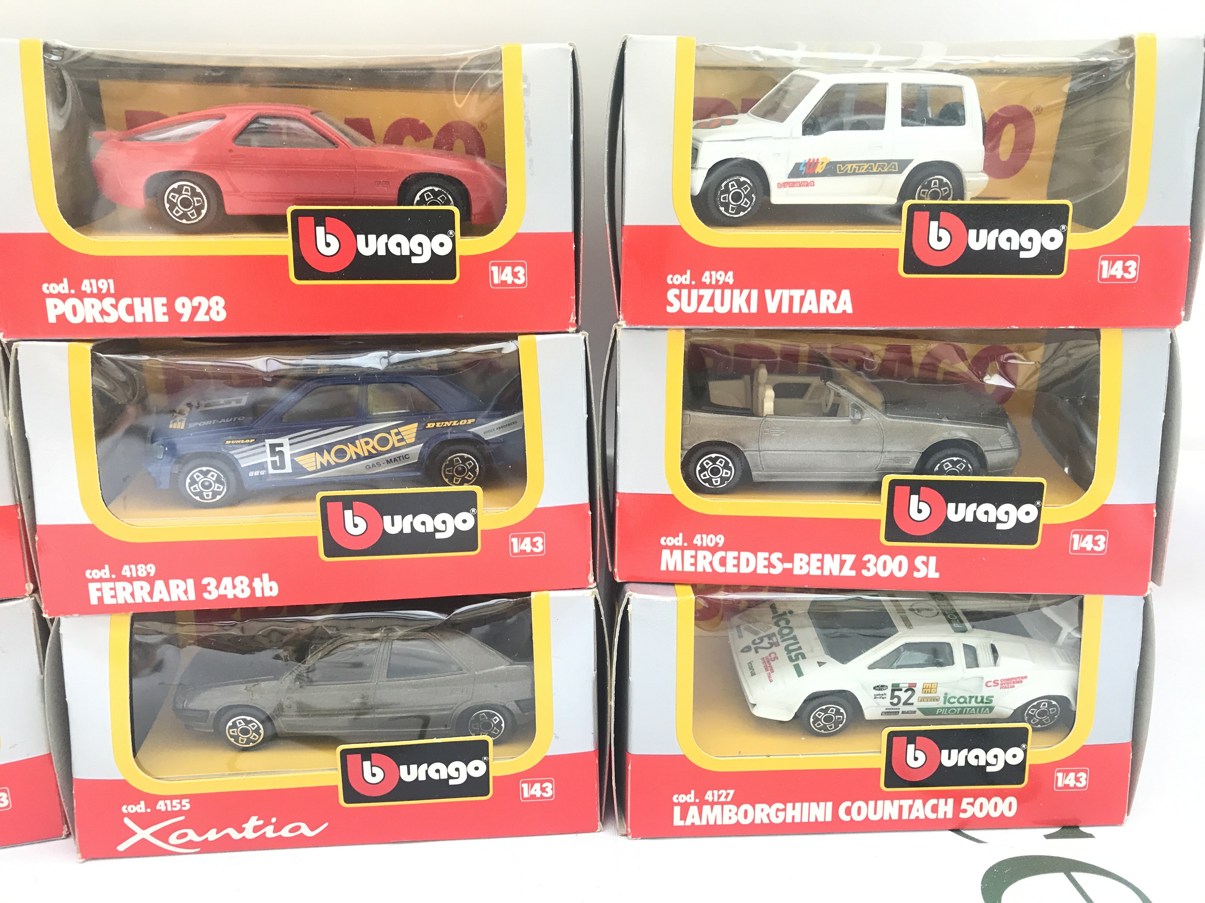 A Collection Of 9 Burago 1/43 Scale Diecast Cars.
