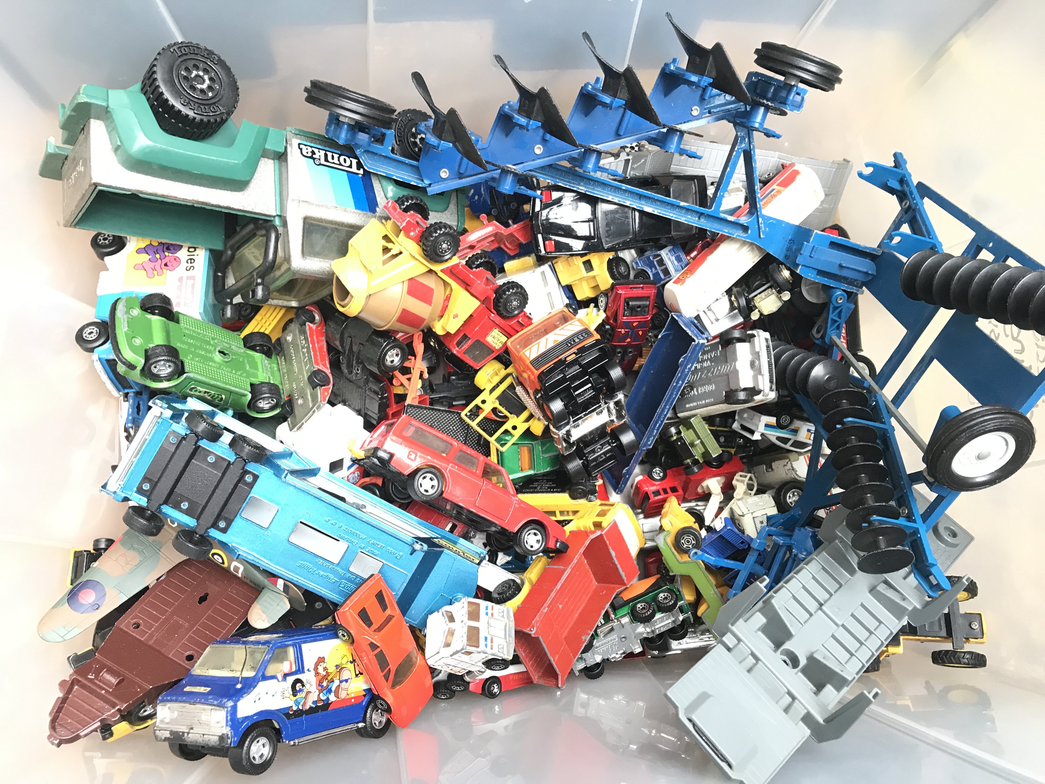 A Box Containing A Large Collection Of Playworn Diecast. No Reserve.