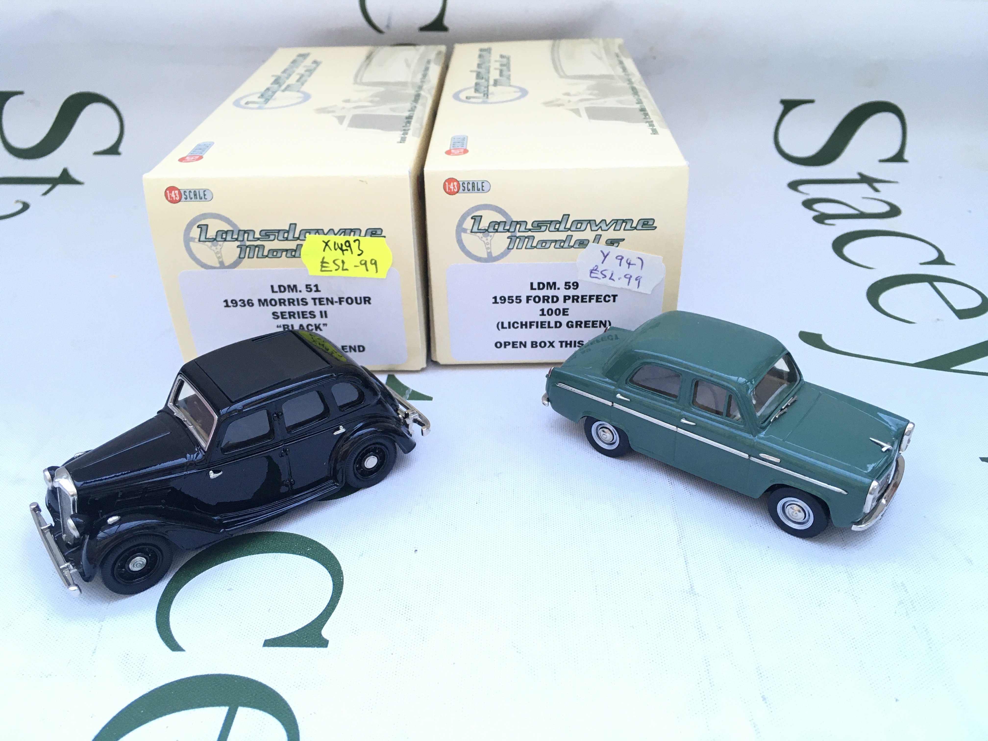 2 X Boxed Lansdowne Models 1/43 Scale. A 1936 Morris Ten-Four Series II #LDM.51 And A 1955 Ford Prefect 100E #LDM.59.