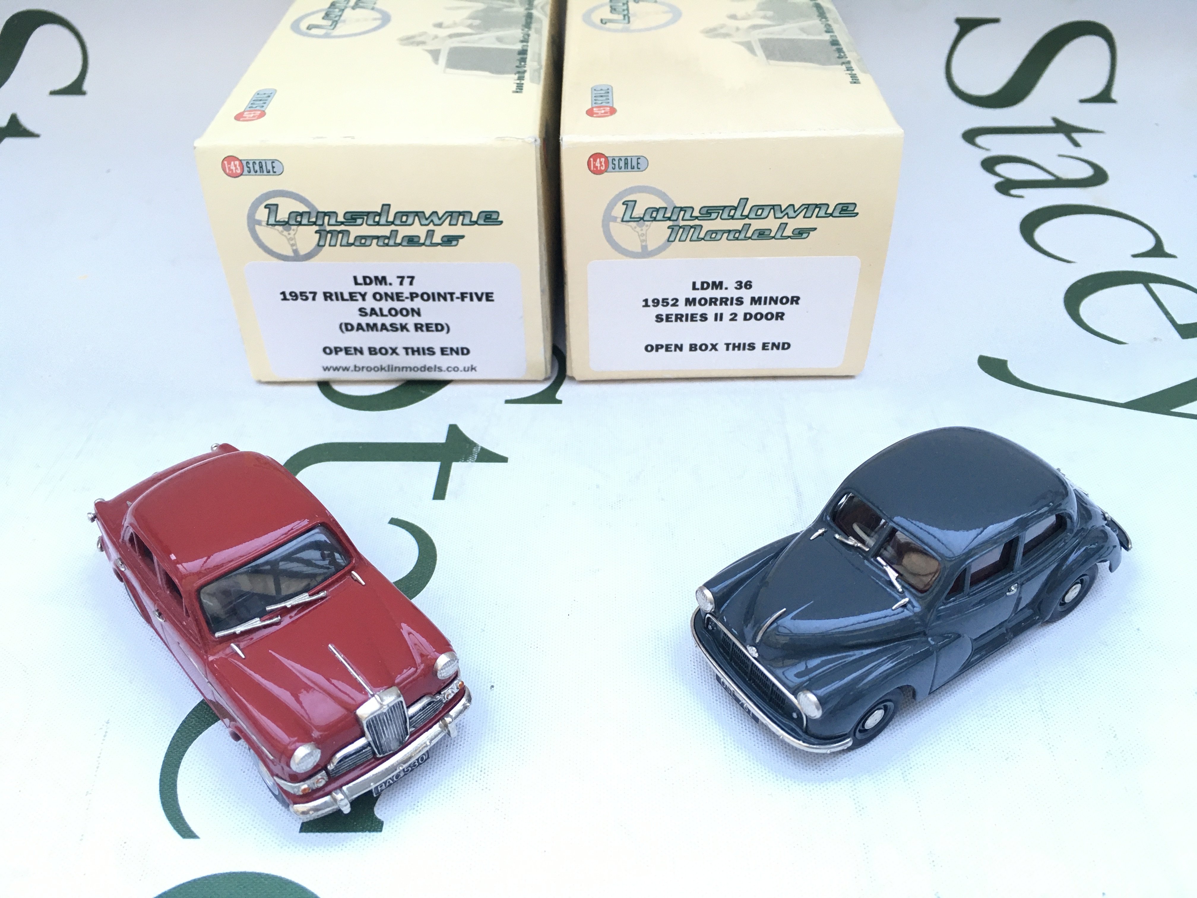 2 X Boxed Lansdowne Models 1/43 Scale. A 1957 Riley One-Point-Five Saloon #LDM.77 And A 1952 Morris Minor Series II 2 Door #LDM.36.