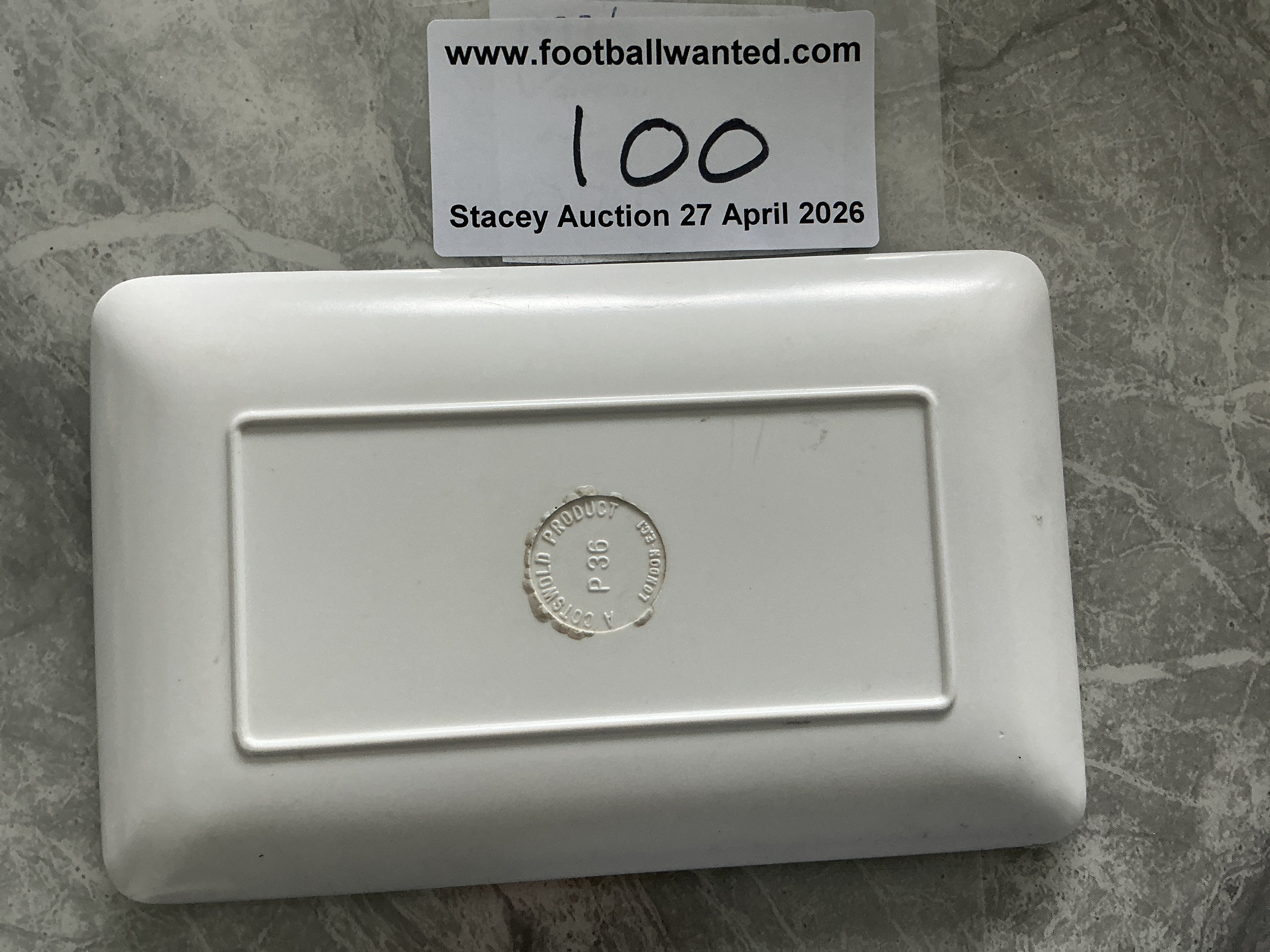 1966 World Cup Football Soap Dish: Just over 5 x 3 inches with a match scene from Wembley with World Cup Willie to one corner and the words England World Cup 1966 to the other. Plastic dish is in excellent condition.