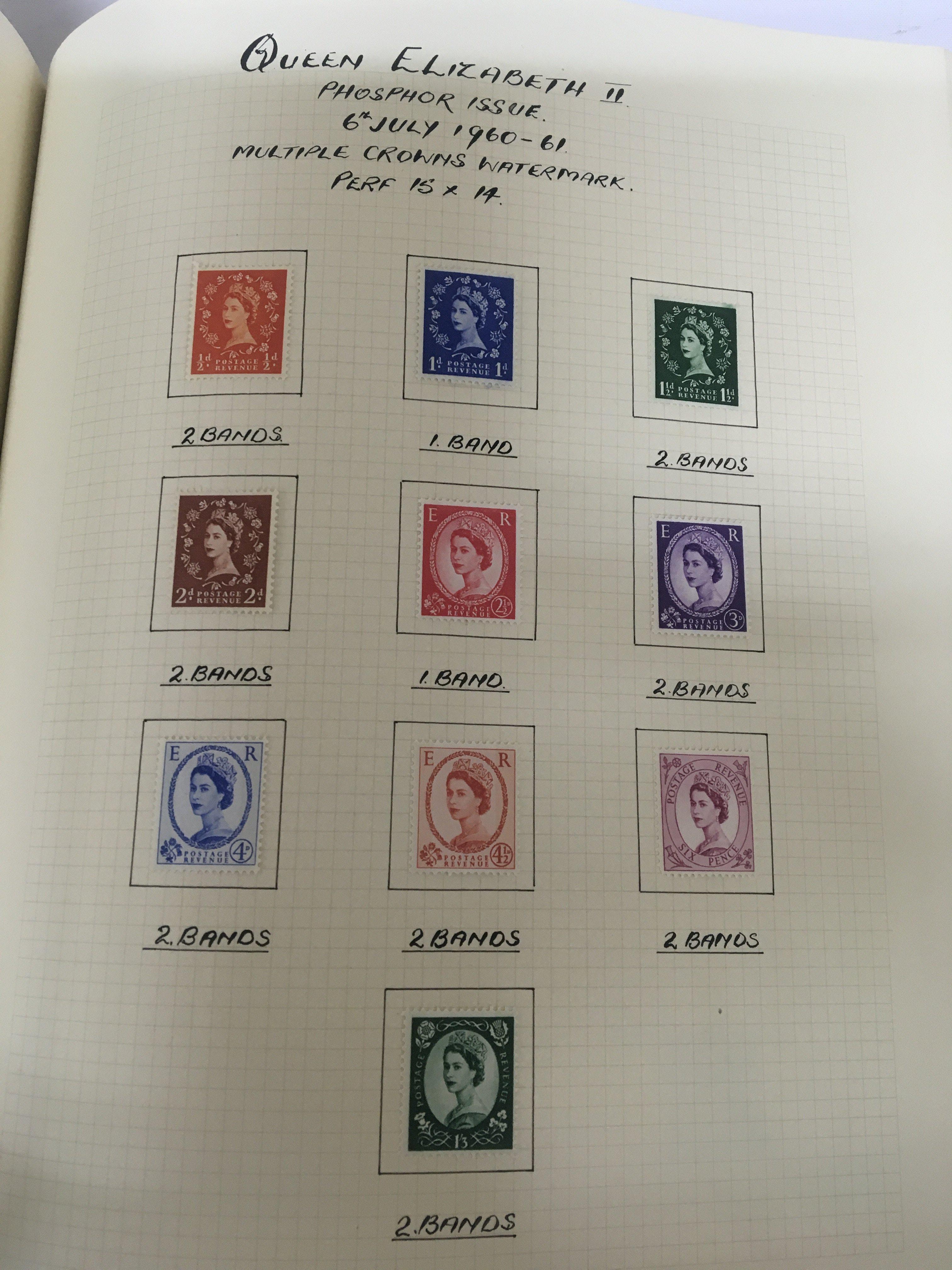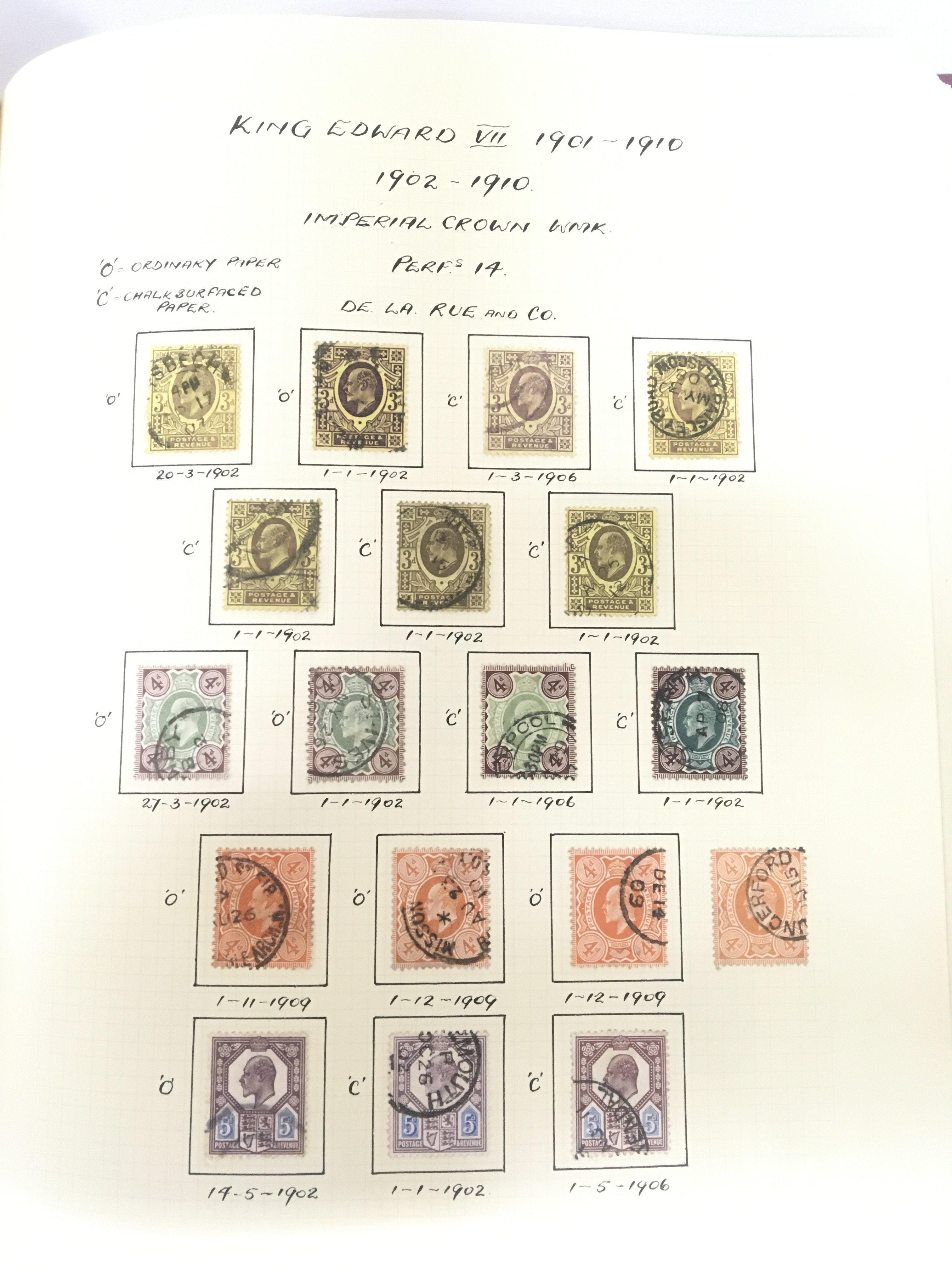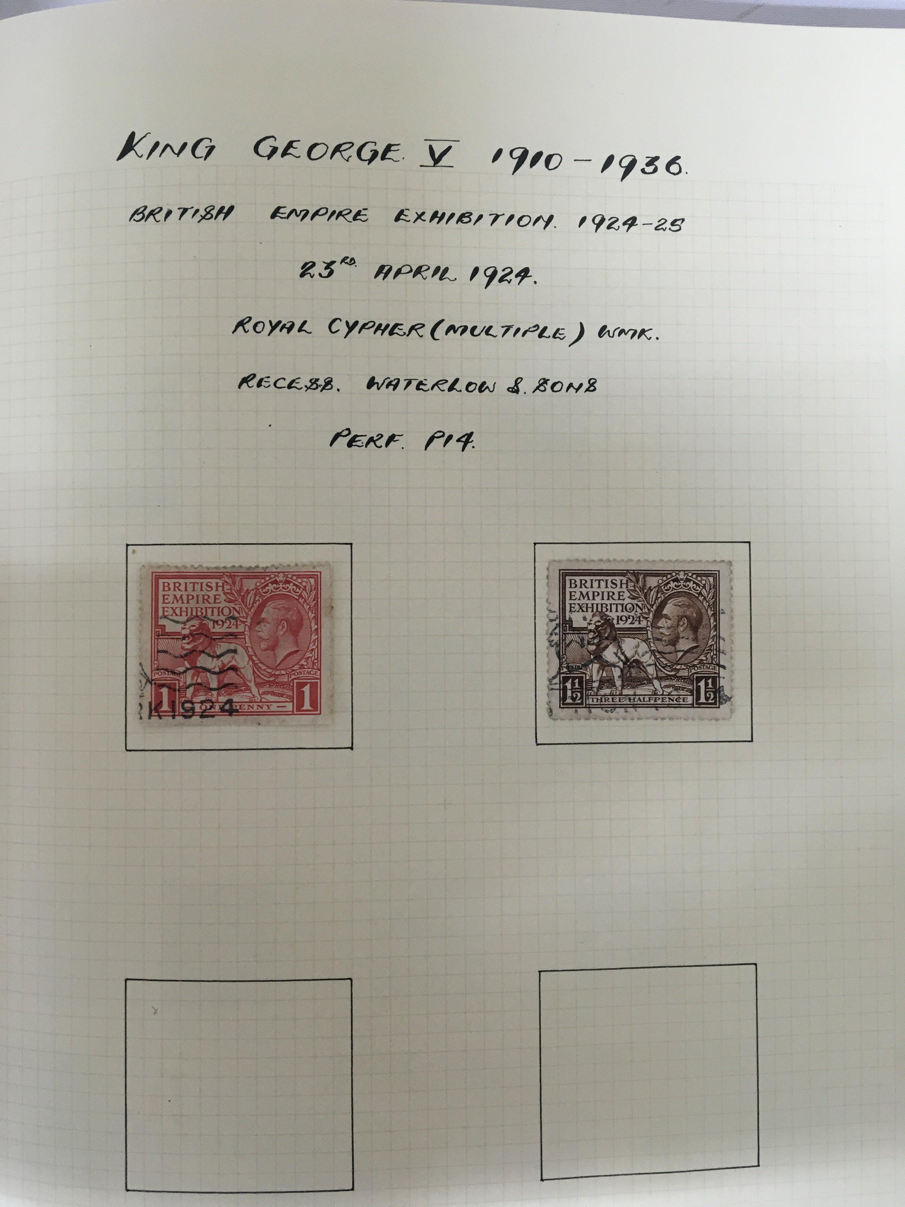 An extremely well presented album of British stamp history from 1840-1958. Starting with a Penny black each stamp detailed hand written description.