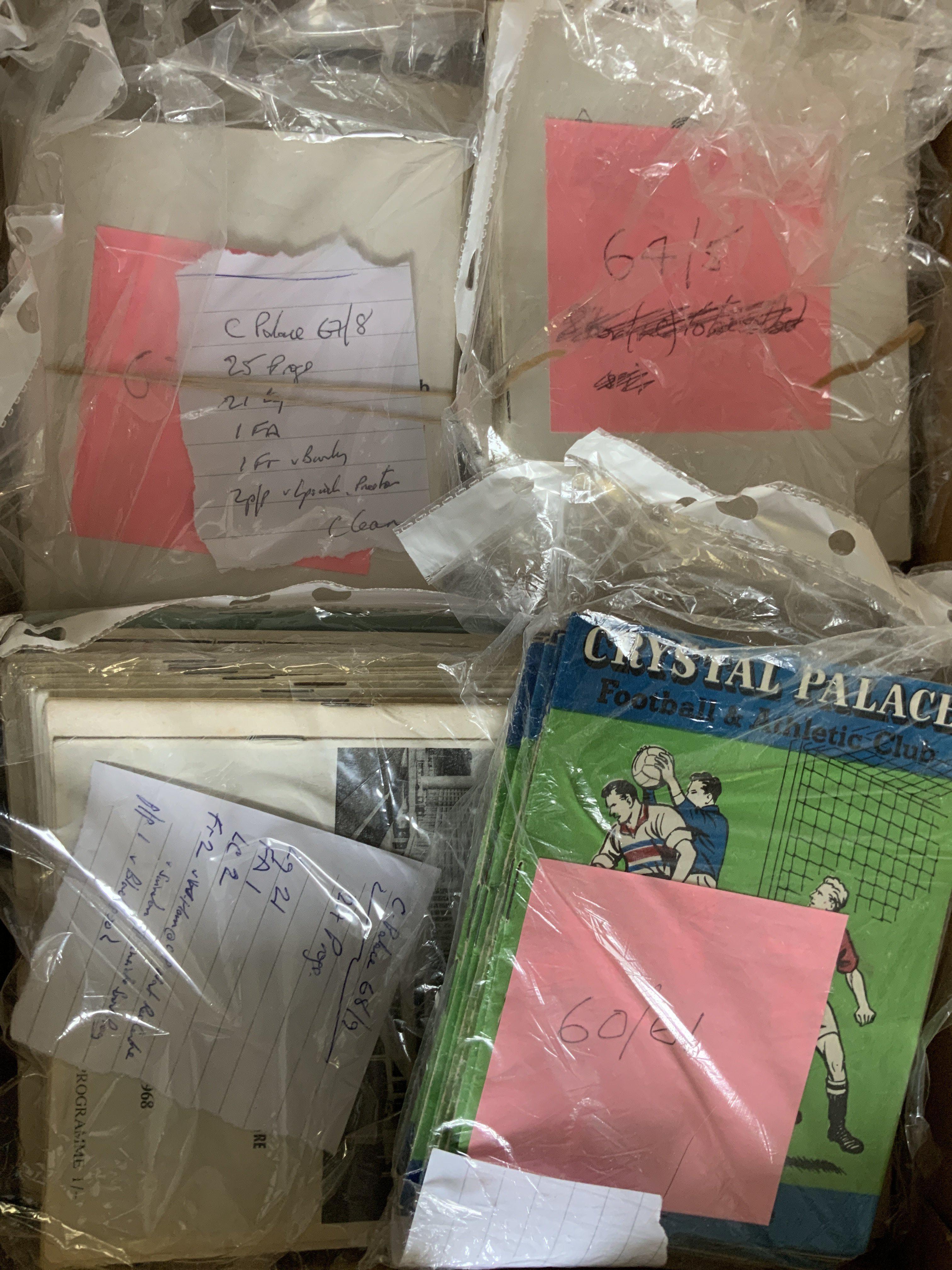 Crystal Palace Home Football Programmes: Includes possible complete sets from 60/61 64/65 65/66 66/67 67/68 68/69. 58/59 x 5, 59/60 x 13. Over 220 from the 60s. Very good with instructions to sell. (est 250+)