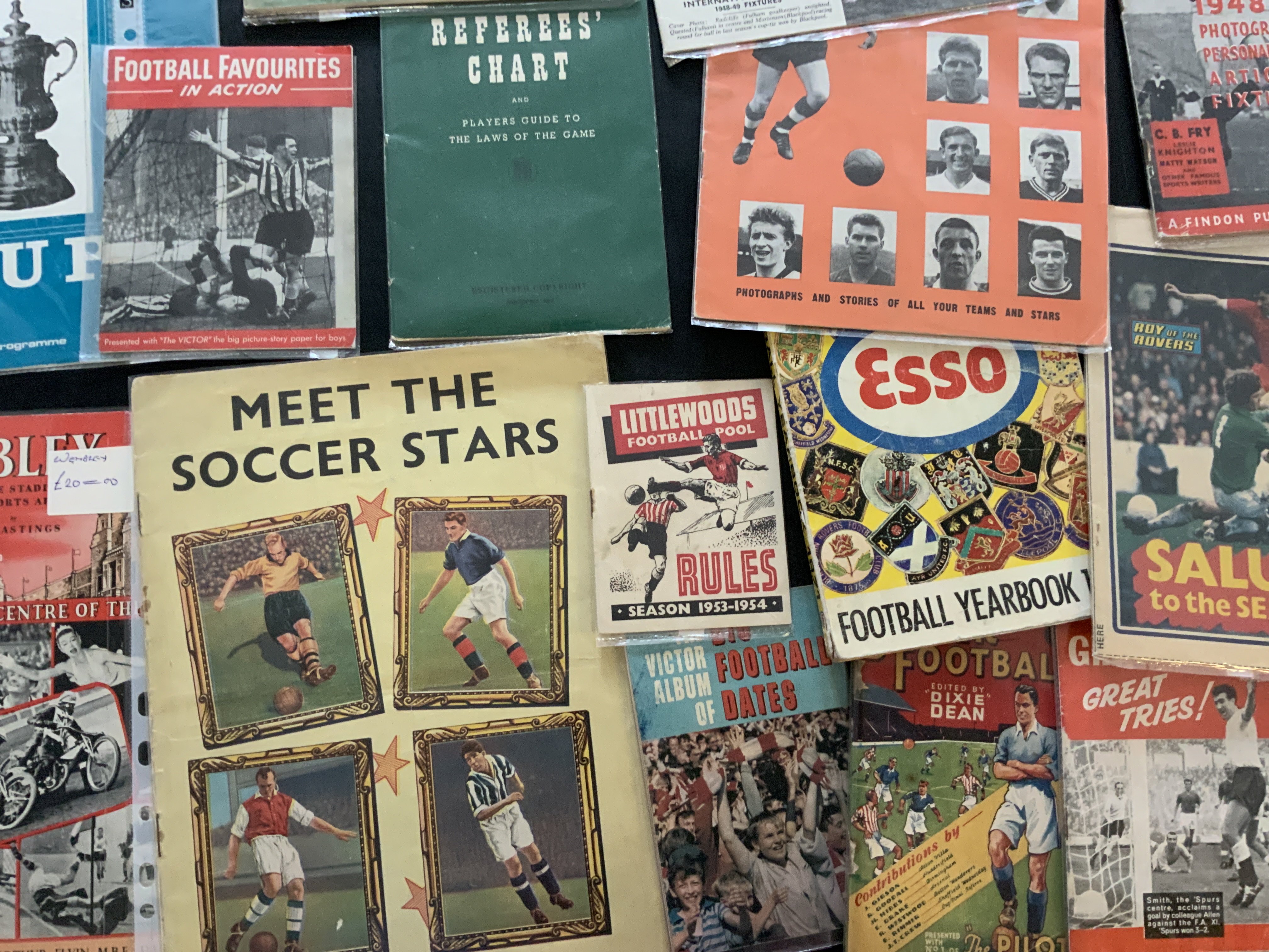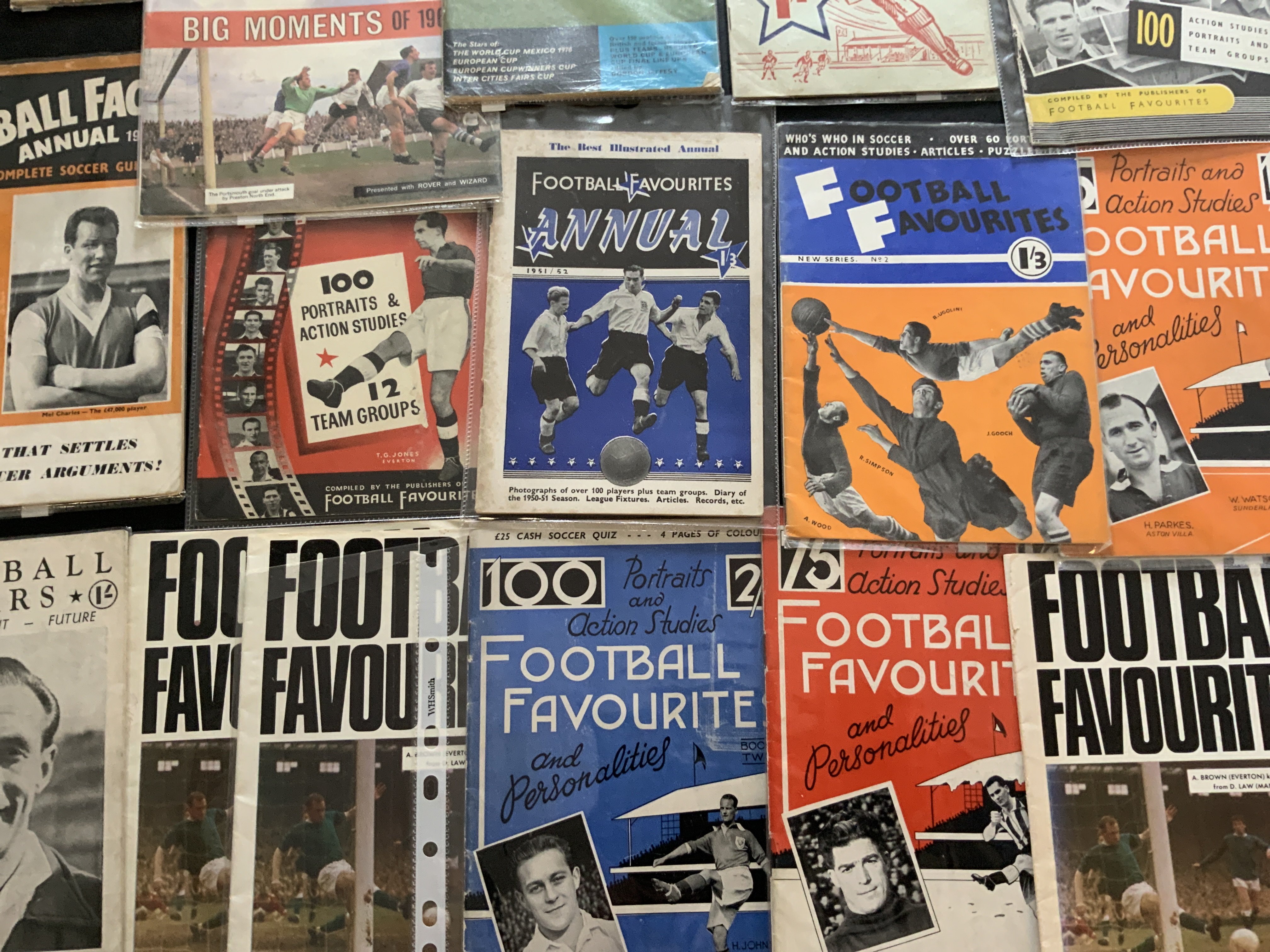 Football Booklets + Publications: Includes Football Favourites, Football Stars, Football Facts Annual, Soccer Snapshots, Soccer Spotlight 48/49, plus lots more mainly from the 40s 50s and 60s. Large quantity and a must view. Quantity.