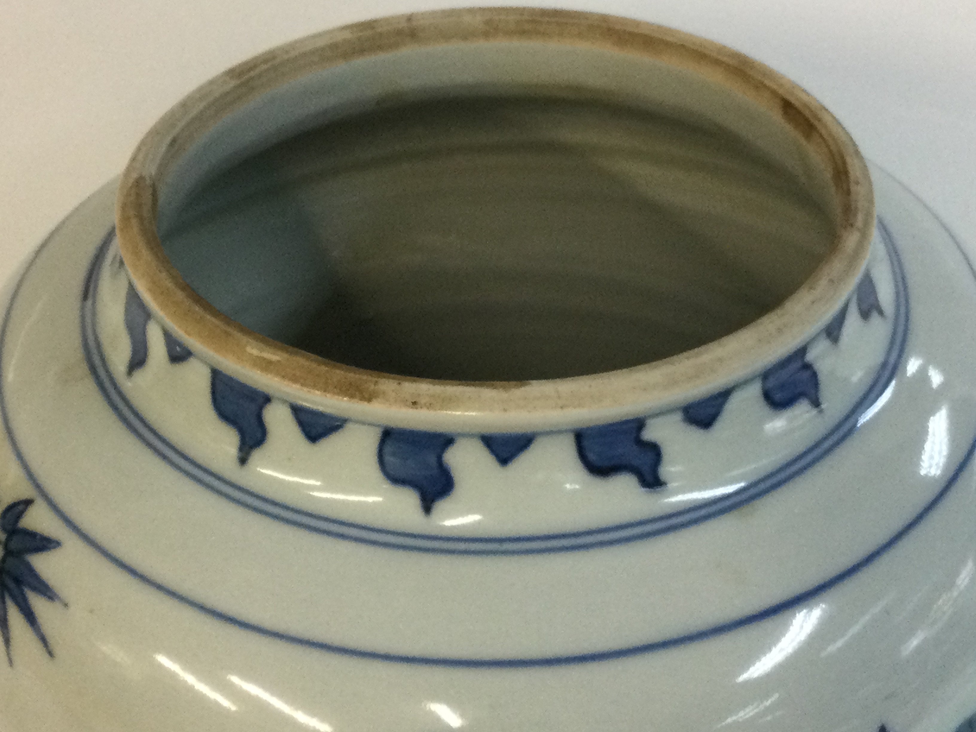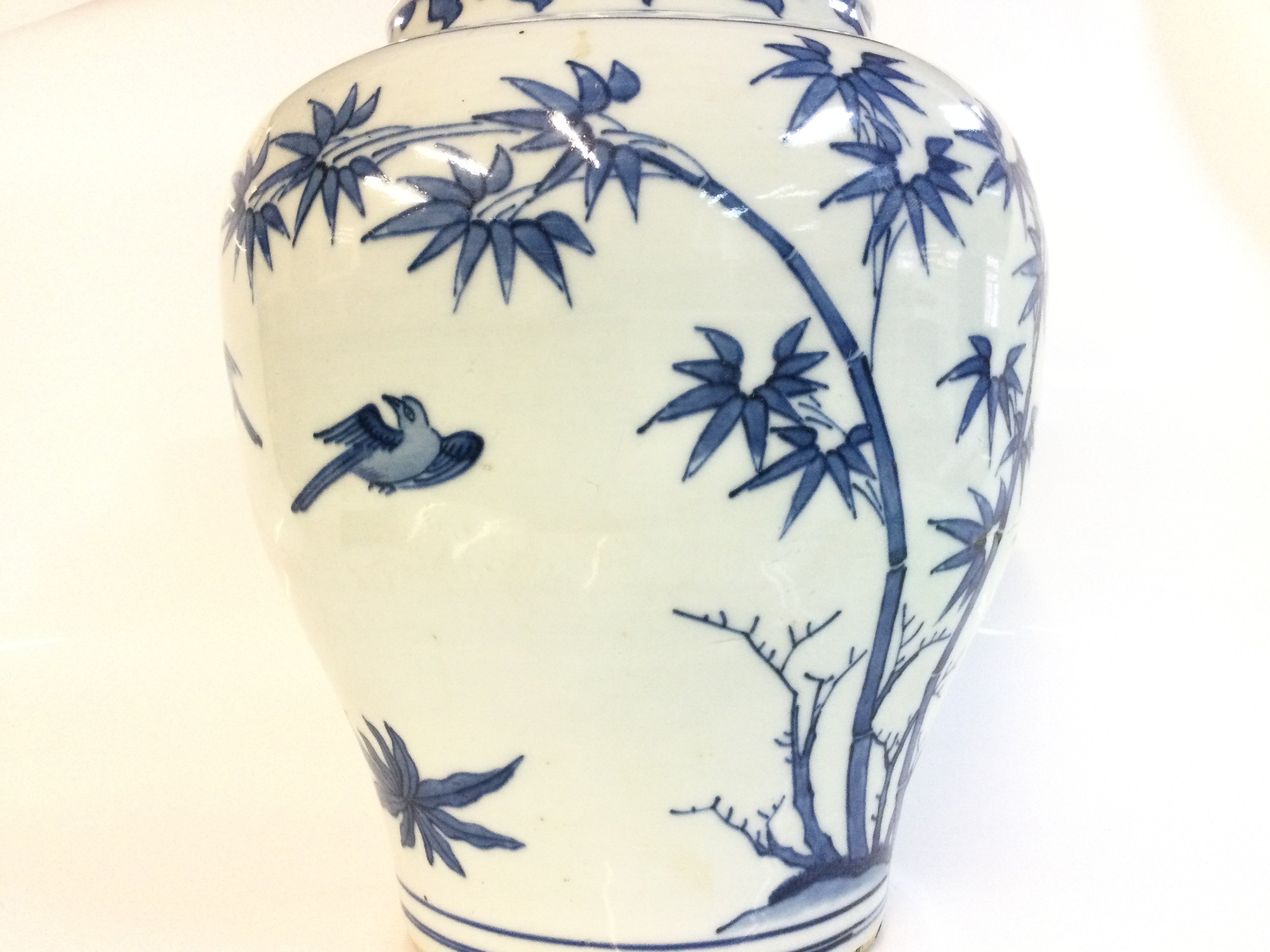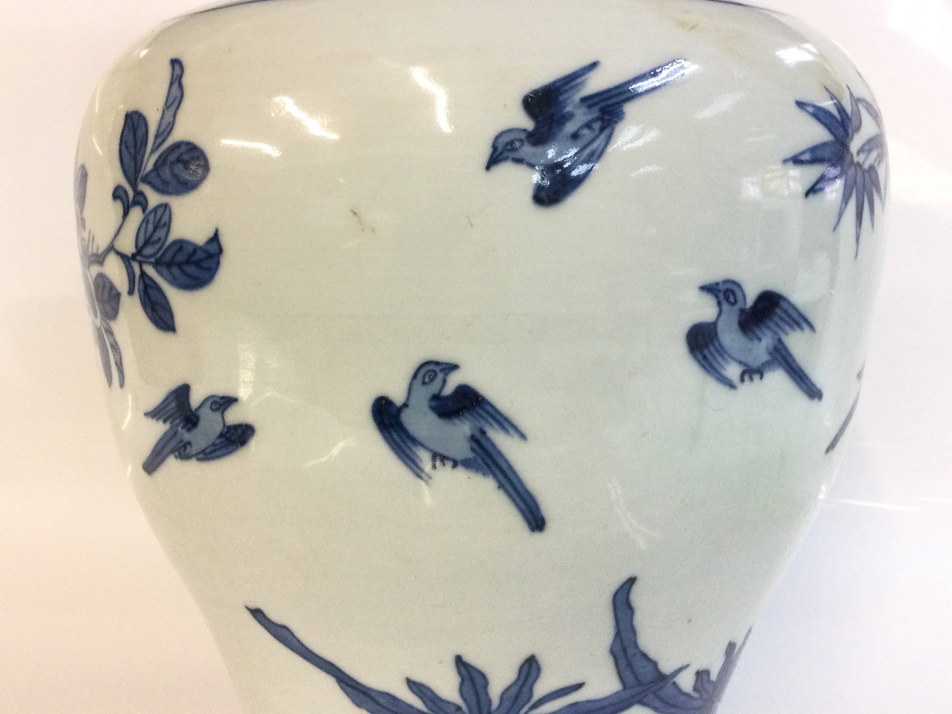 A Chinese blue and white vase with bird and floral decoration. 27cm tall approximately. This lot cannot be posted