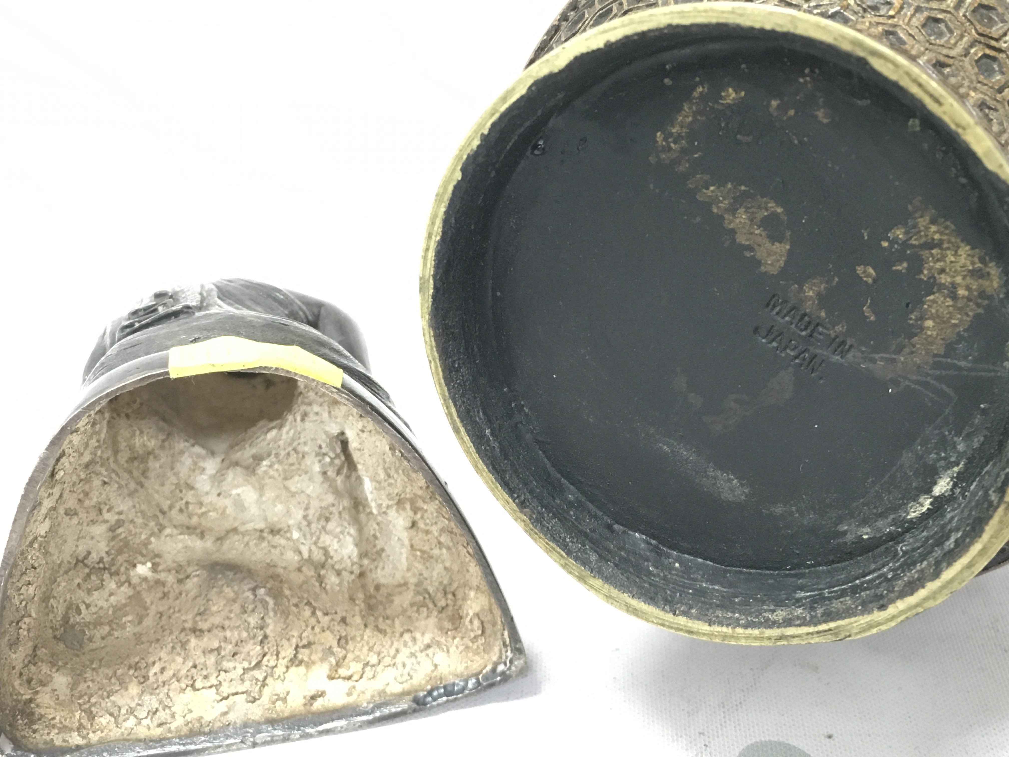 A Japanese bronze enamelled vase (15cm tall) and a seated Buddha figure (8cm tall) . Postage cat b