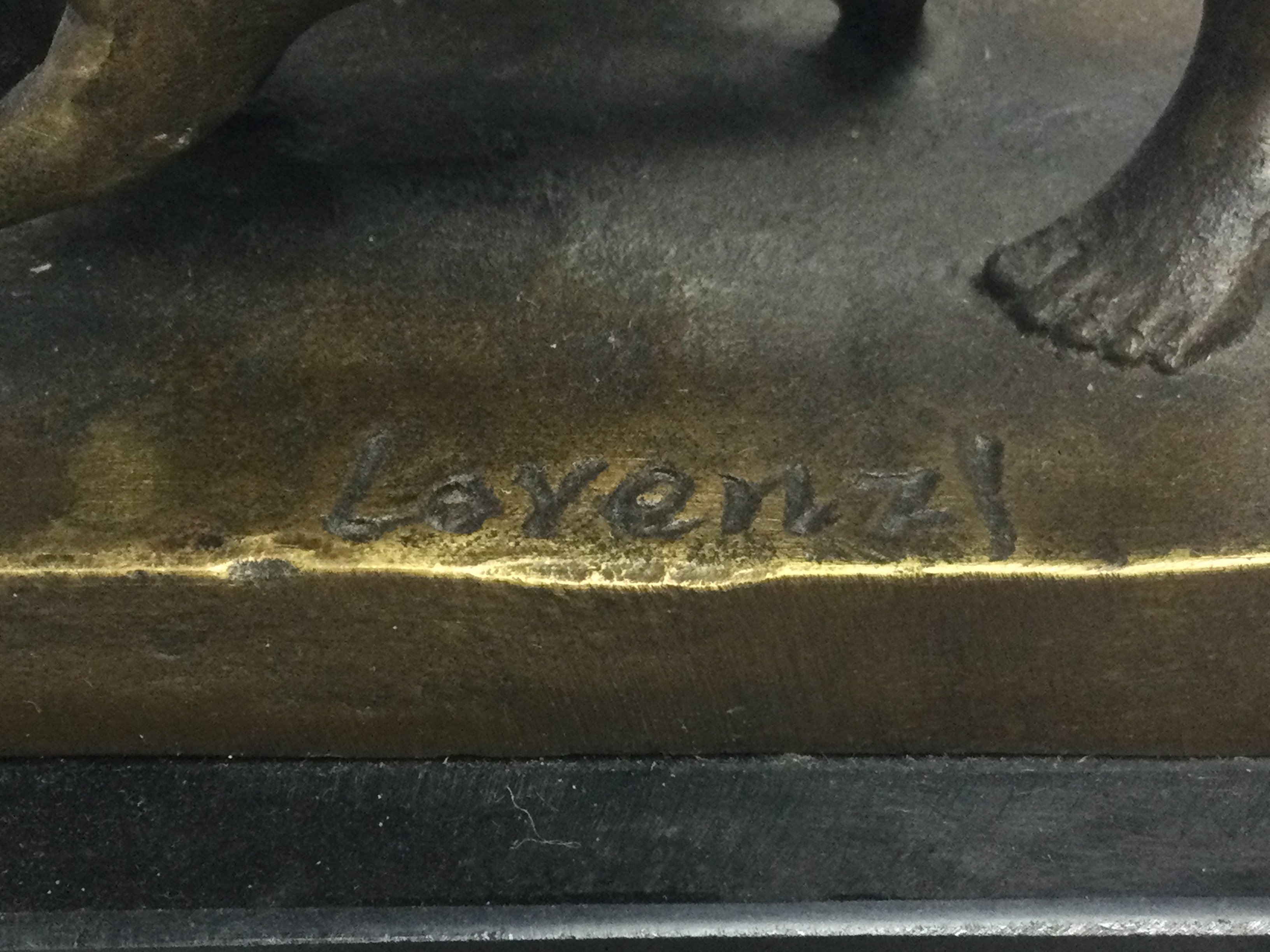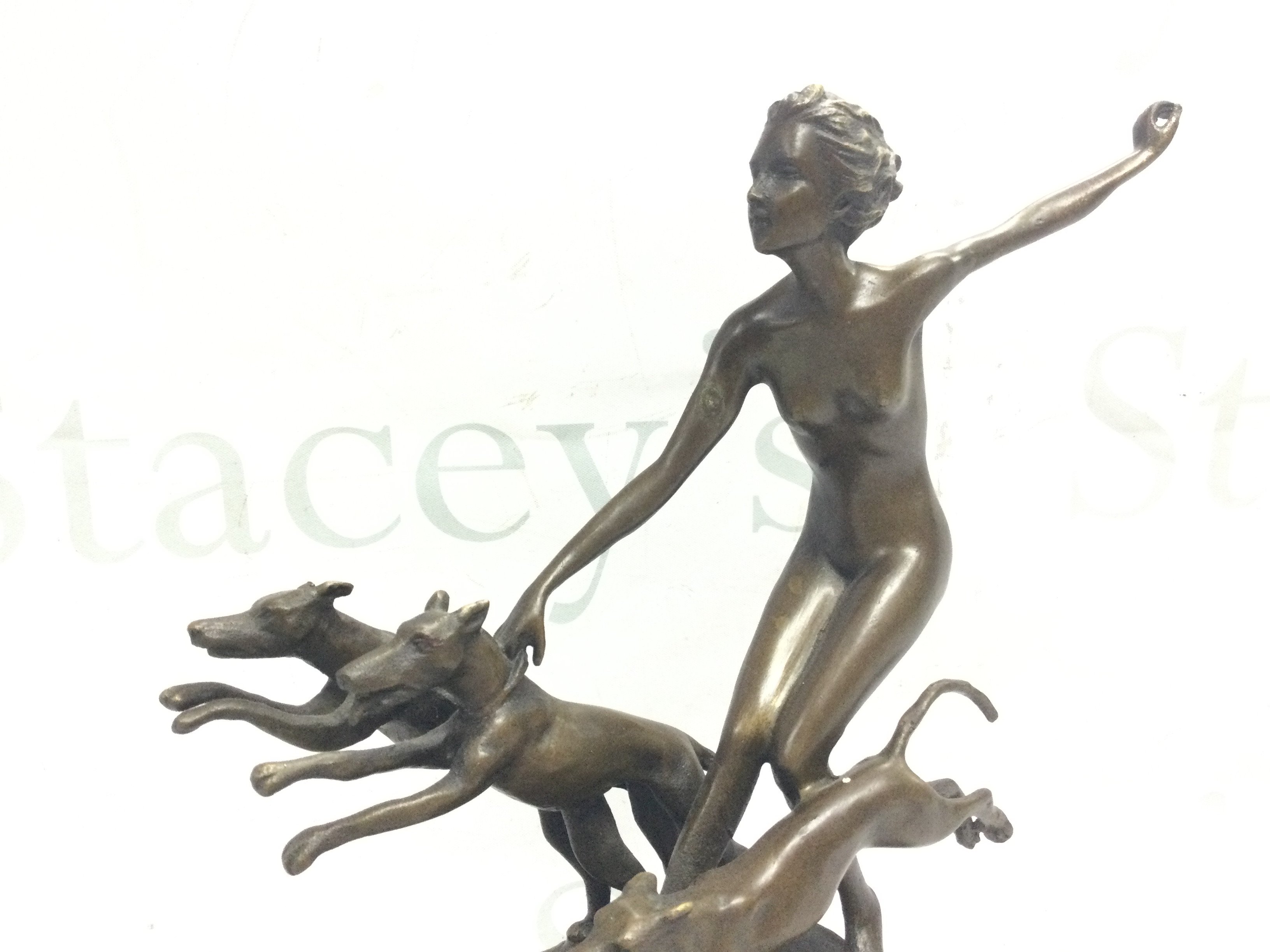 An Art Deco style Lorenzl Diane bronze figure , woman with three greyhounds. 24cm tall 18Cm wide. Postage category B