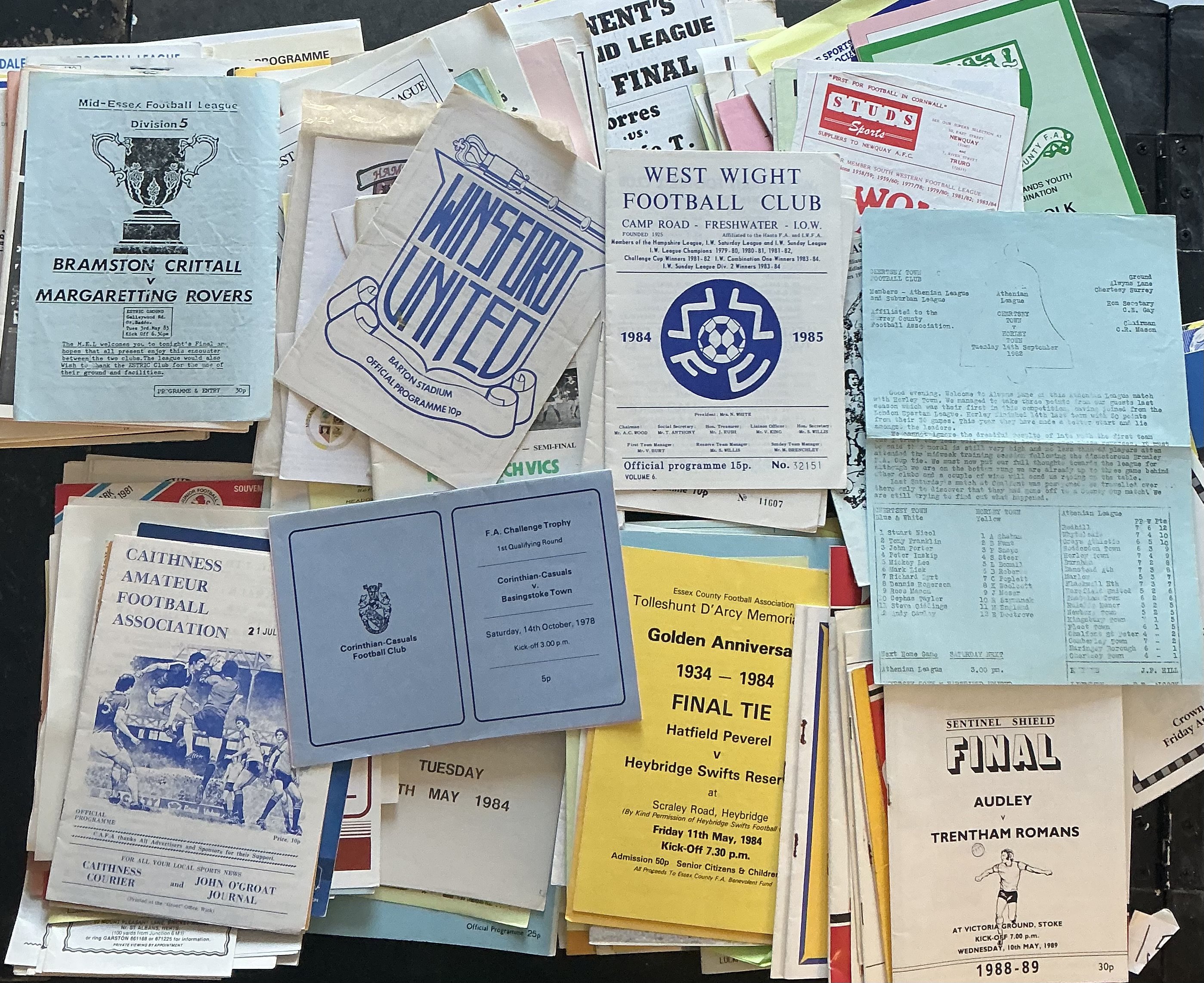 Non League Finals + Semi Final Football Programmes: 1970s onwards with some obscure competitions including Pyke Cup final, Huntingdon Senior Cup, Exmouth Cup Final and many more. (120)